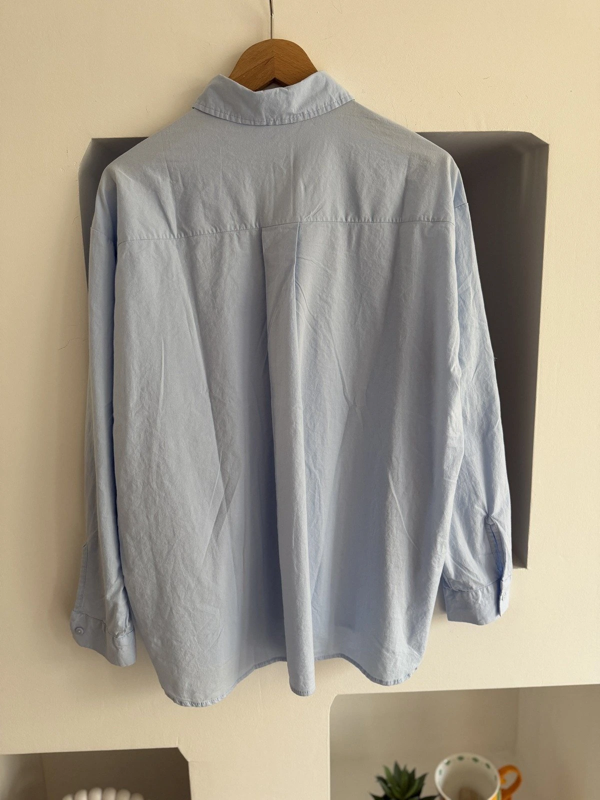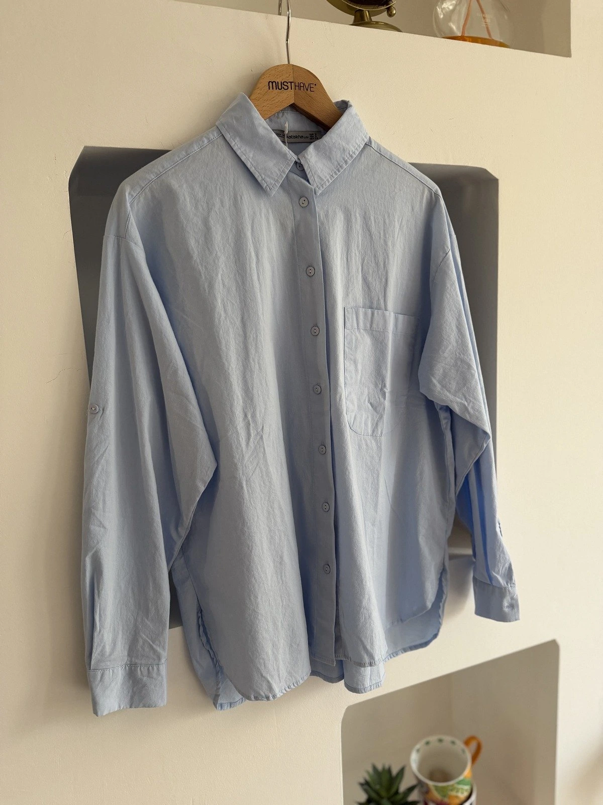 ETEĞİ OVAL TEK CEP SALAŞ PAMUK BASİC GÖMLEK – MAVİ