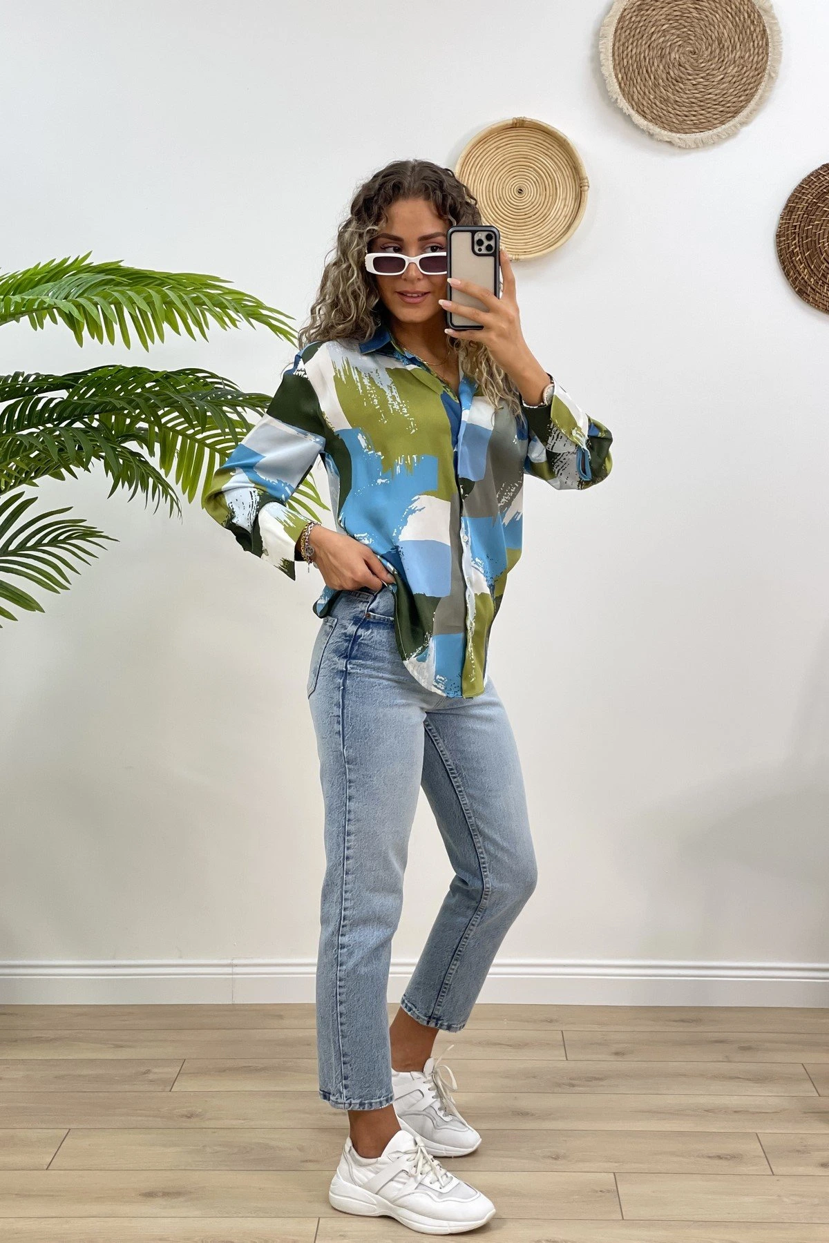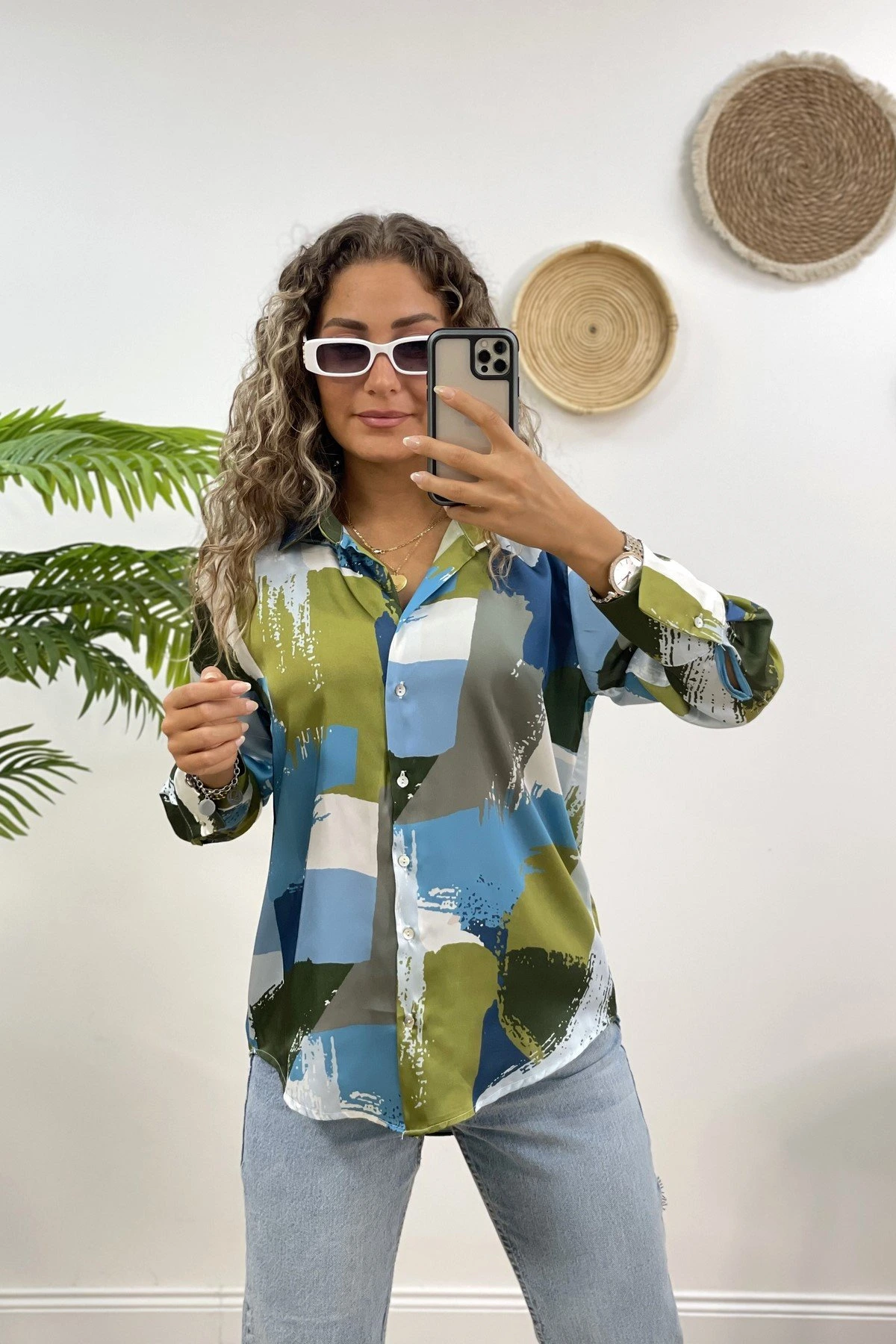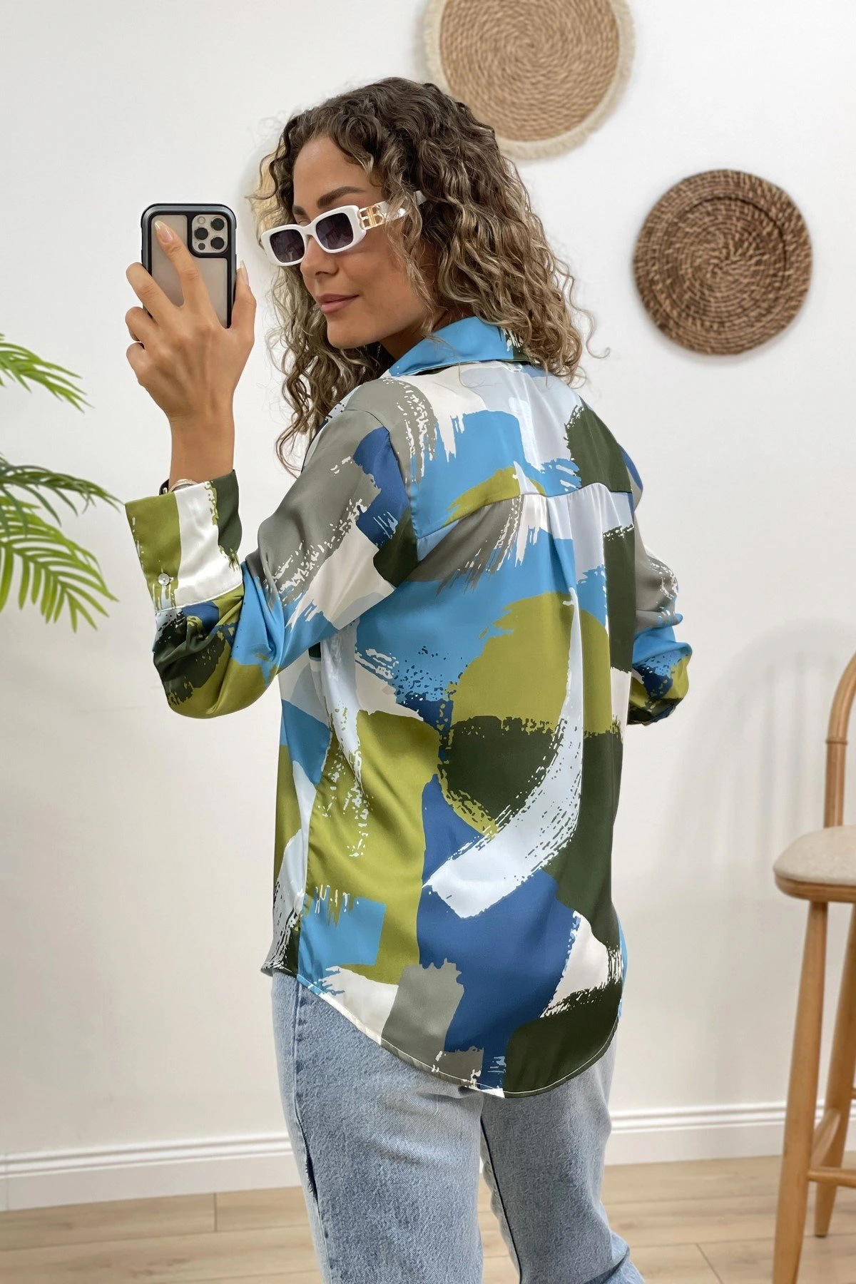 FIRÇA DESEN SATEN GÖMLEK – DESENLİ