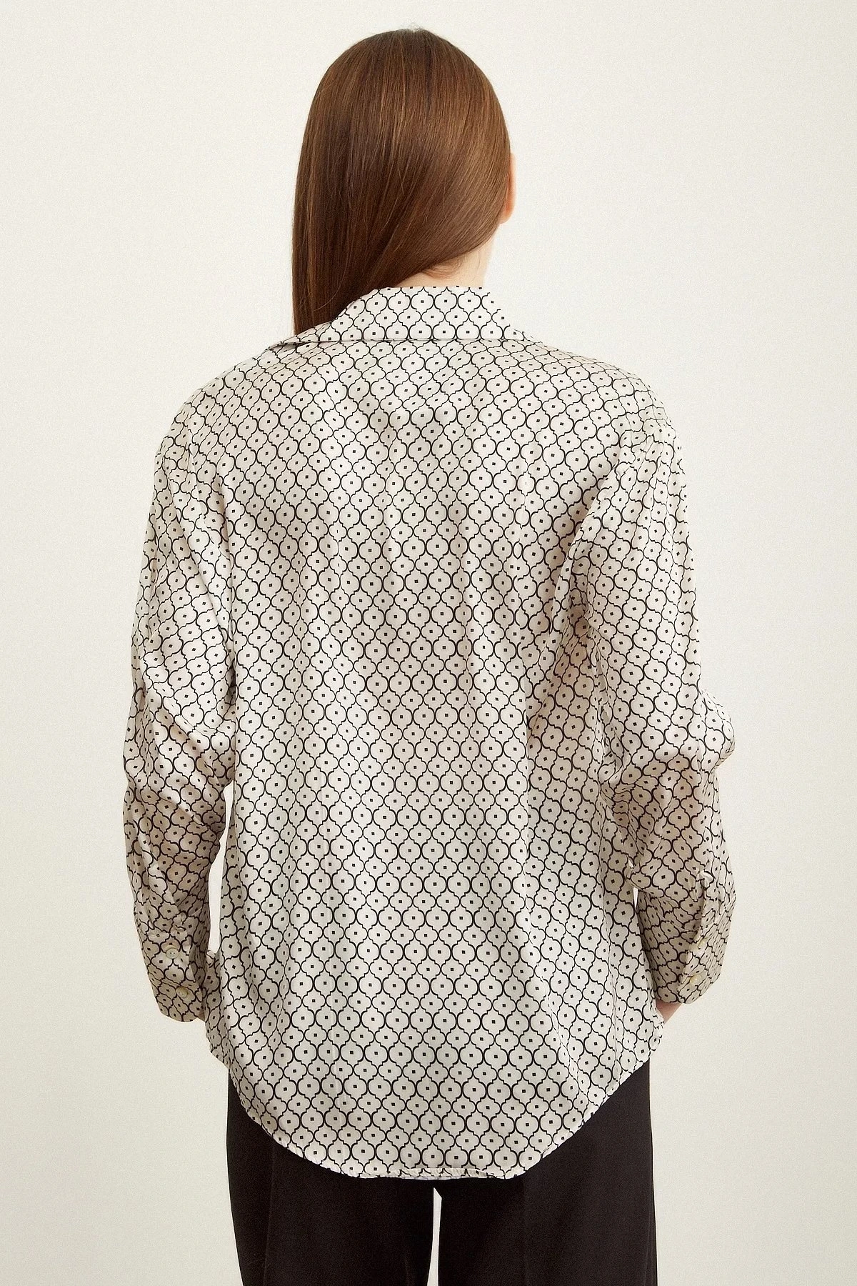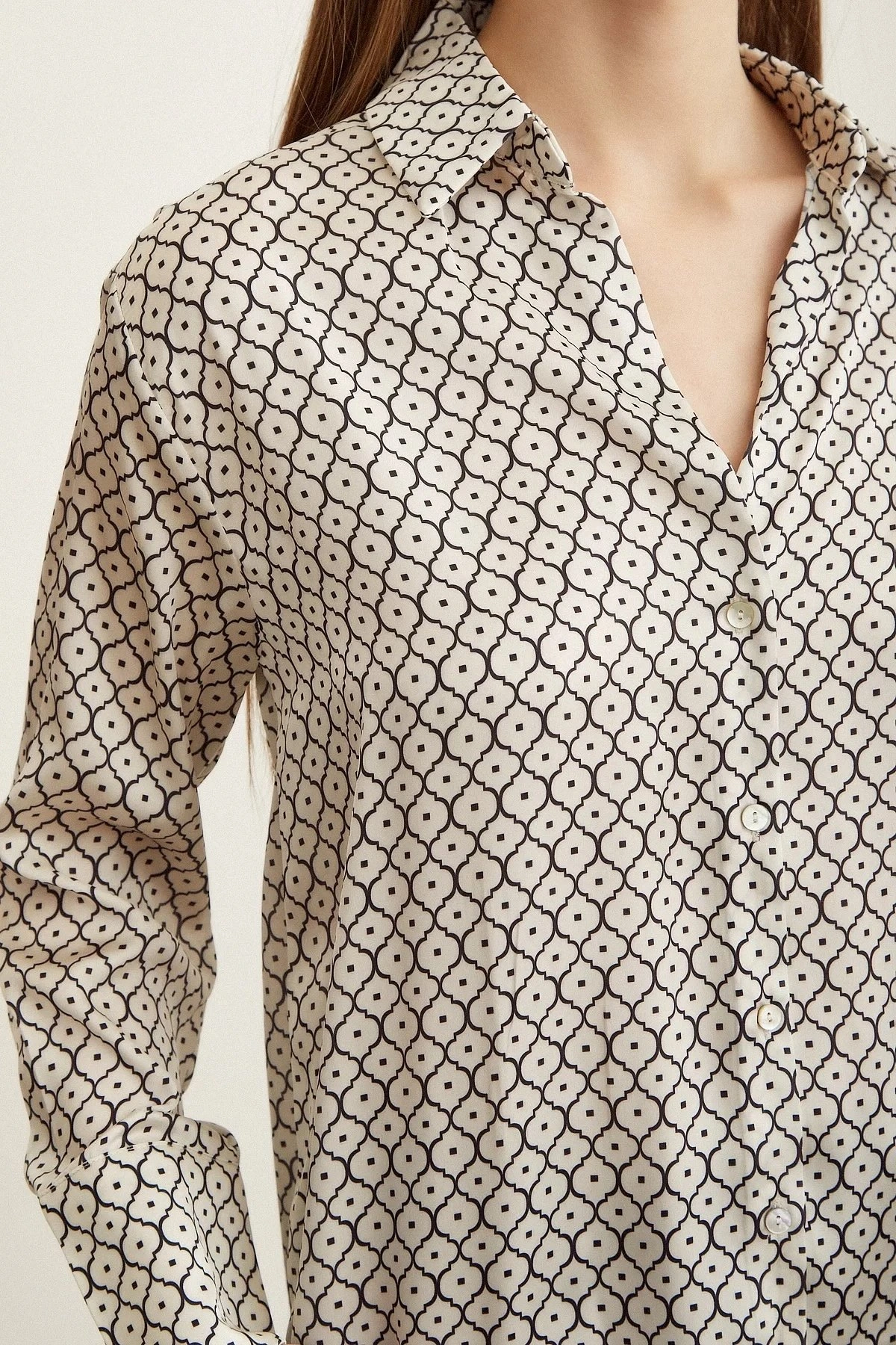GEOMETRİK DESEN SATEN GÖMLEK – EKRU SİYAH