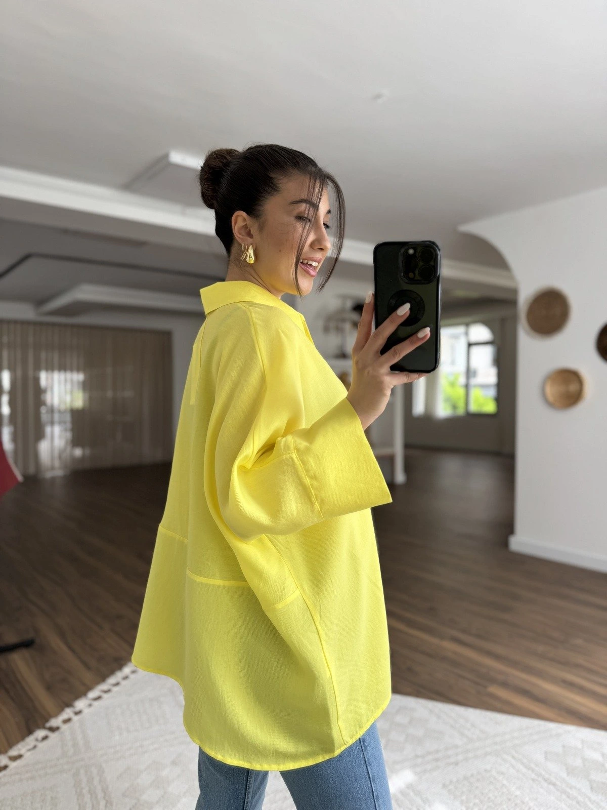 GİZLİ DÜĞME TRUVAKAR KOL TENSEL SALAŞ GÖMLEK – AÇIK SARI