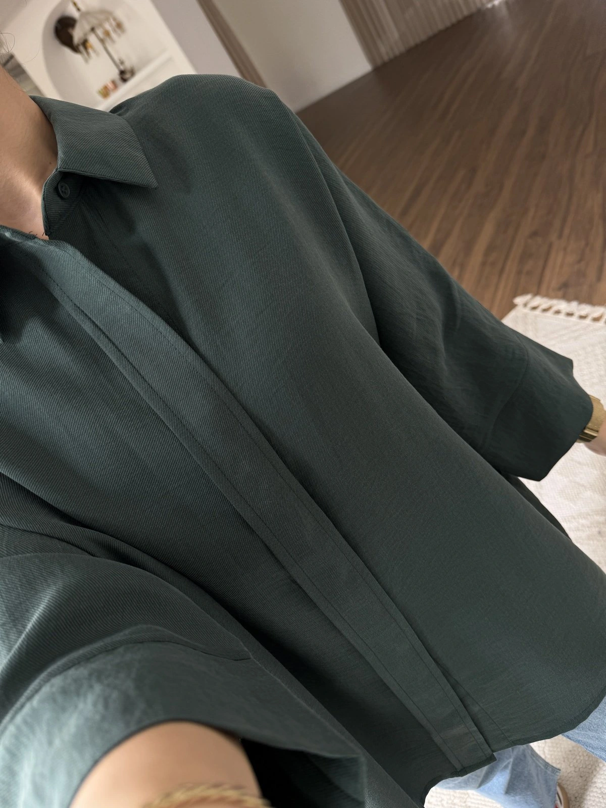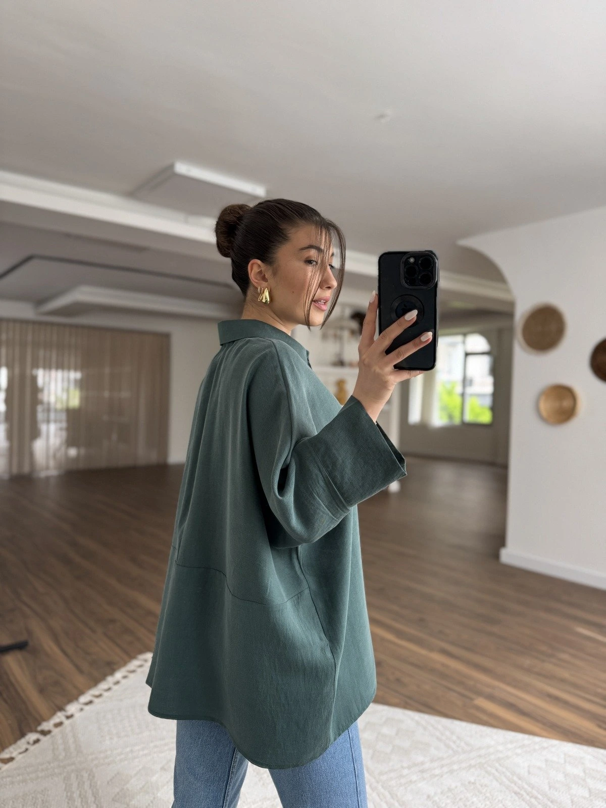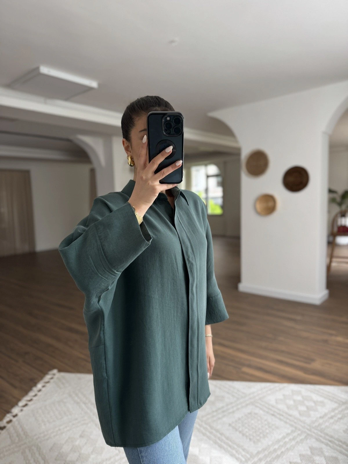 GİZLİ DÜĞME TRUVAKAR KOL TENSEL SALAŞ GÖMLEK – PETROL
