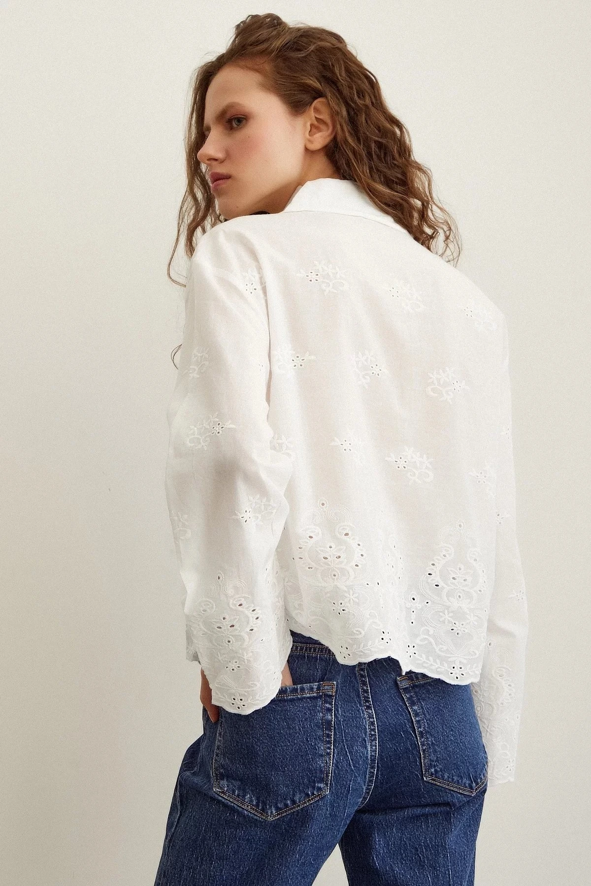 GÜPÜRLÜ GENİŞ KOL PAMUK GÖMLEK – EKRU