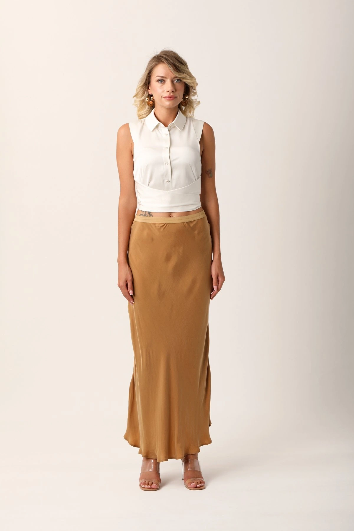 İTHAL BEL KUŞAKLI SIFIR KOL GÖMLEK – EKRU