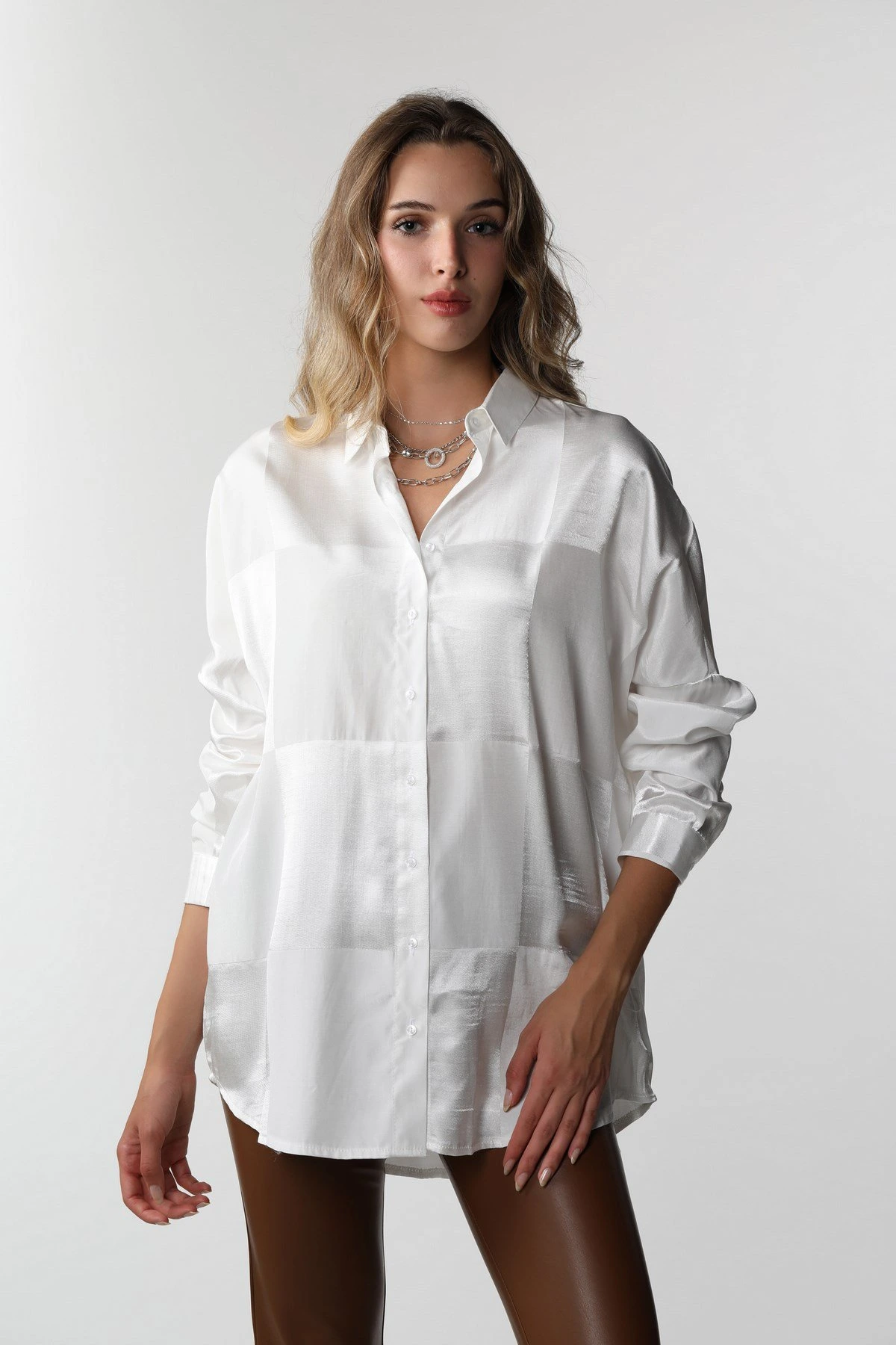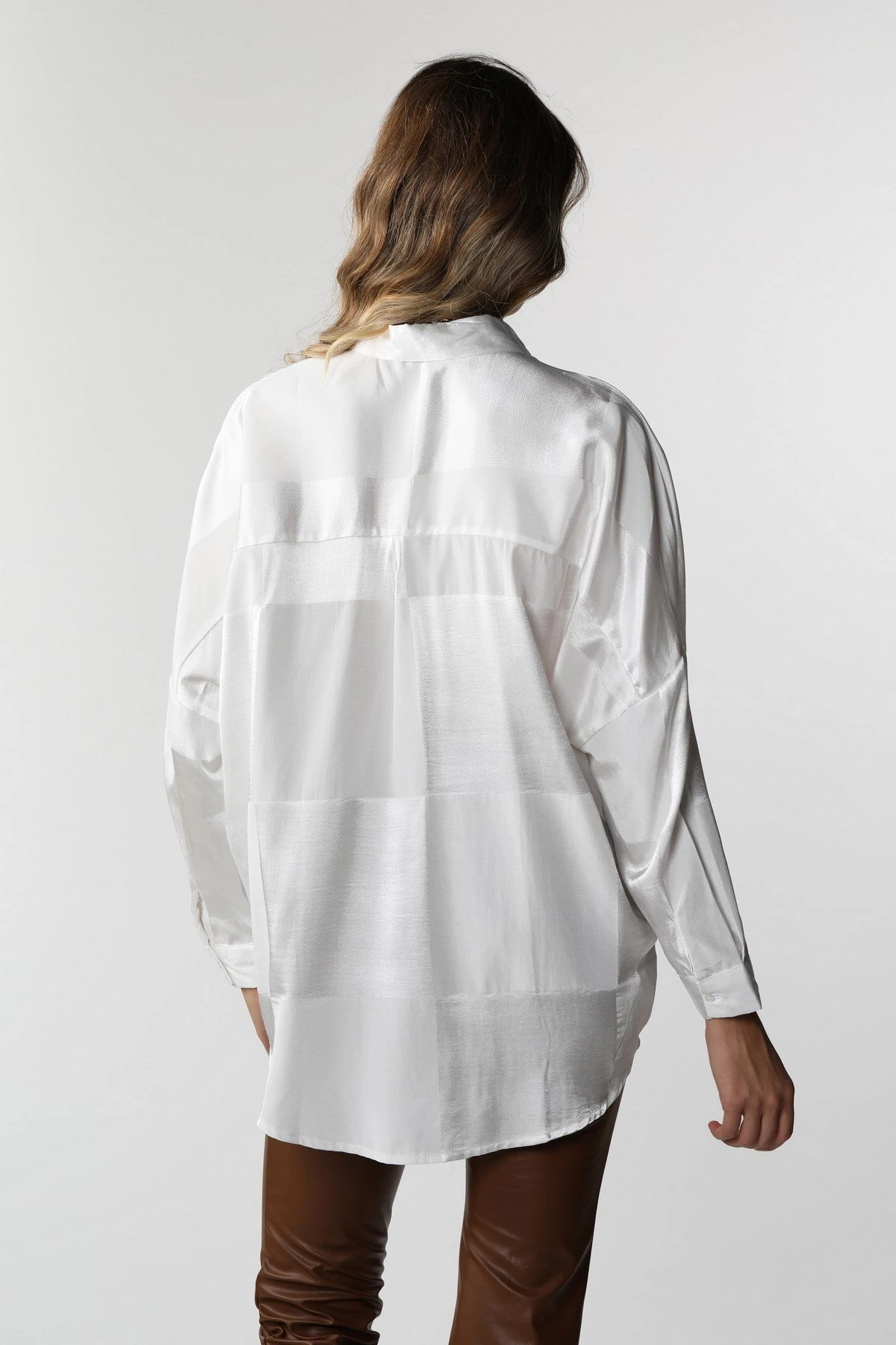 KARELİ SATEN GÖMLEK – BEYAZ