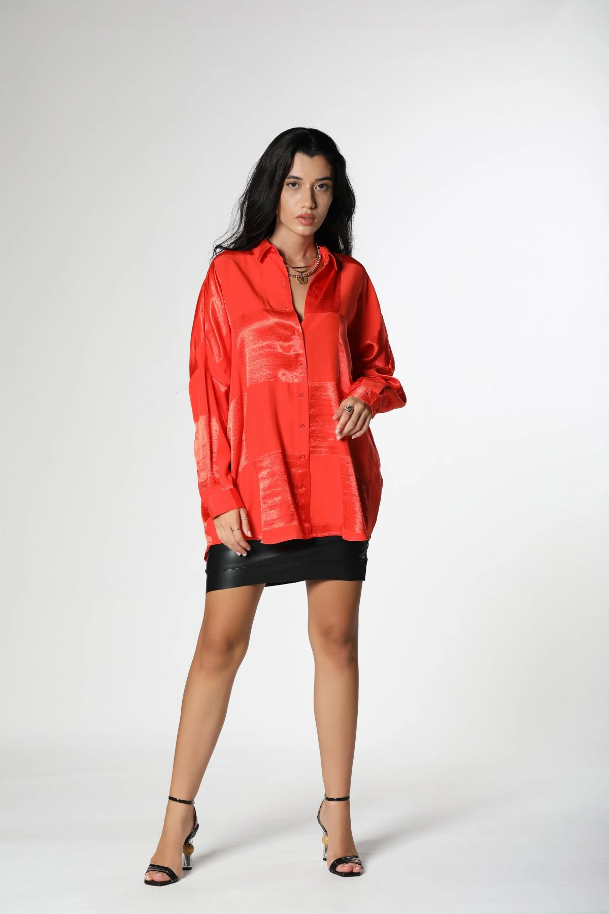 KARELİ SATEN GÖMLEK – NAR ÇİÇEĞİ