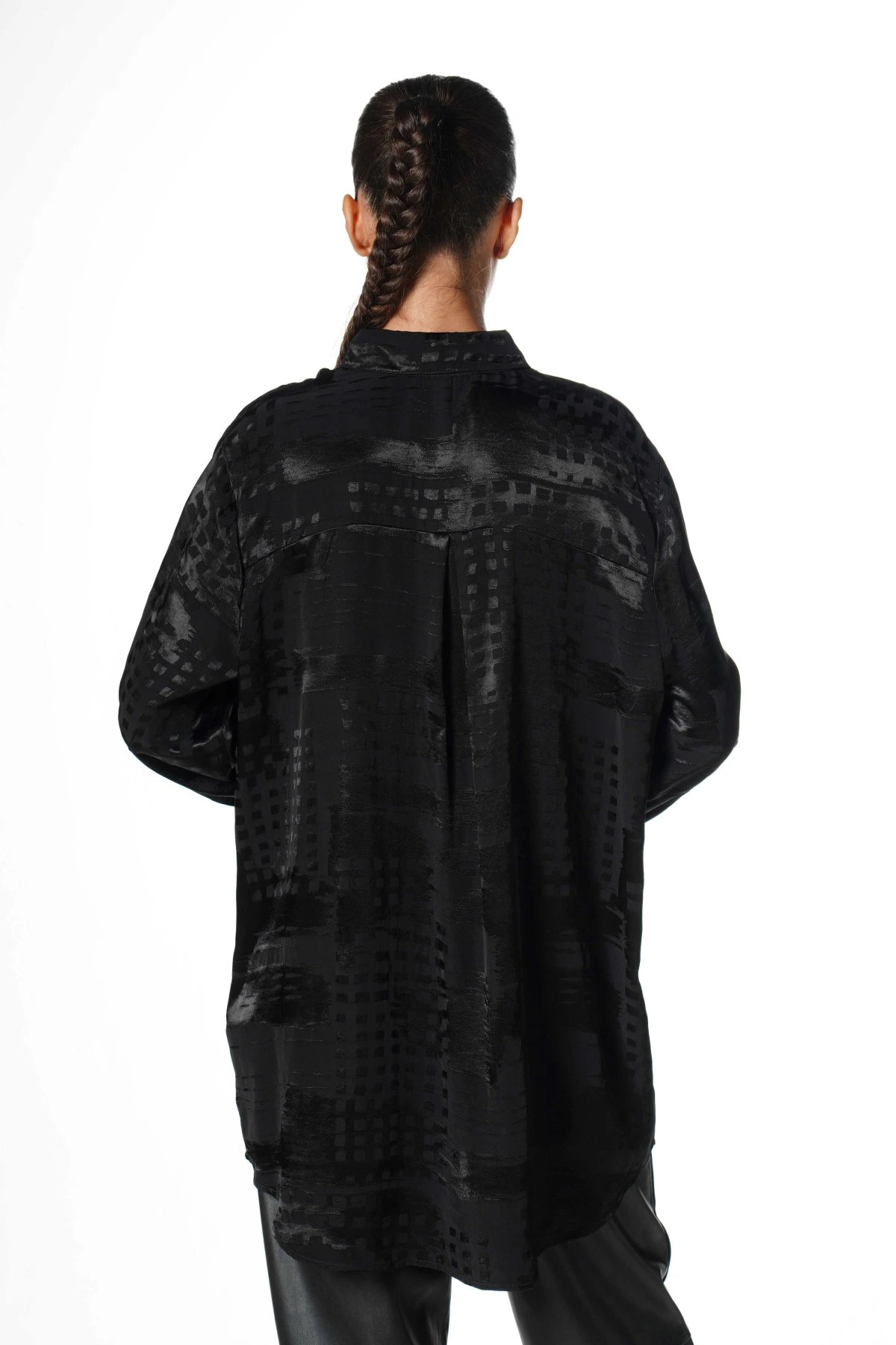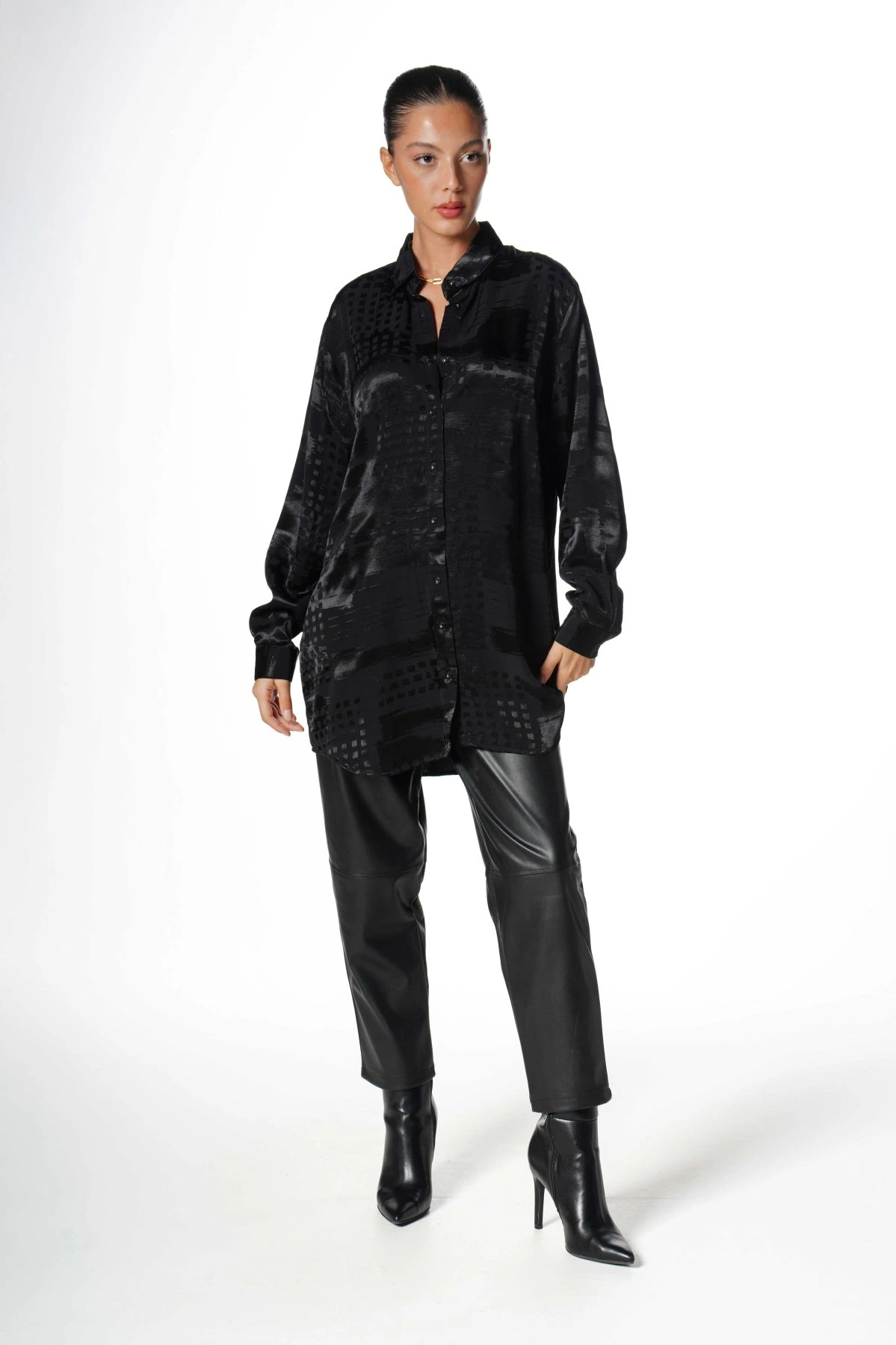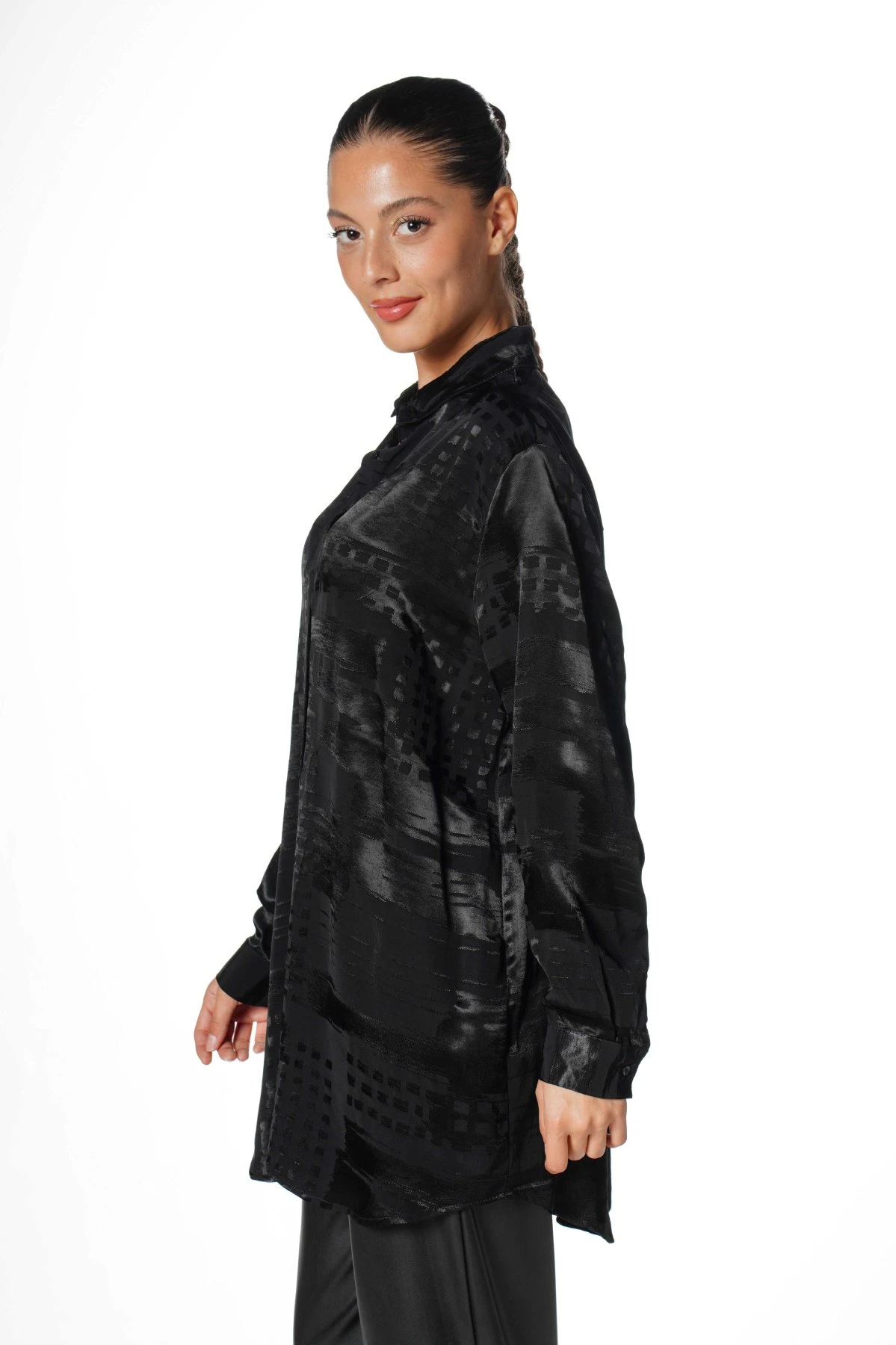 KARIŞIK KARE DESEN SALAŞ SATEN VİSKON GÖMLEK – SİYAH