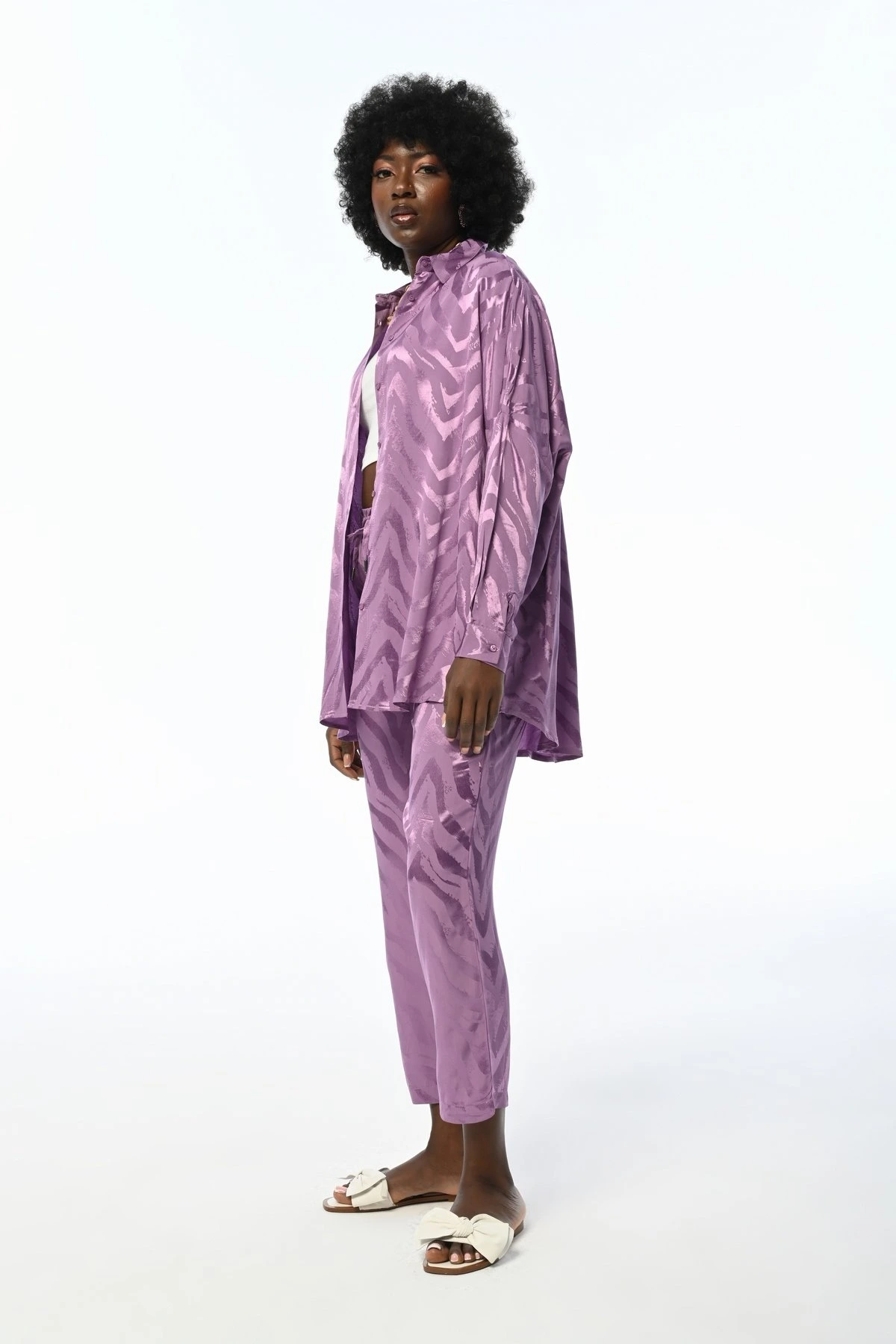 KENDİNDEN DESENLİ SALAŞ SATEN VİSKON GÖMLEK – MOR