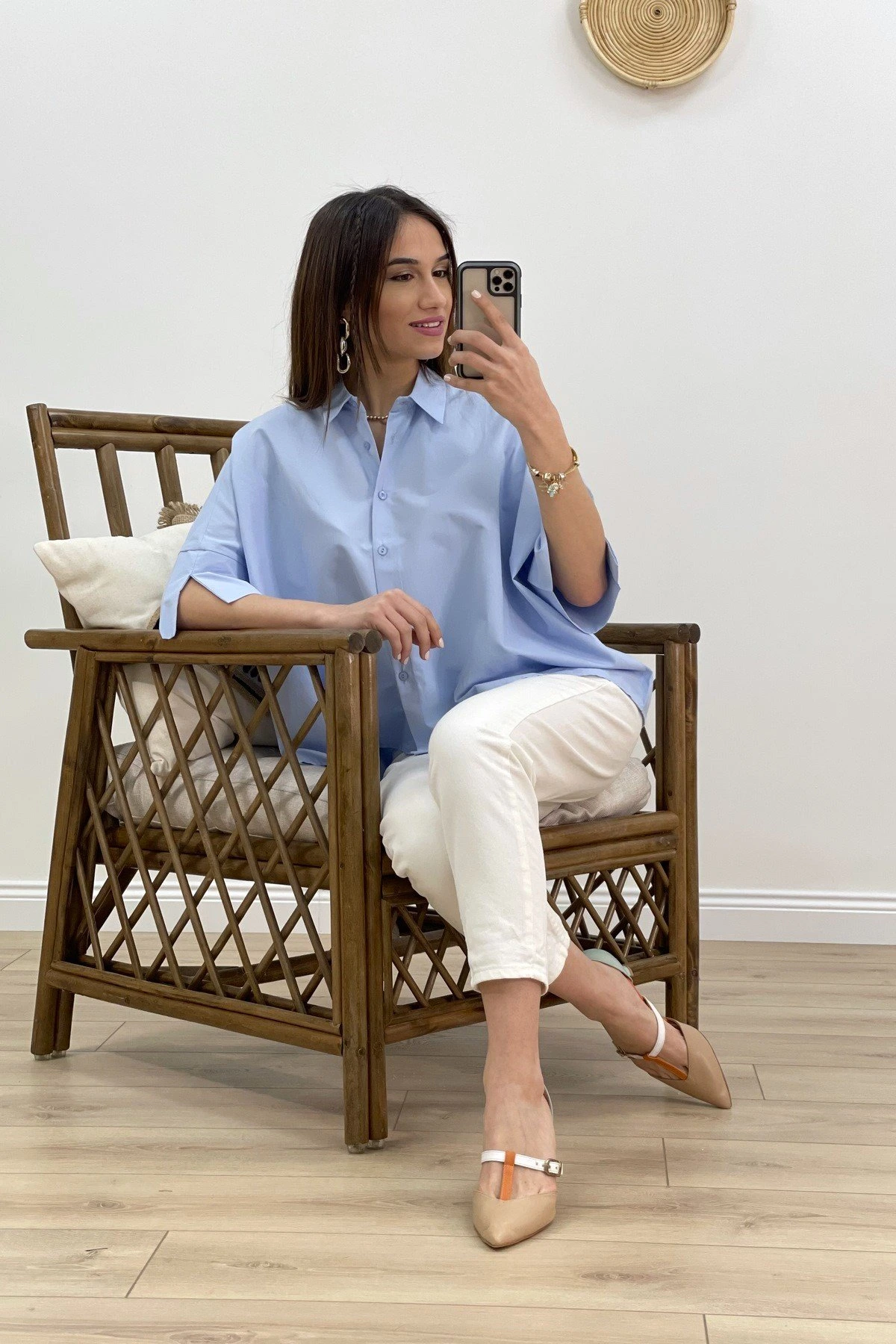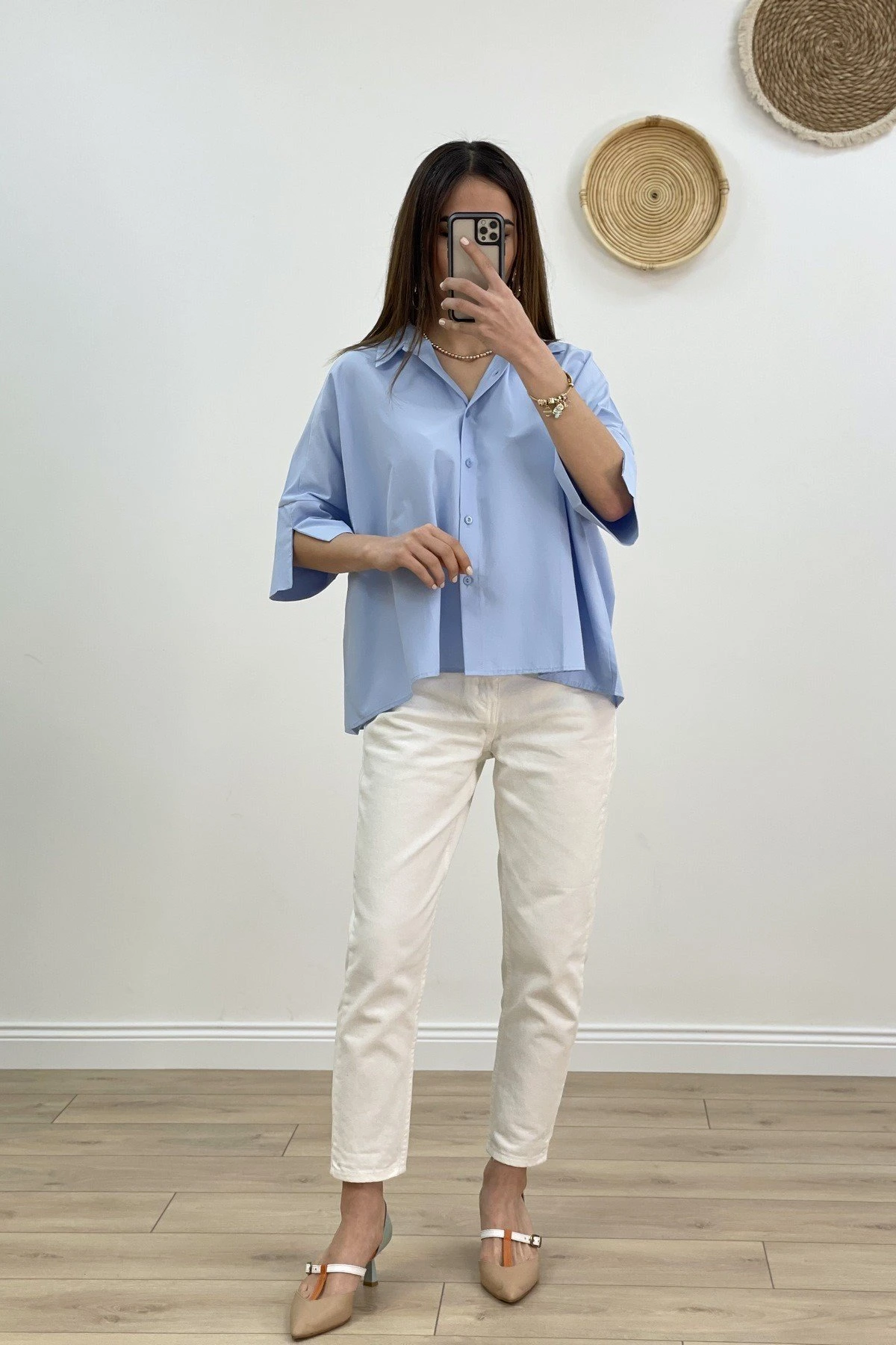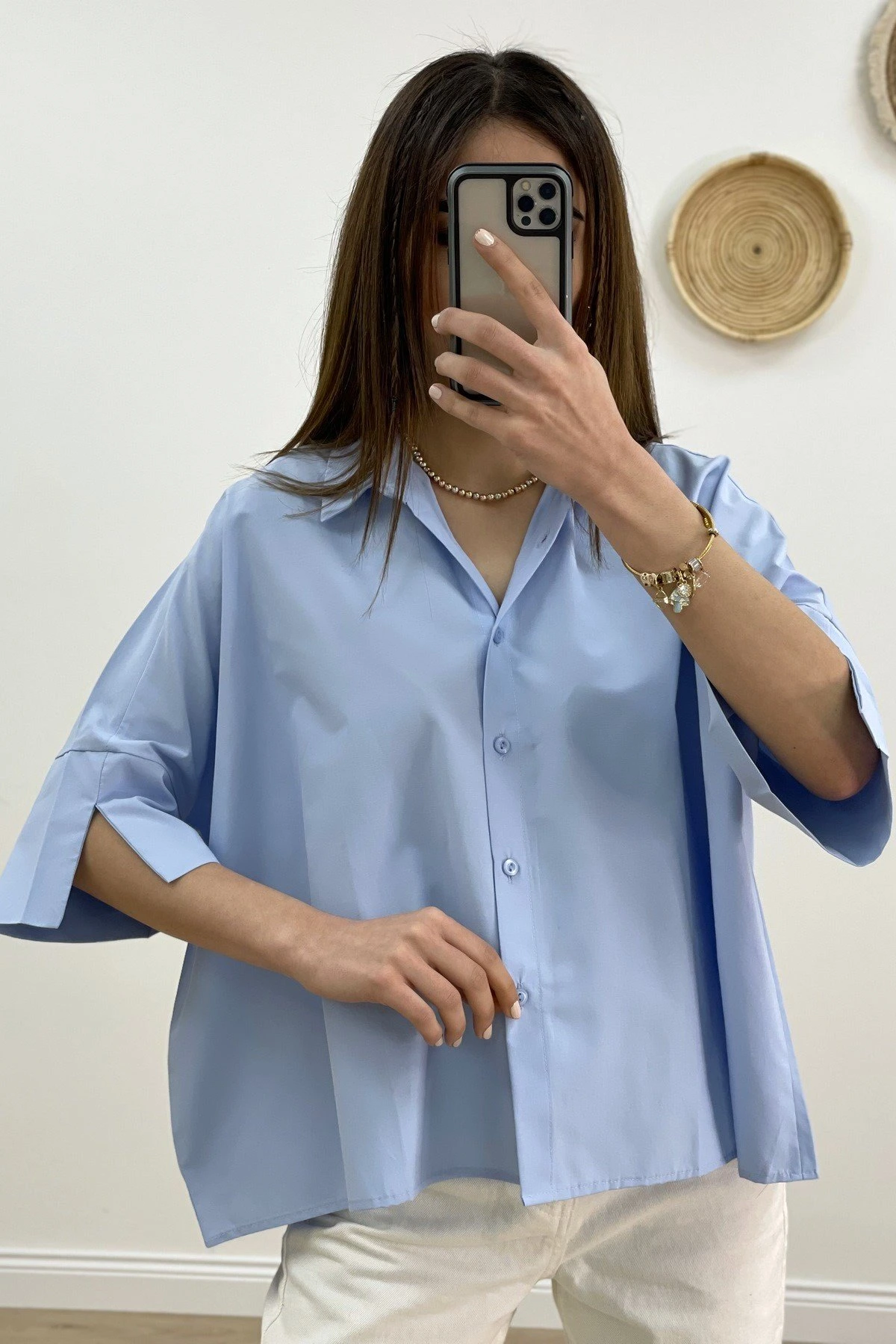 KISA KOLU YIRTMAÇLI SALAŞ GÖMLEK – MAVİ