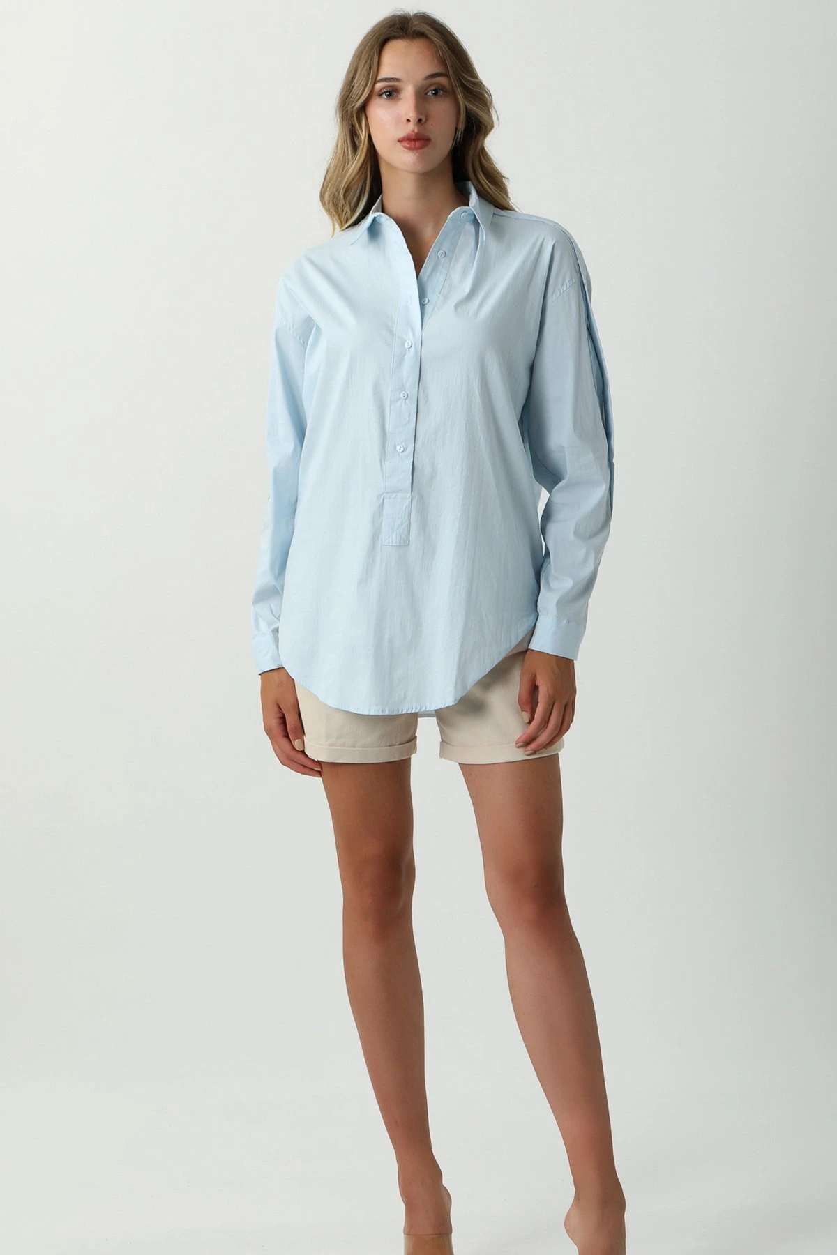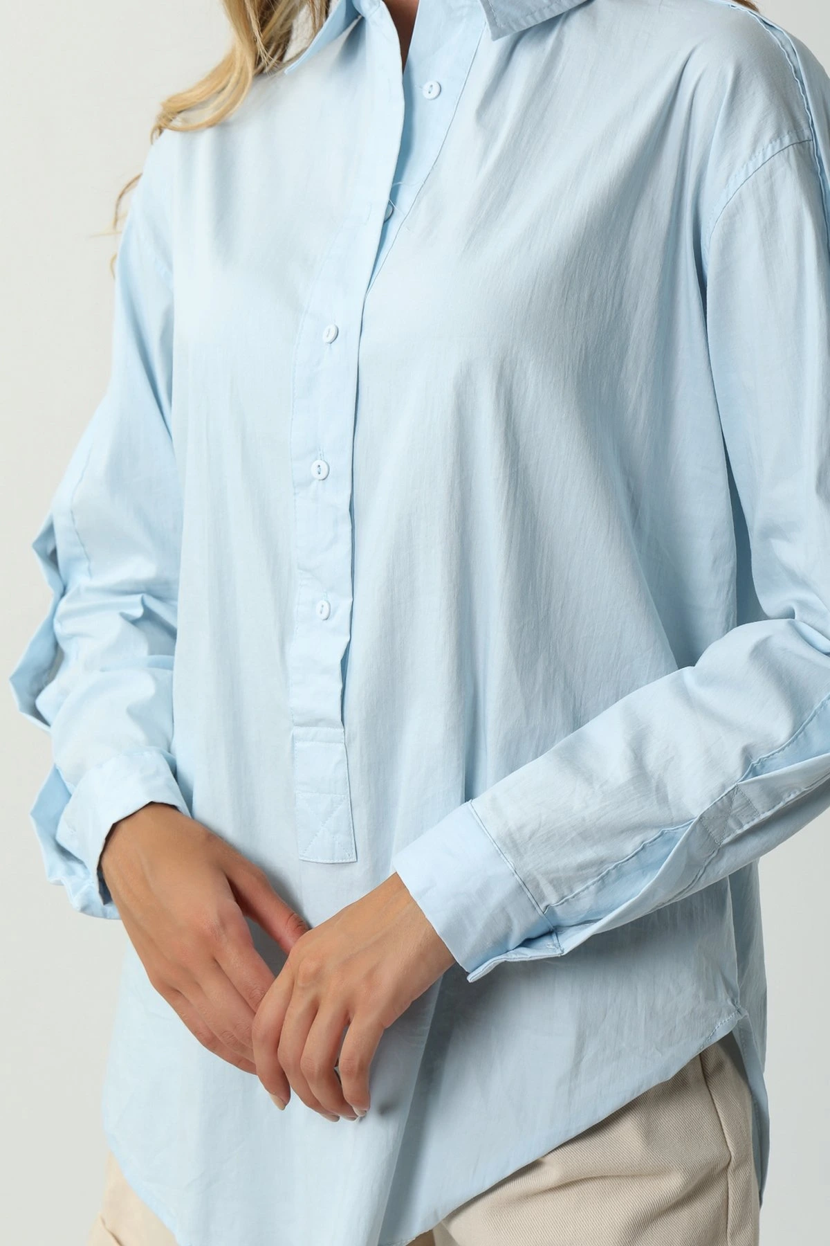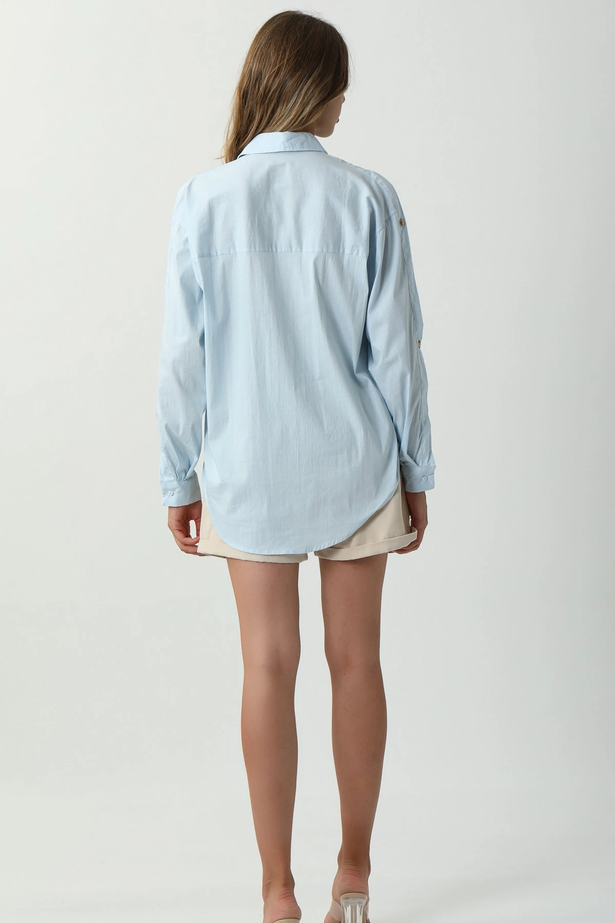 KOL DÜĞMELİ SALAŞ GÖMLEK – MAVİ
