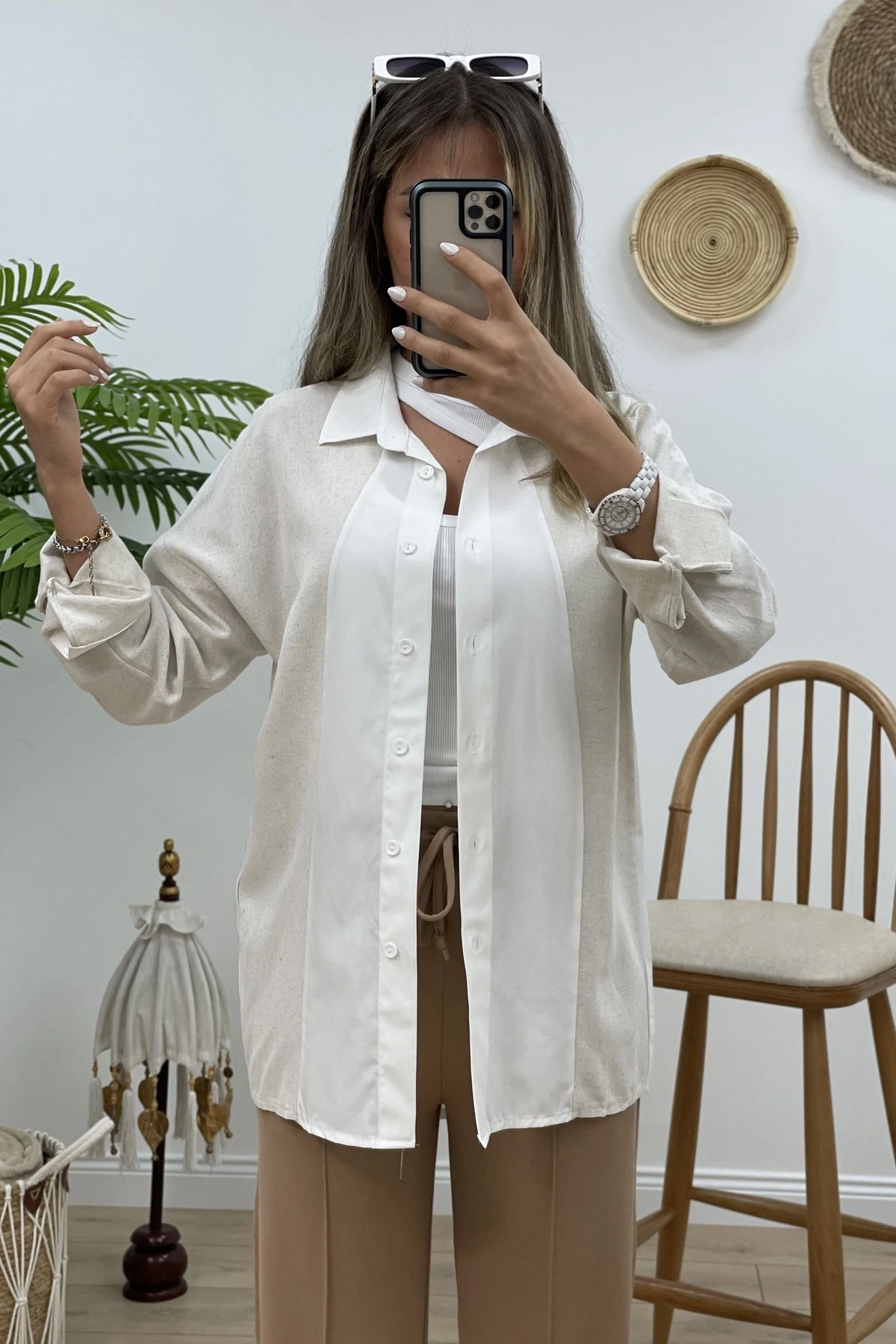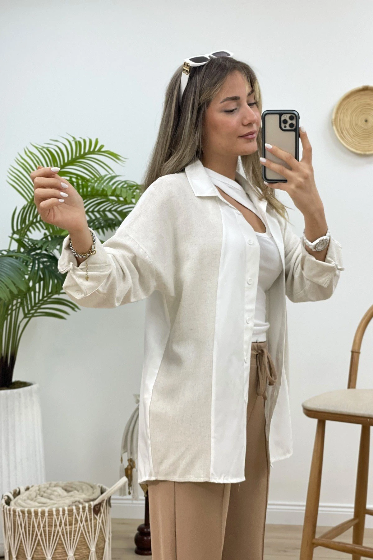 KOL VE ÖNÜ KETEN GÖMLEK – EKRU
