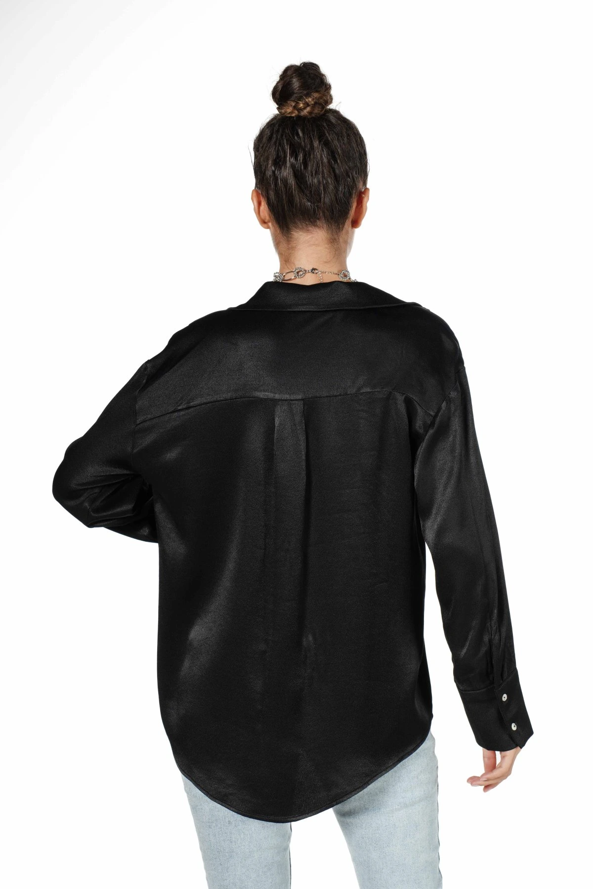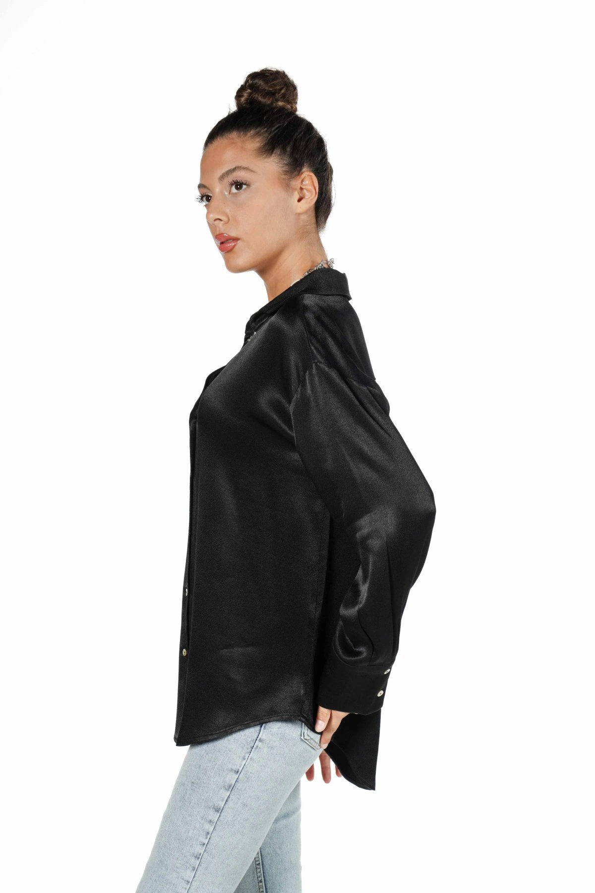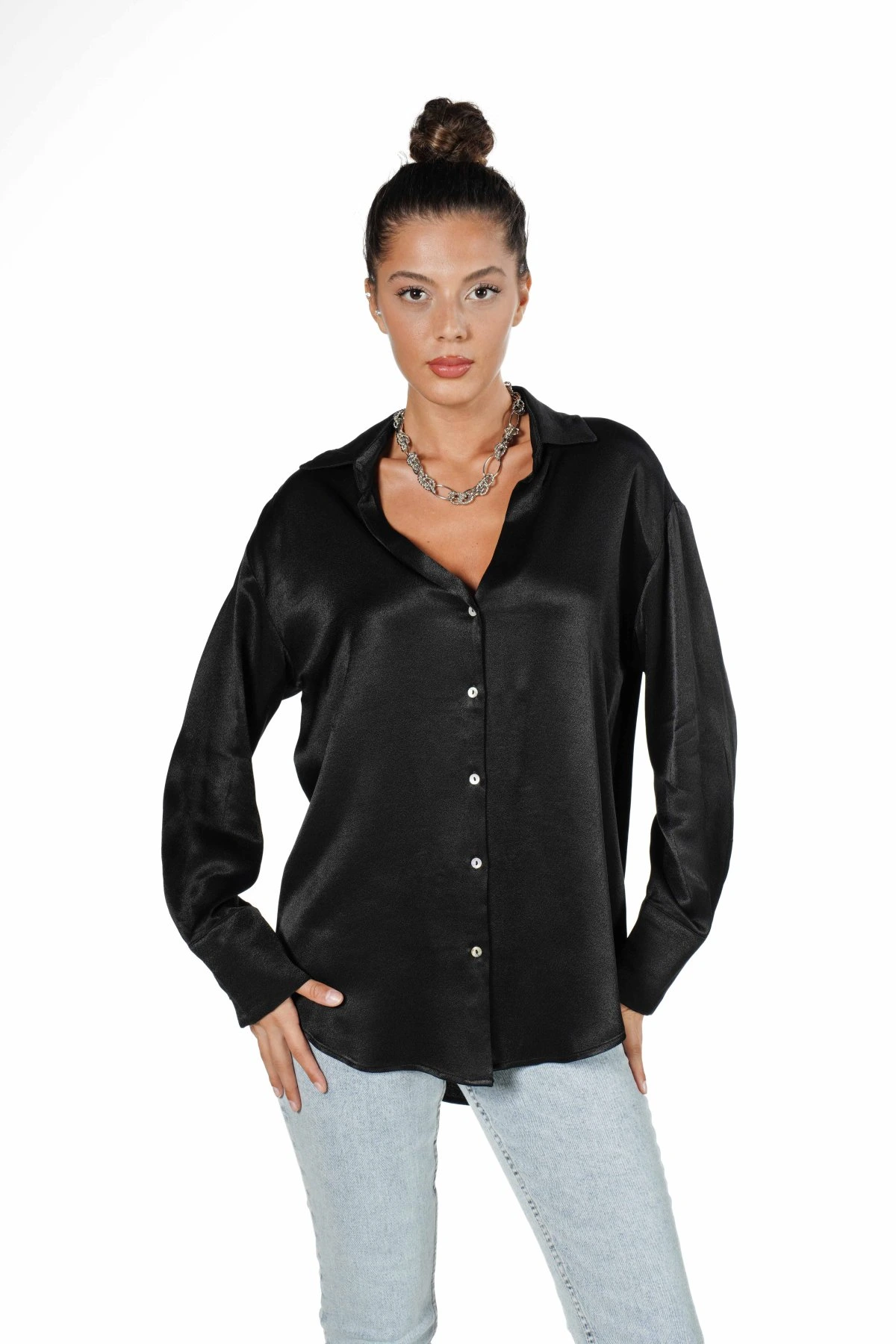 KREP SATEN V YAKA GÖMLEK – SİYAH