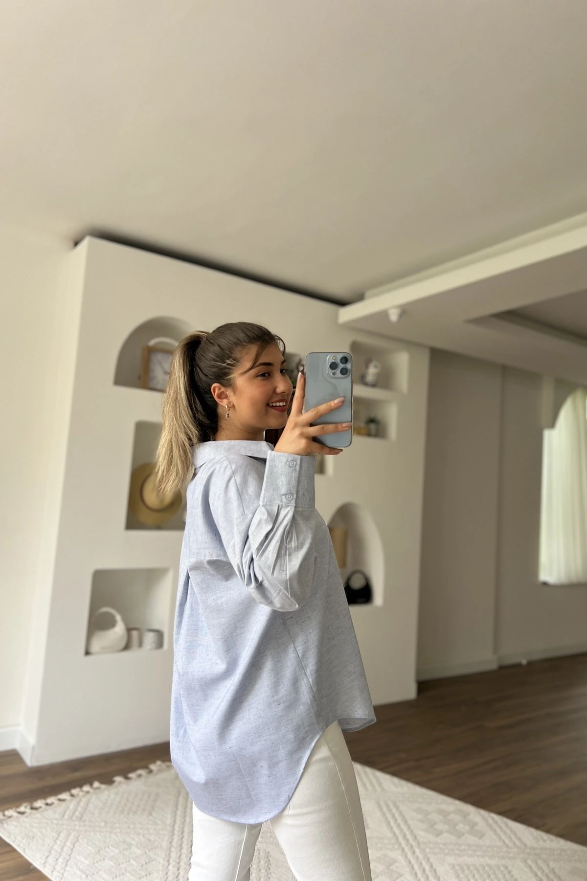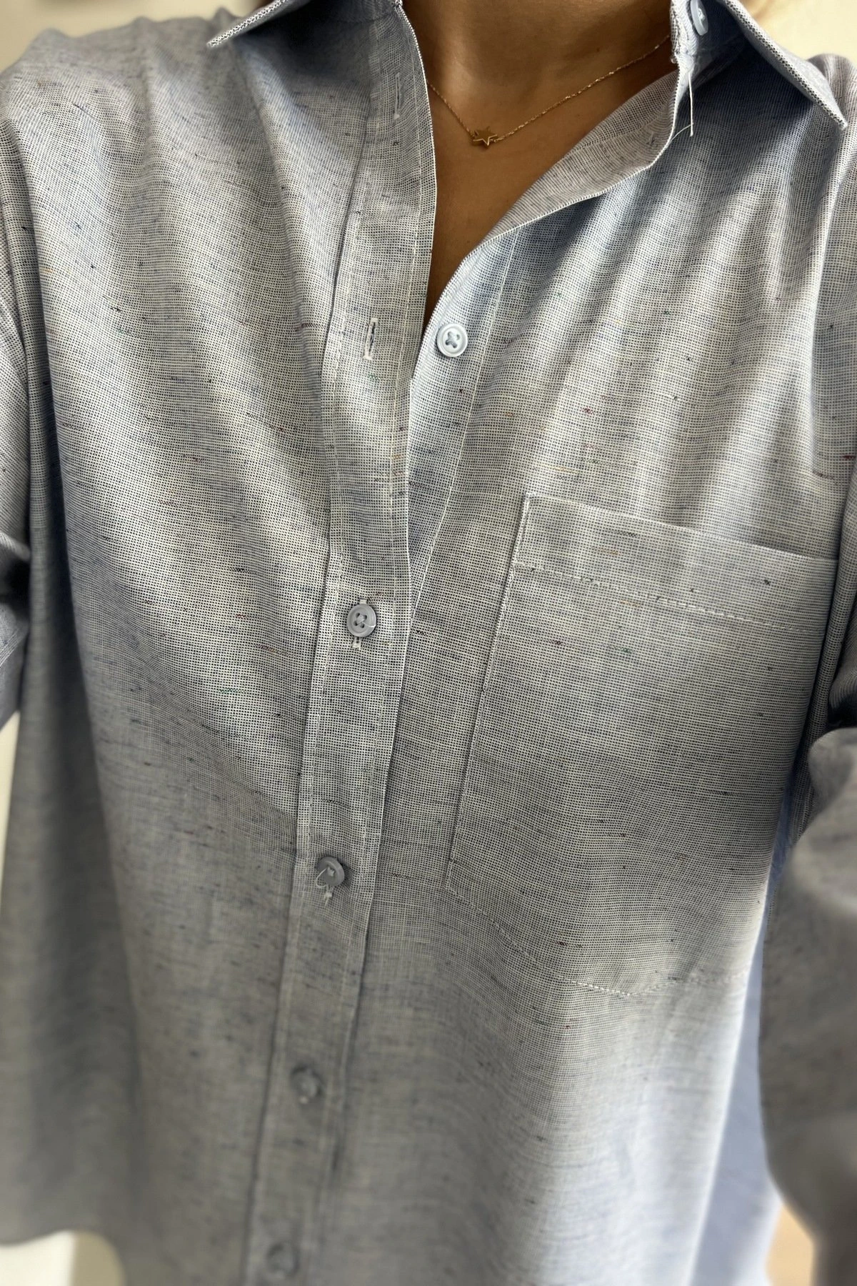 MİNİ RENKLİ DOKU BASİC PAMUK GÖMLEK – İNDİGO