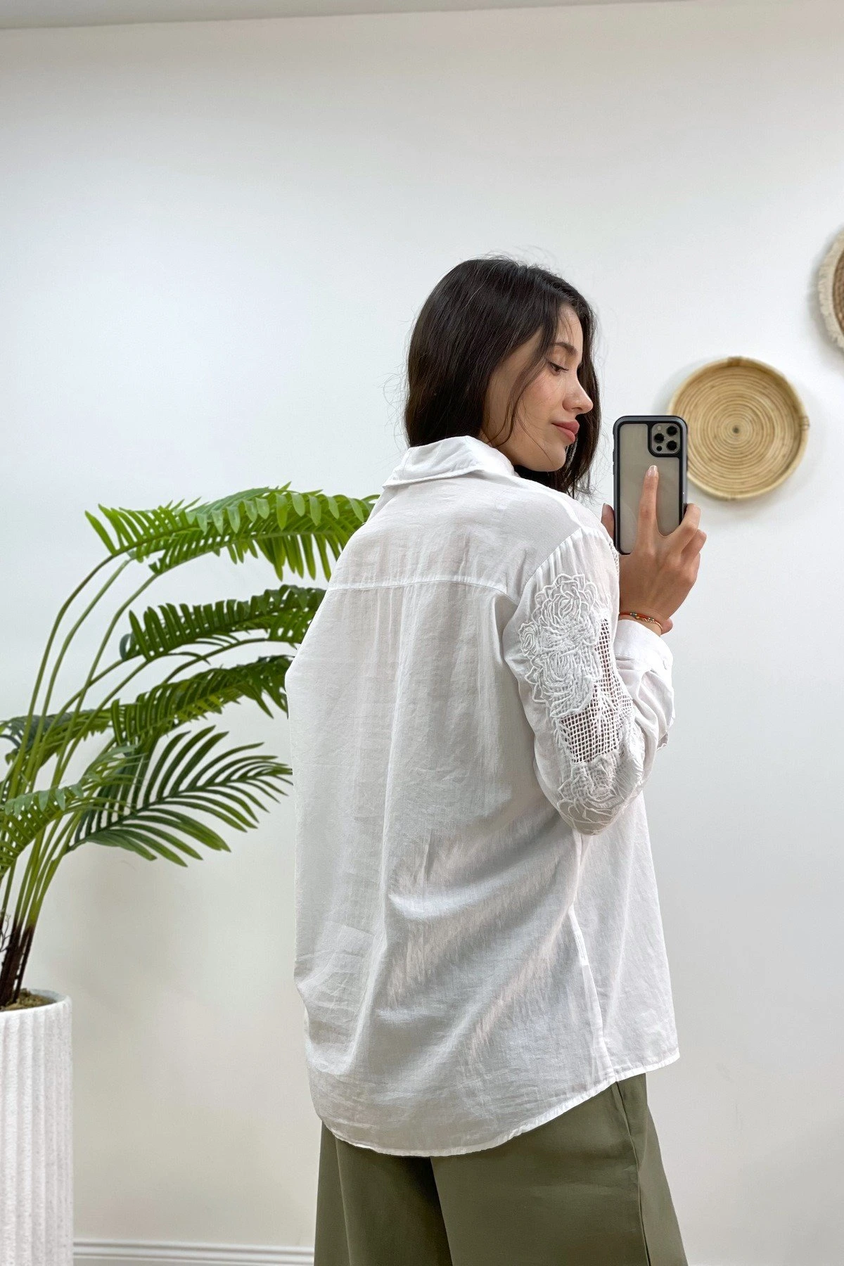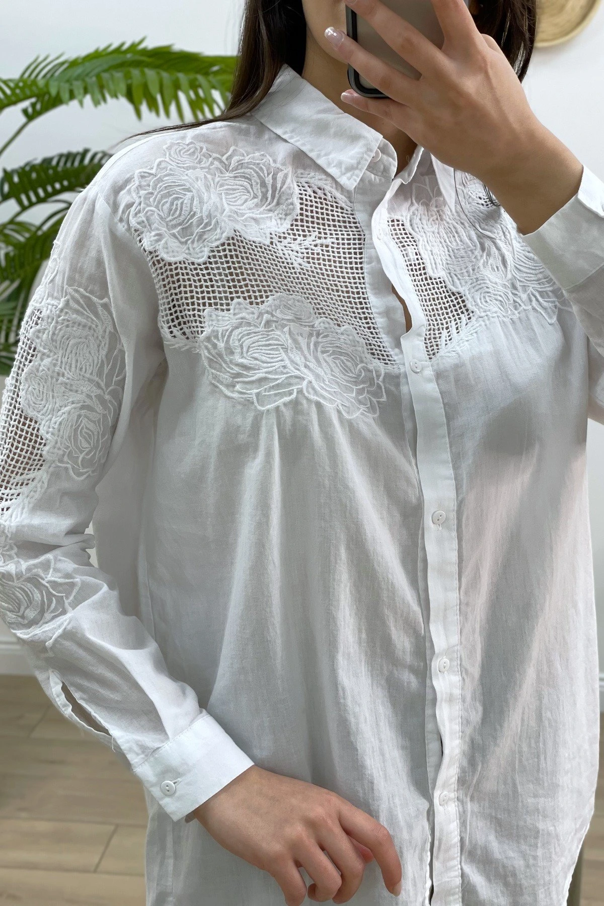 NAKIŞ İŞLEME PAMUK GÖMLEK – BEYAZ