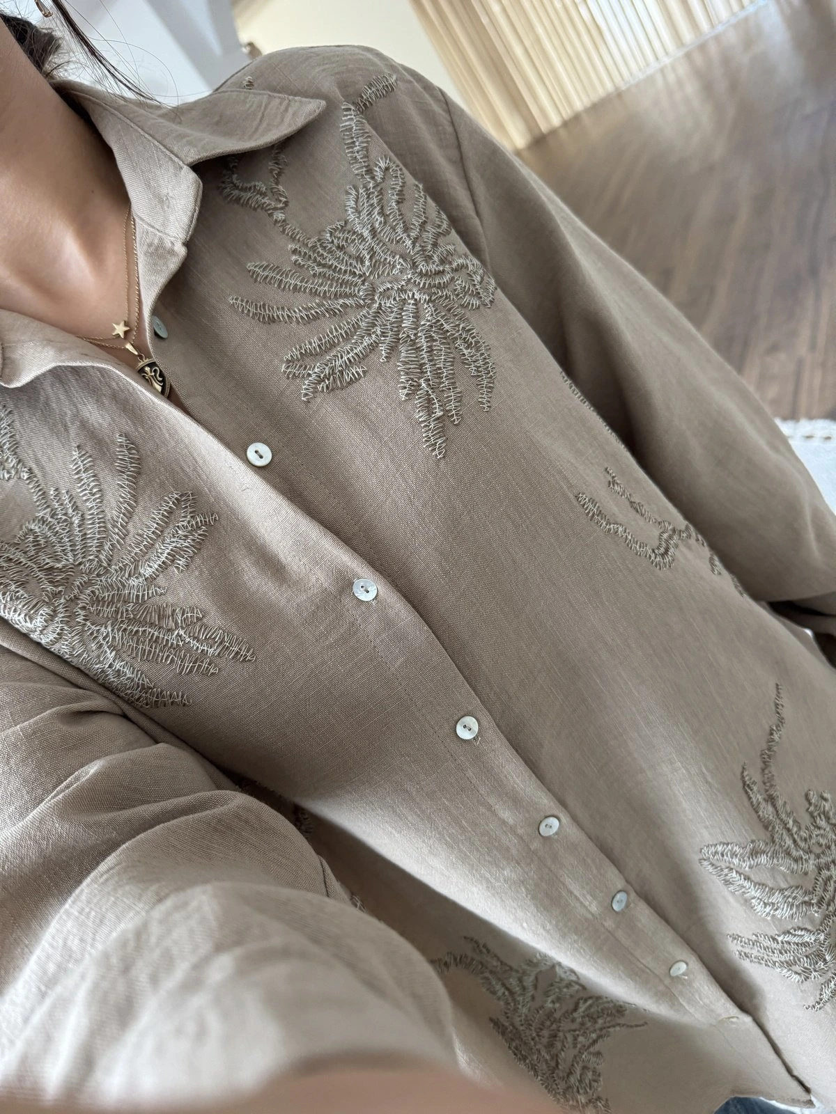 NAKIŞ İŞLEME SALAŞ GÖMLEK - AÇIK BEJ