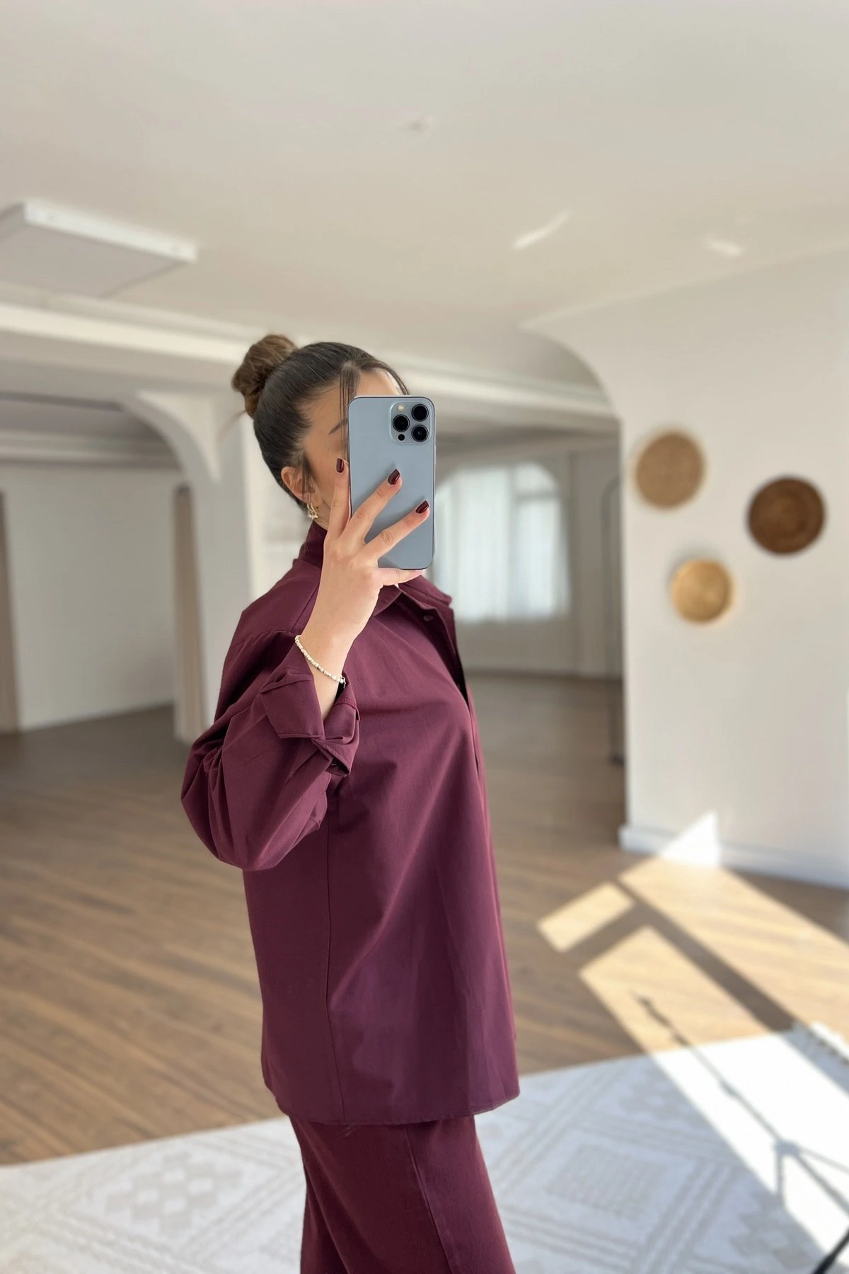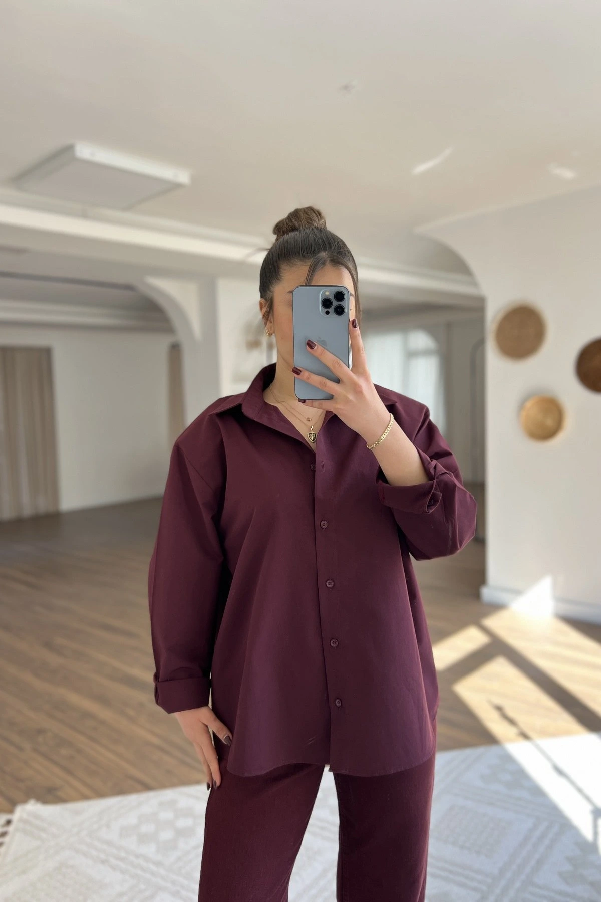 OMUZ VATKA PAMUK SALAŞ GÖMLEK – BORDO