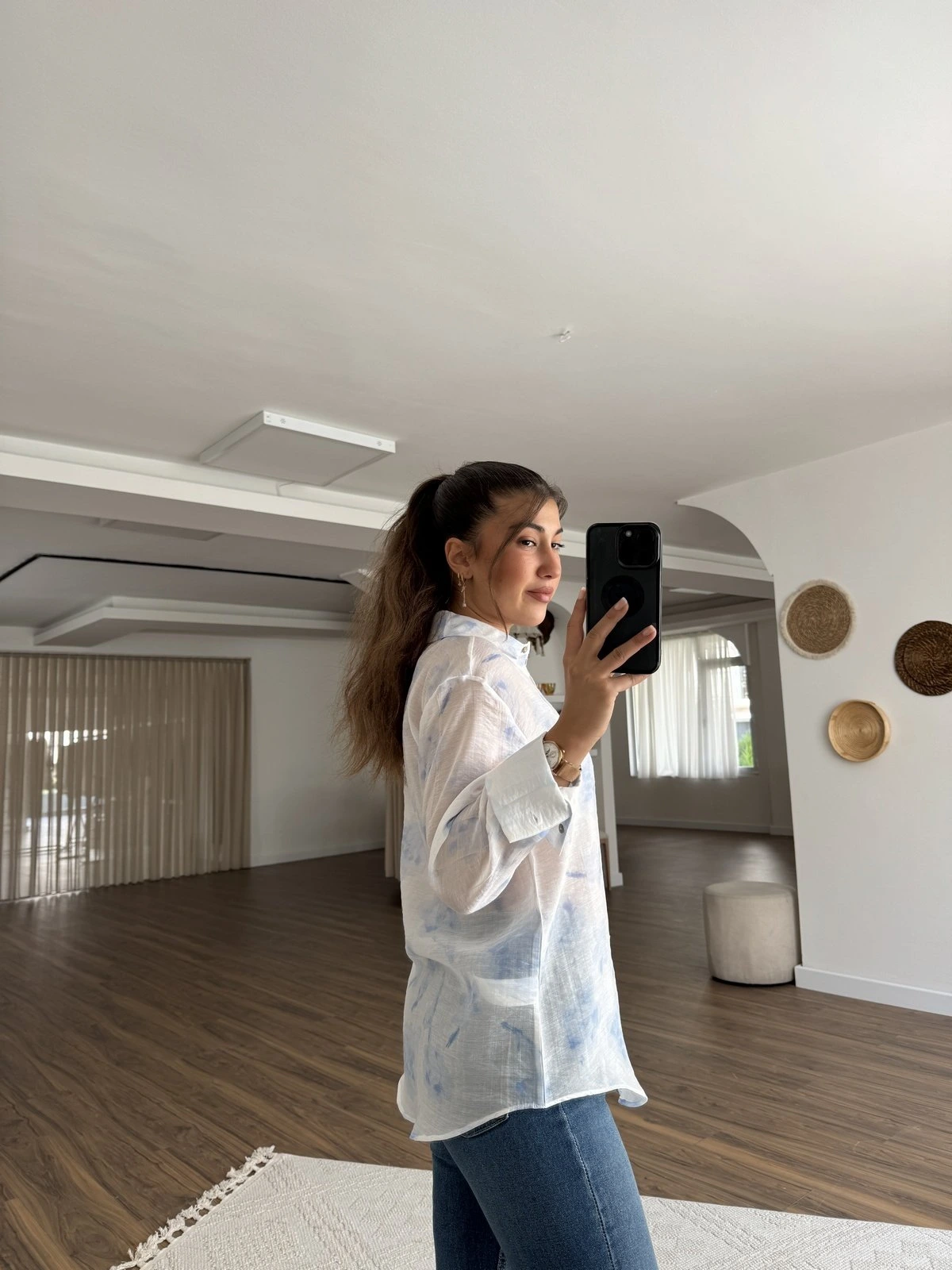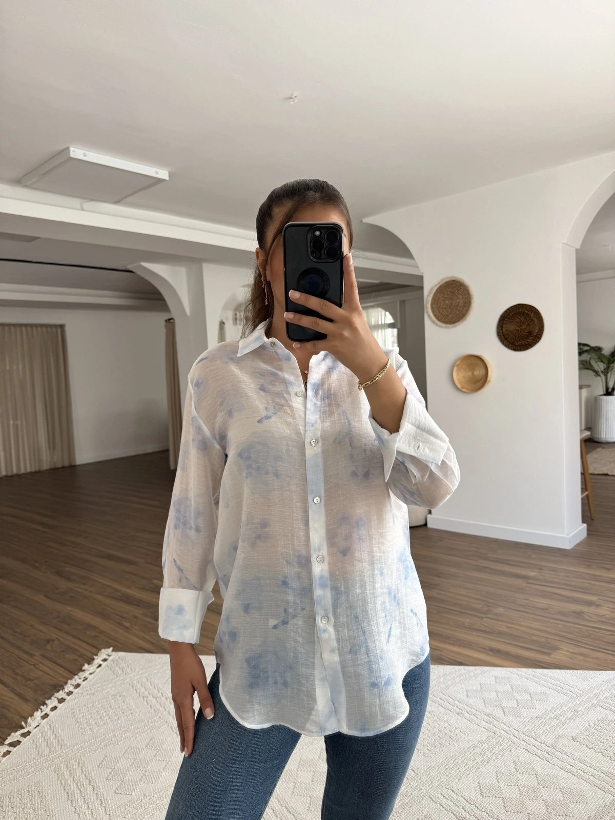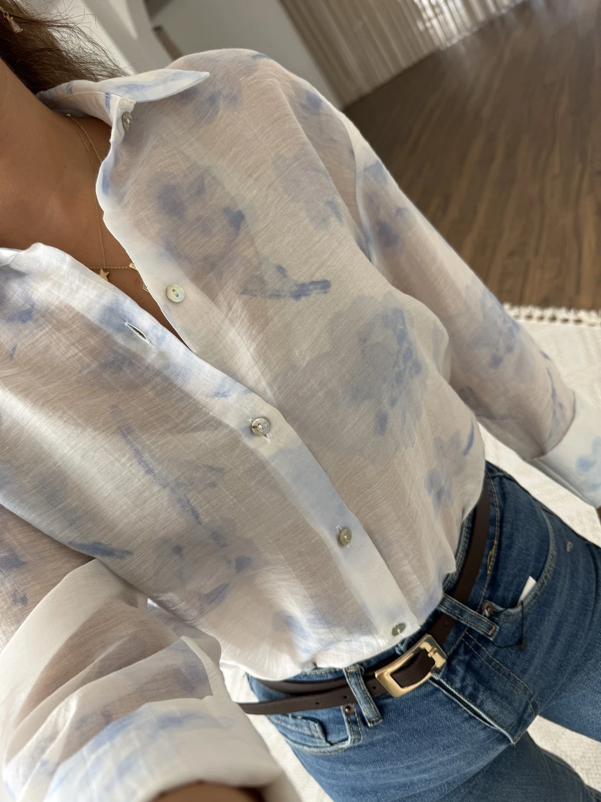 ORGANZE DESENLİ TÜL GÖMLEK – MAVİ