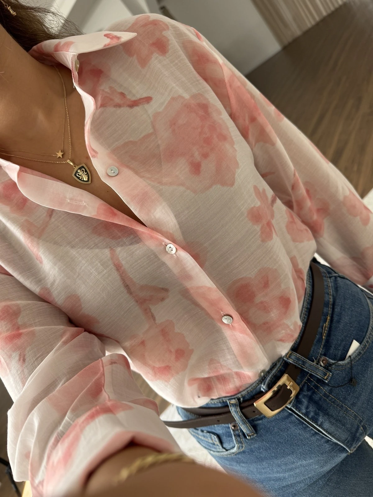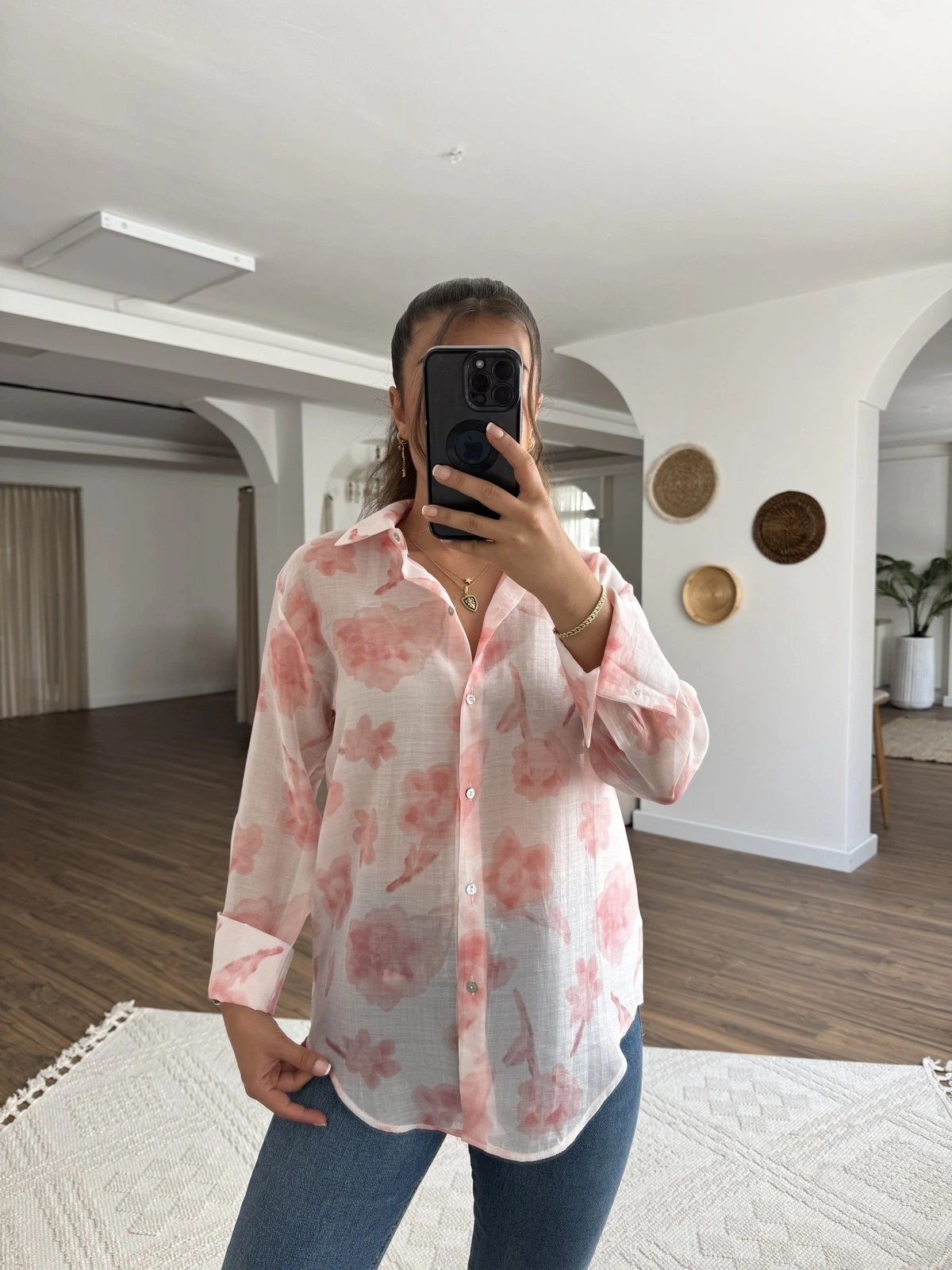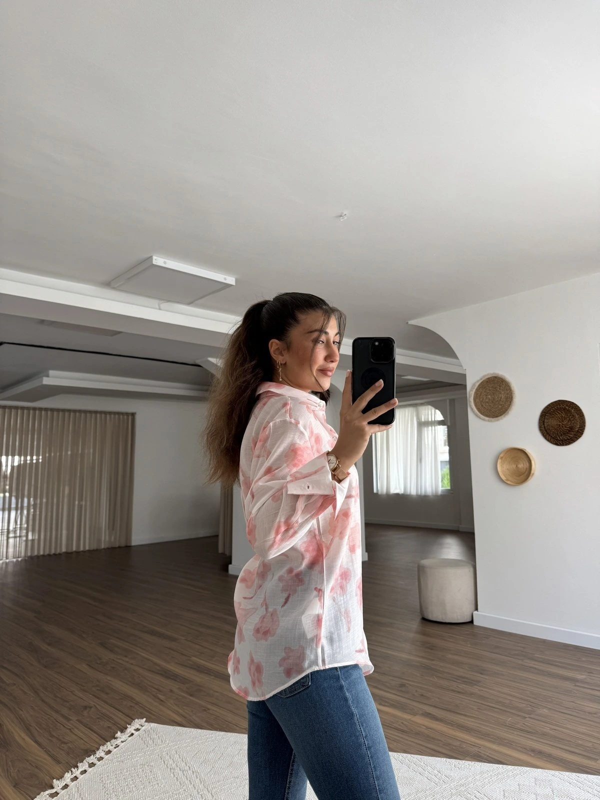 ORGANZE DESENLİ TÜL GÖMLEK – PEMBE