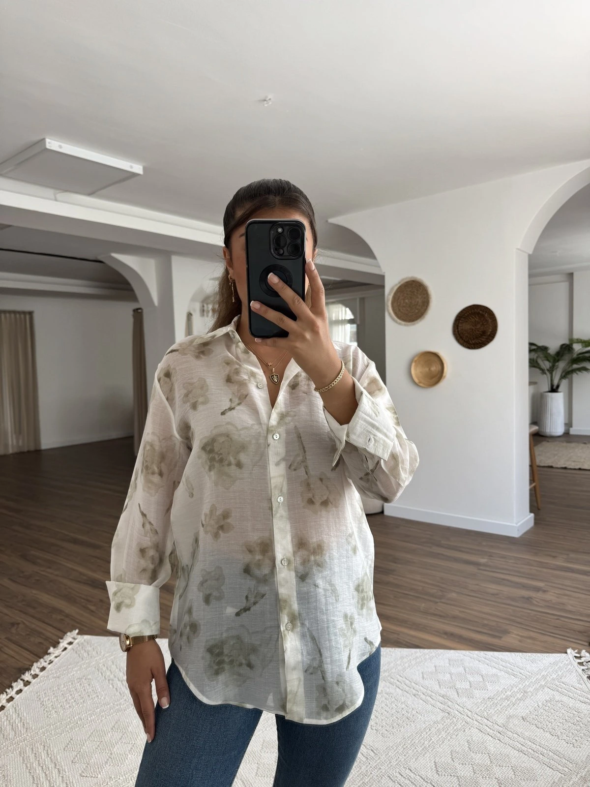 ORGANZE DESENLİ TÜL GÖMLEK – YEŞİL