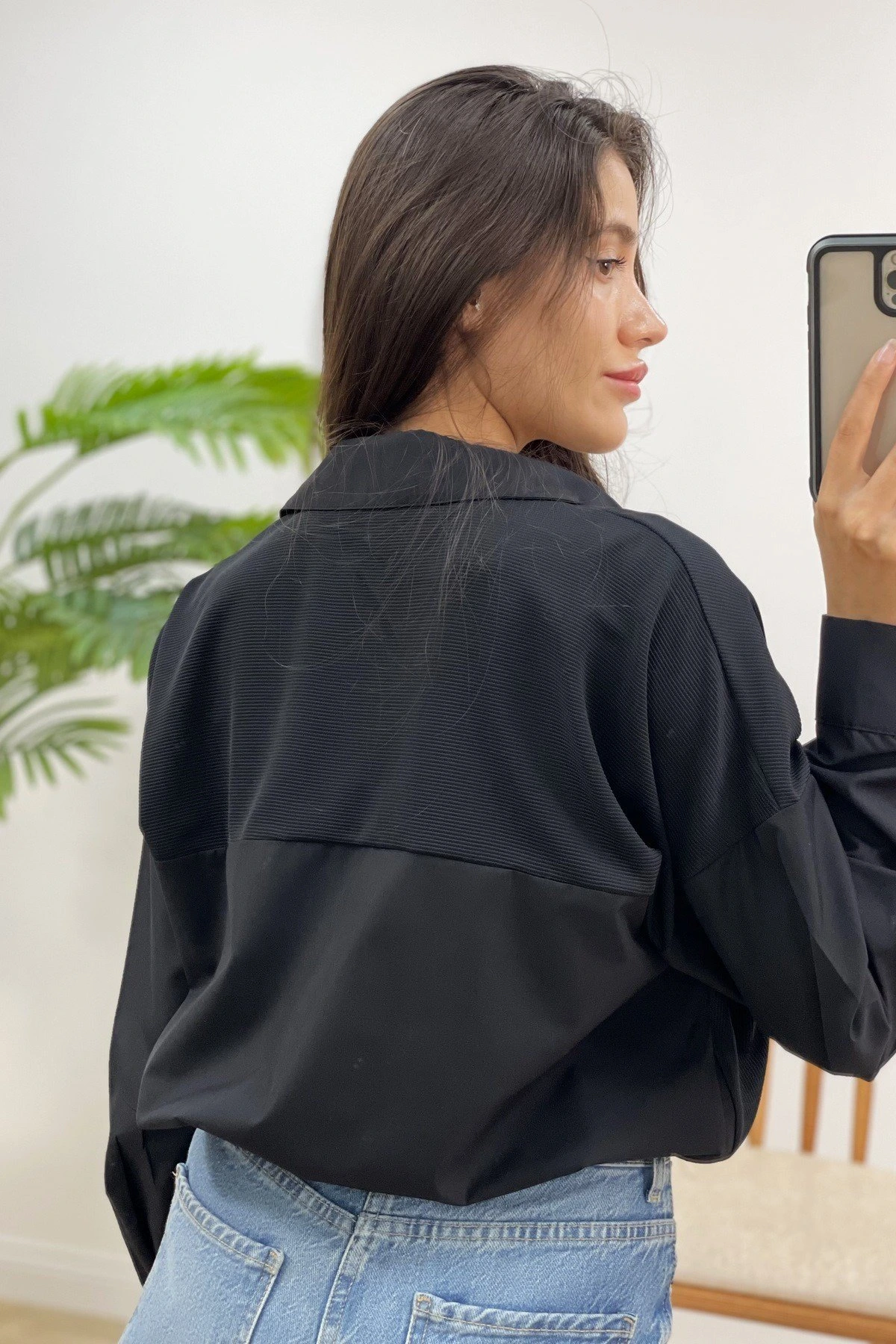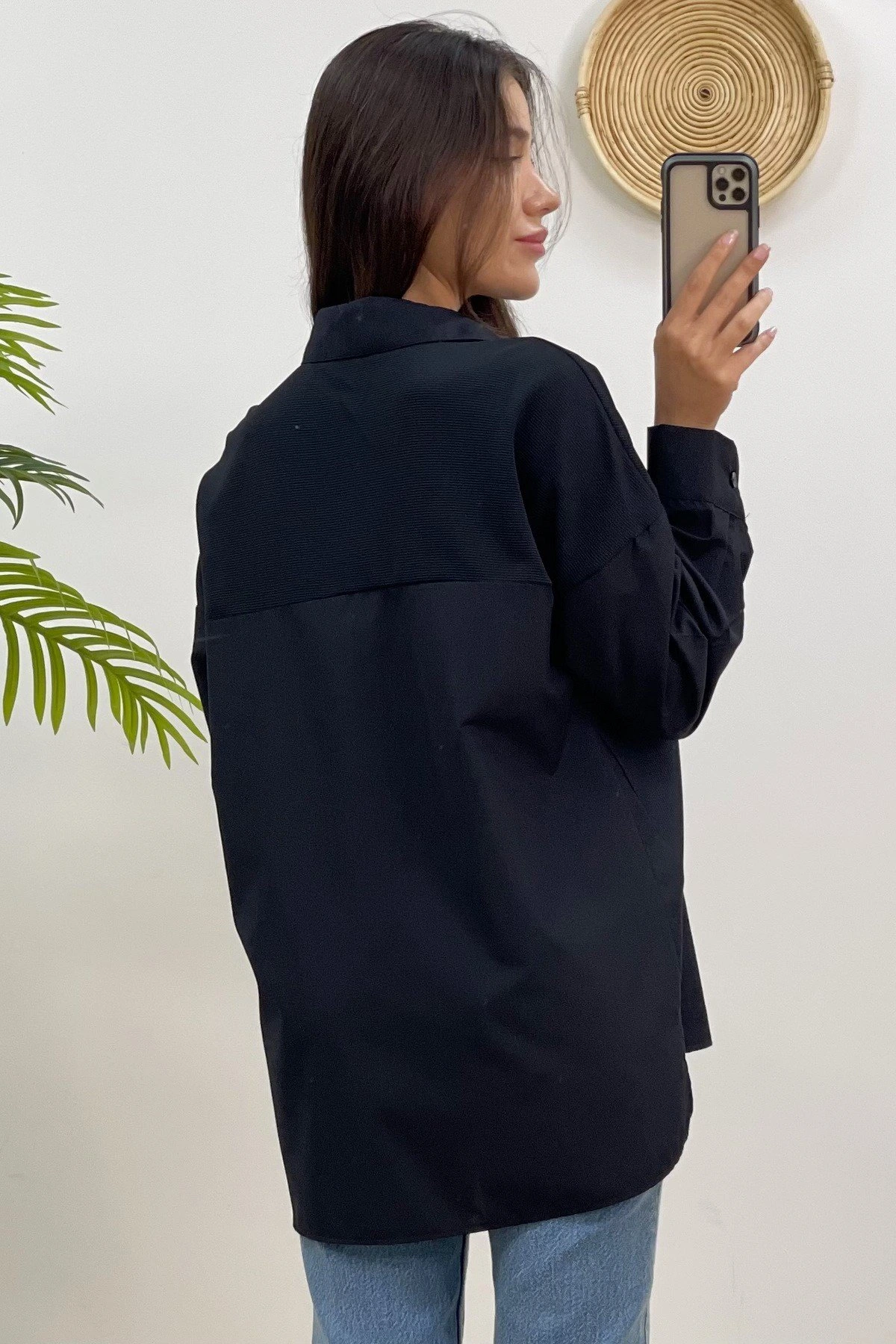 ÖRME DETAY TEK CEP GÖMLEK – SİYAH