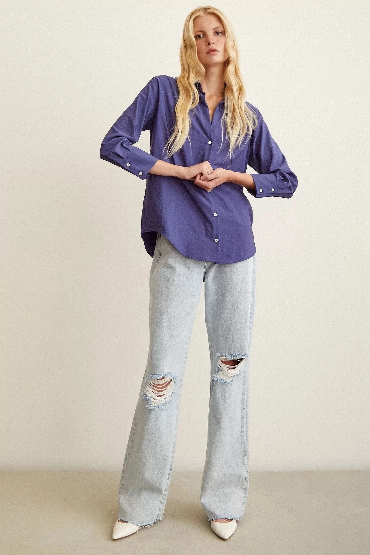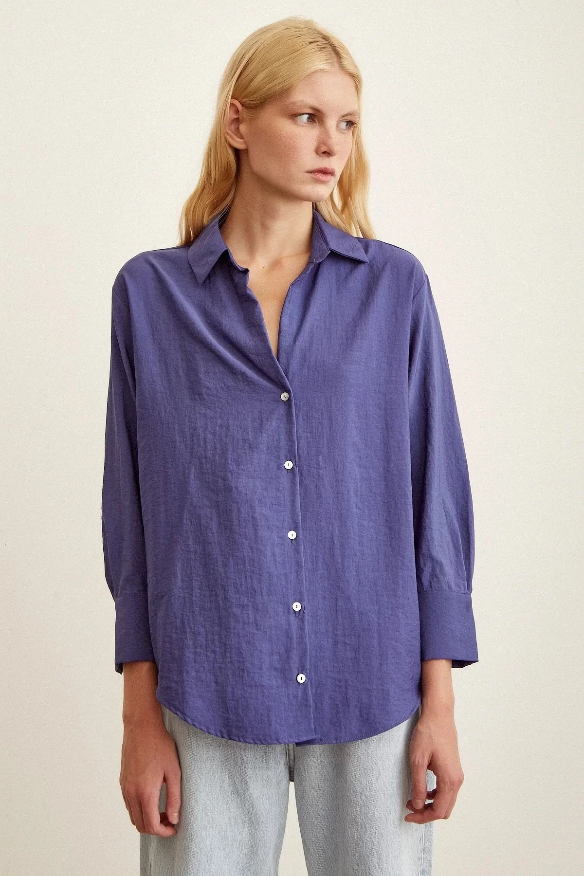 OVERSİZE KLASİK SATEN VİSKON GÖMLEK – LACİVERT