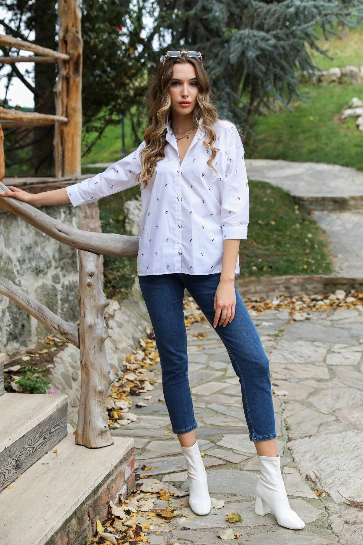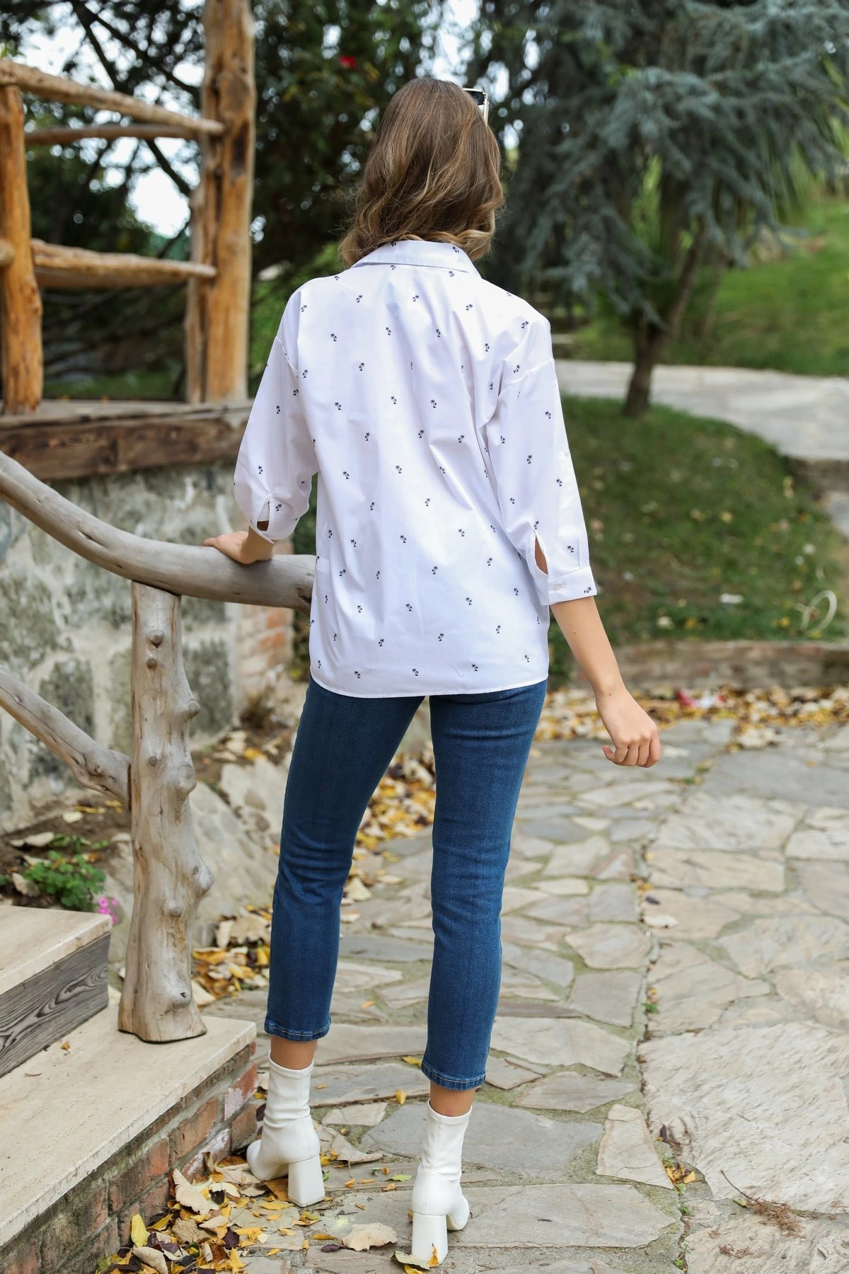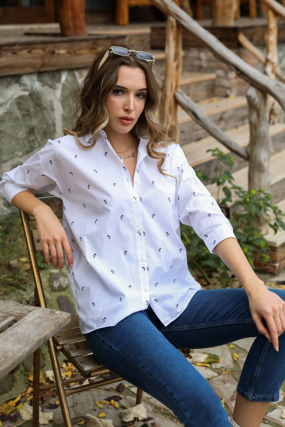 PALMİYE DESEN GÖMLEK – BEYAZ