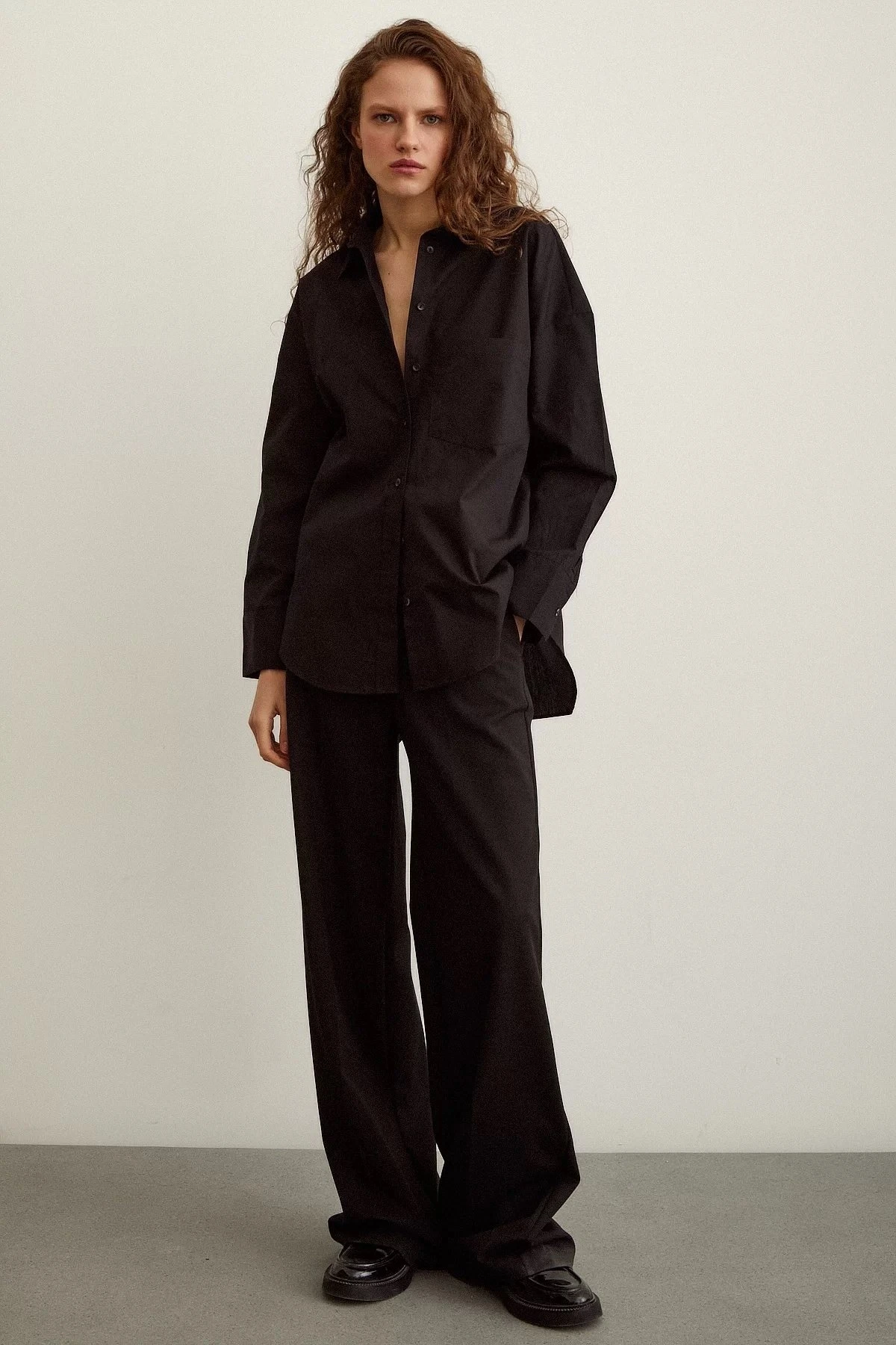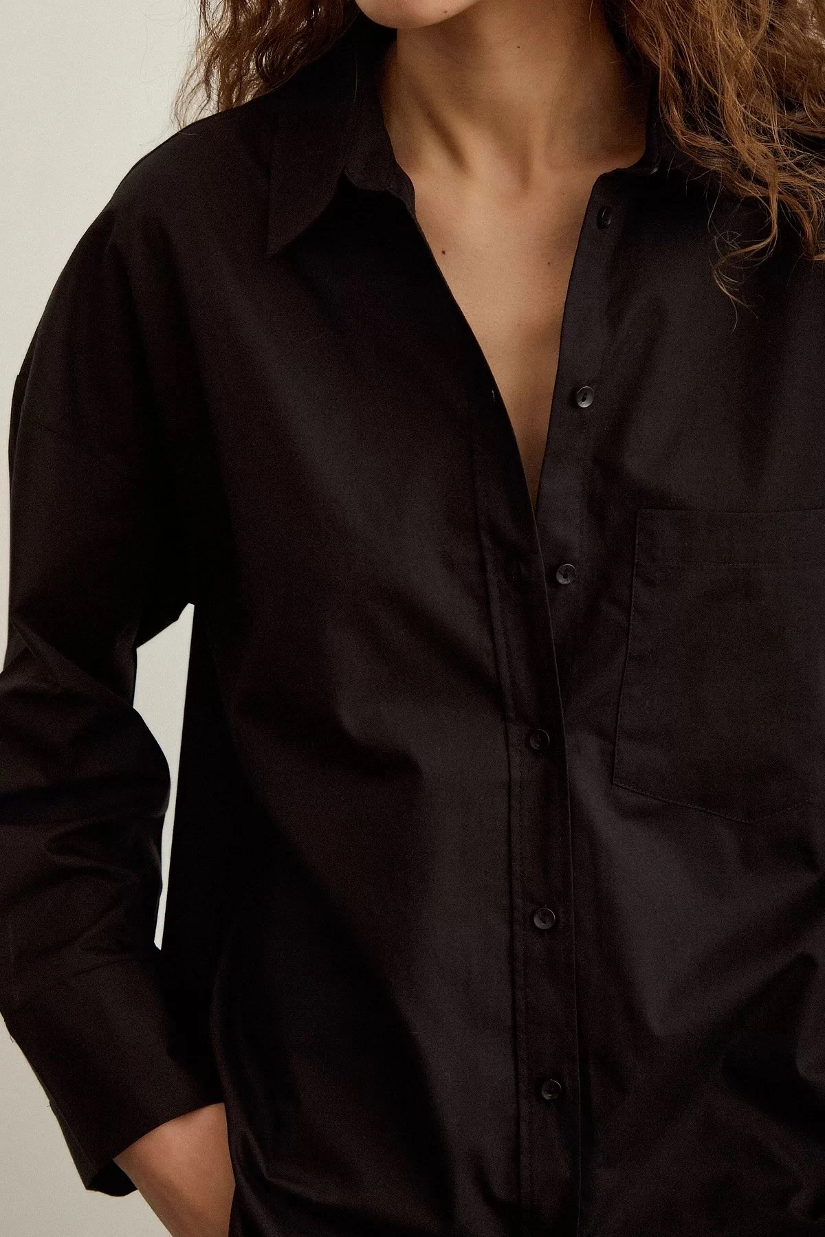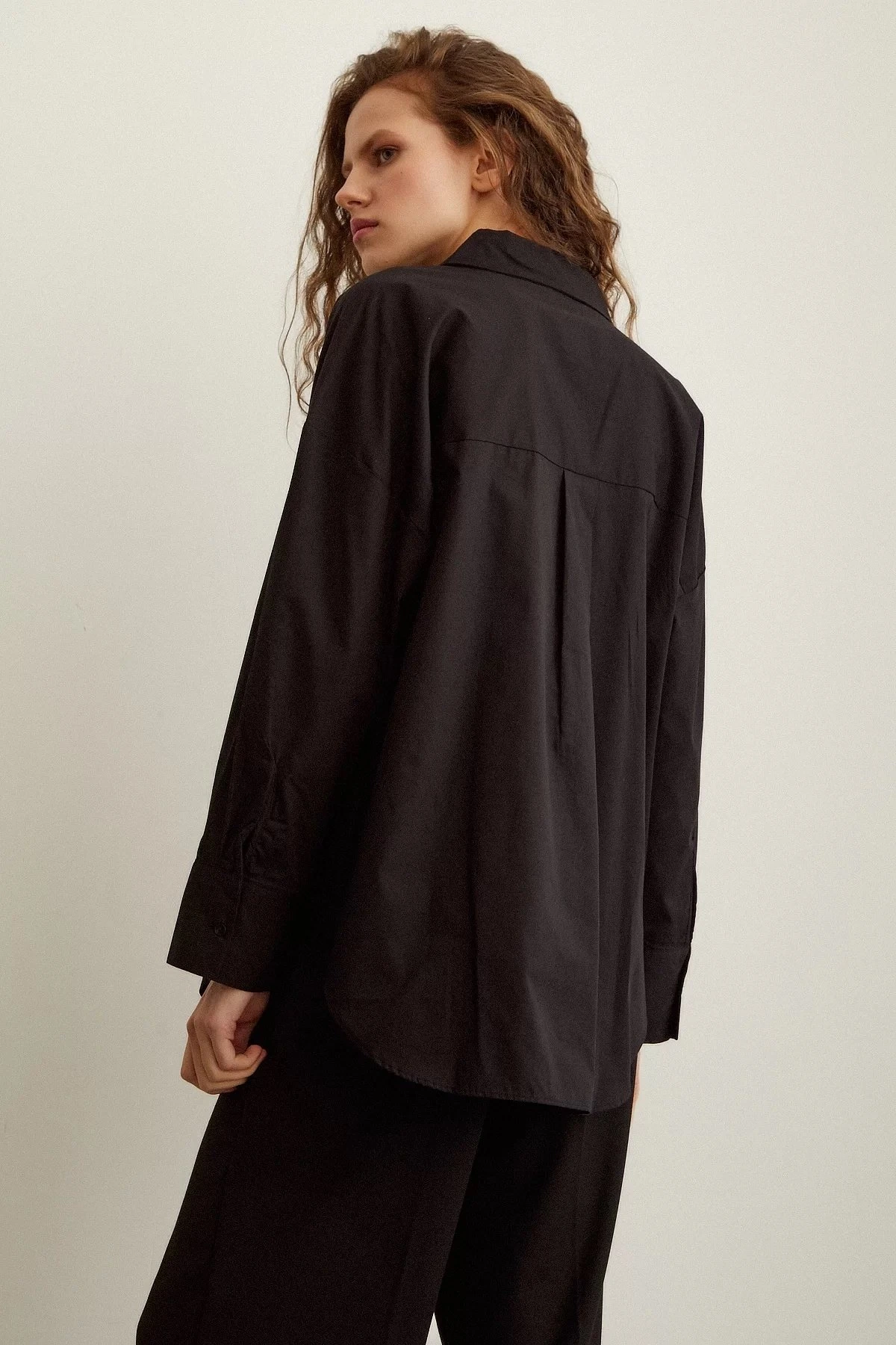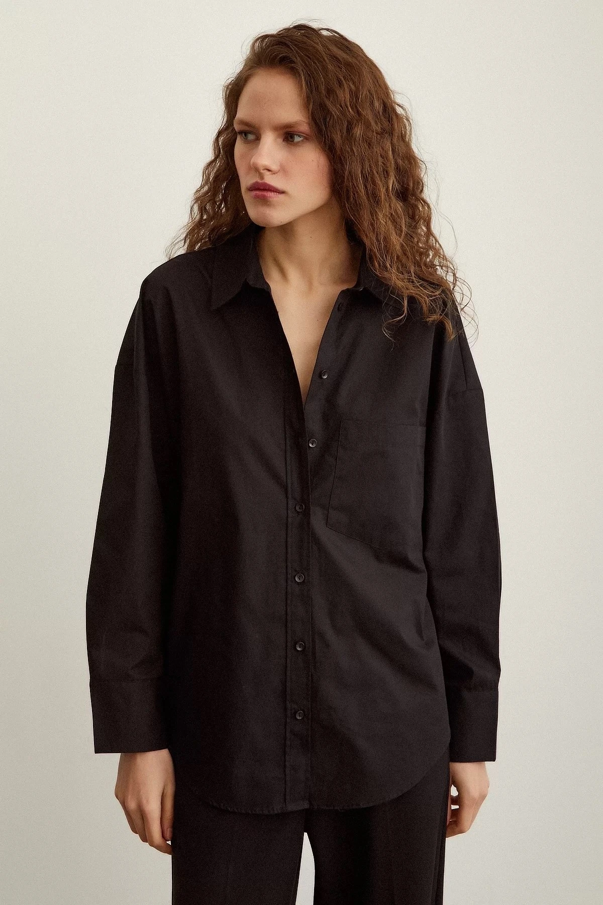 PAMUKLU ETEĞİ OVAL TEK CEP GÖMLEK – SİYAH