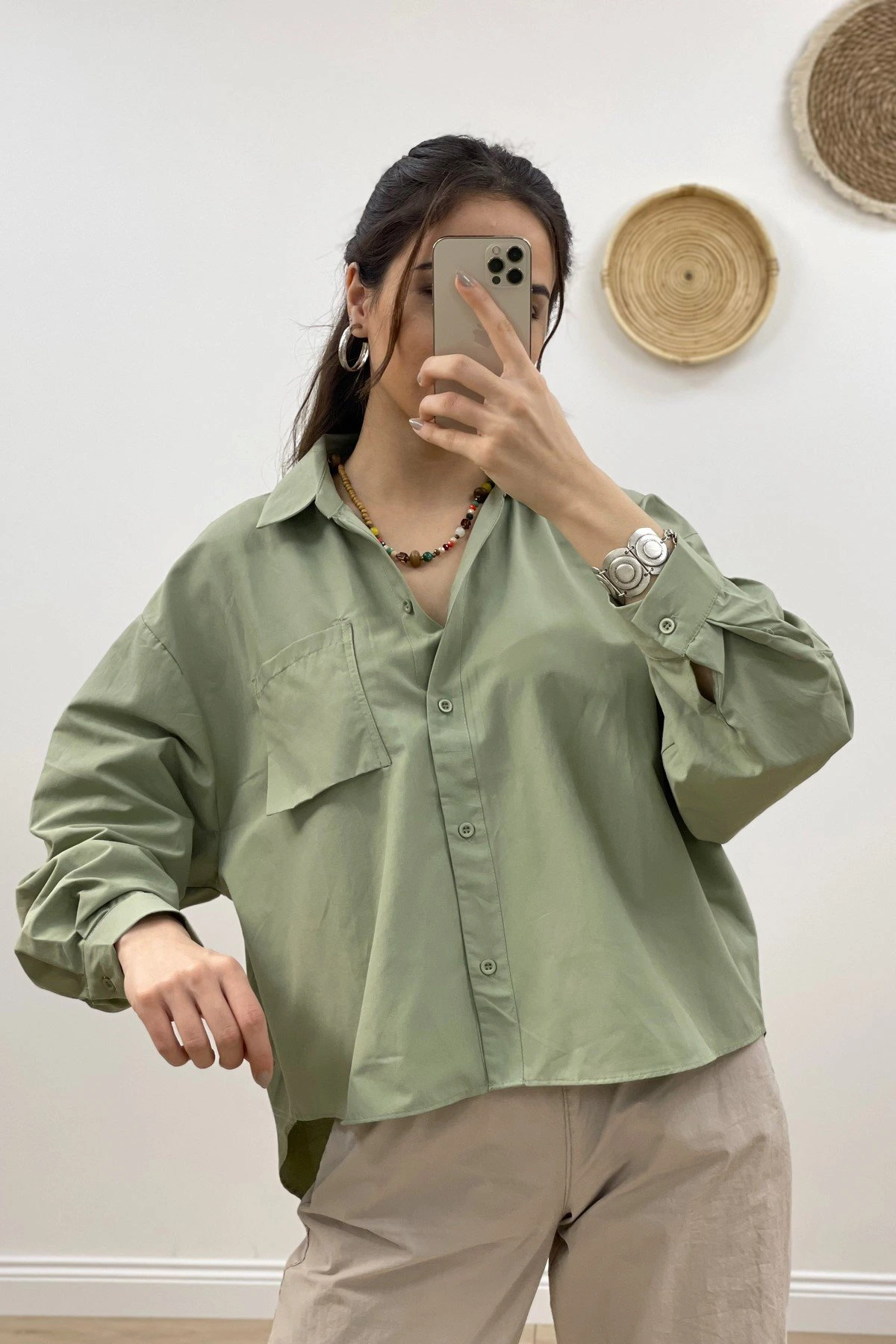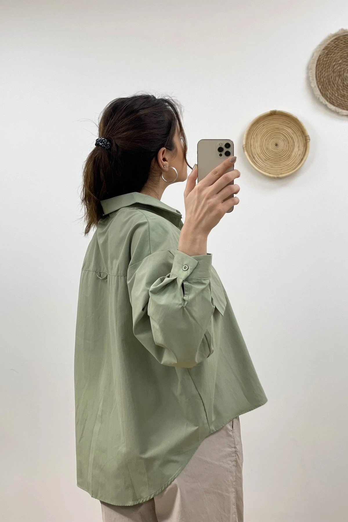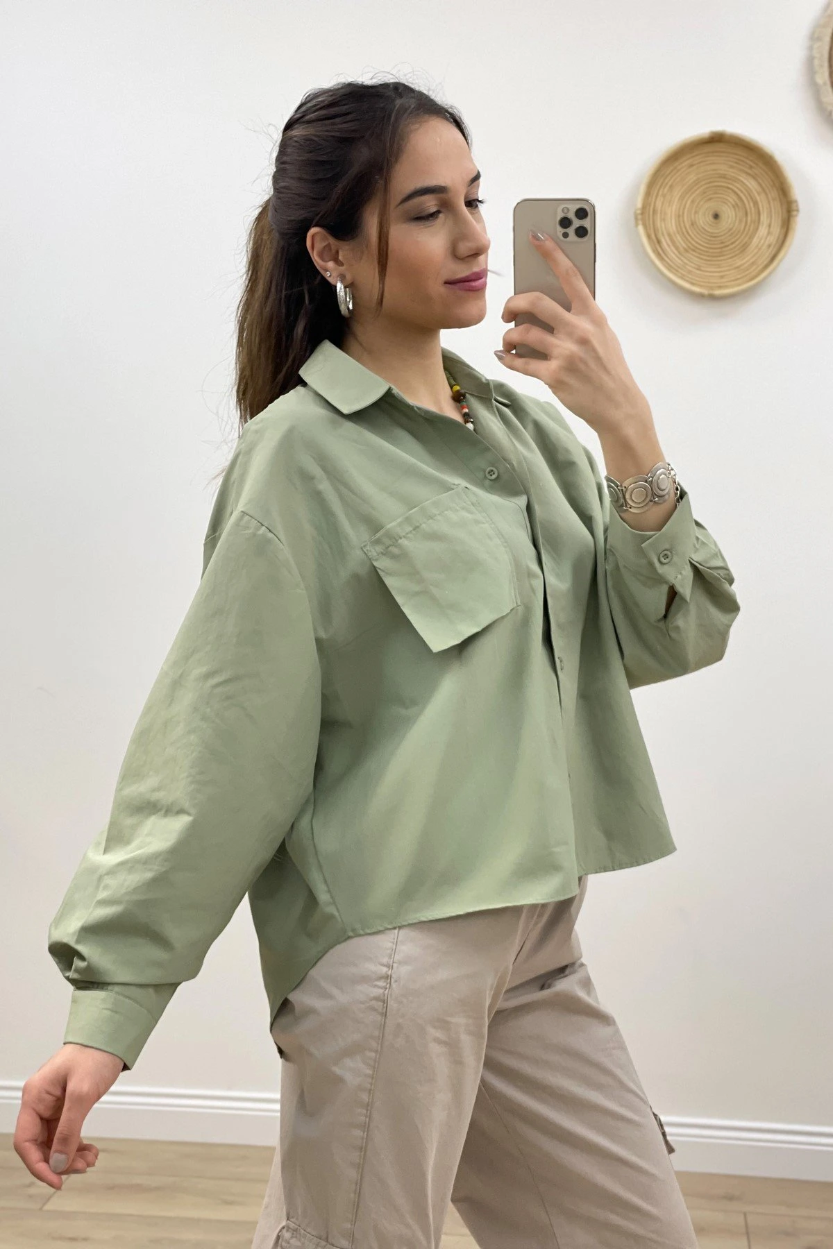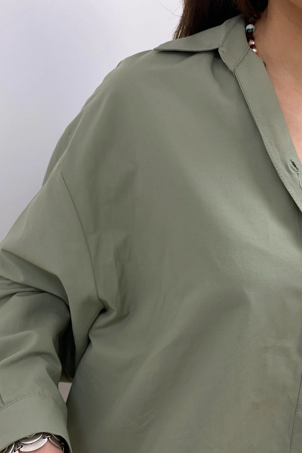 PARÇA CEP ARKA UZUN GÖMLEK – HAKİ