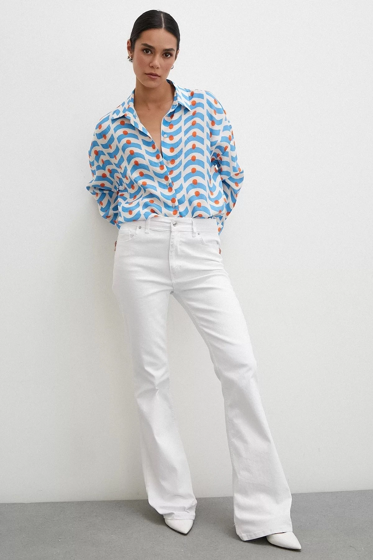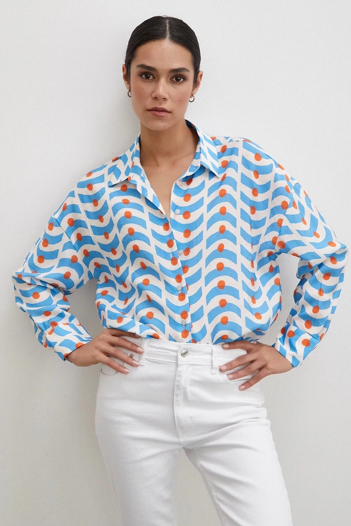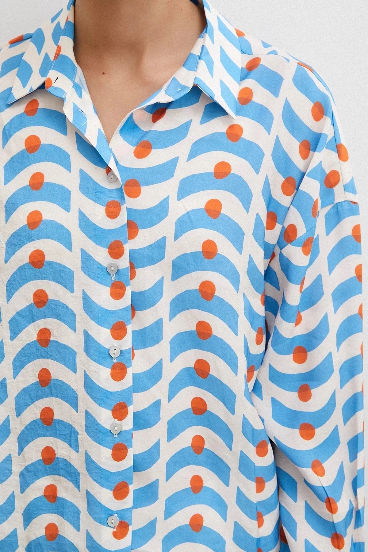 PUANLI DESEN MODAL GÖMLEK – MAVİ