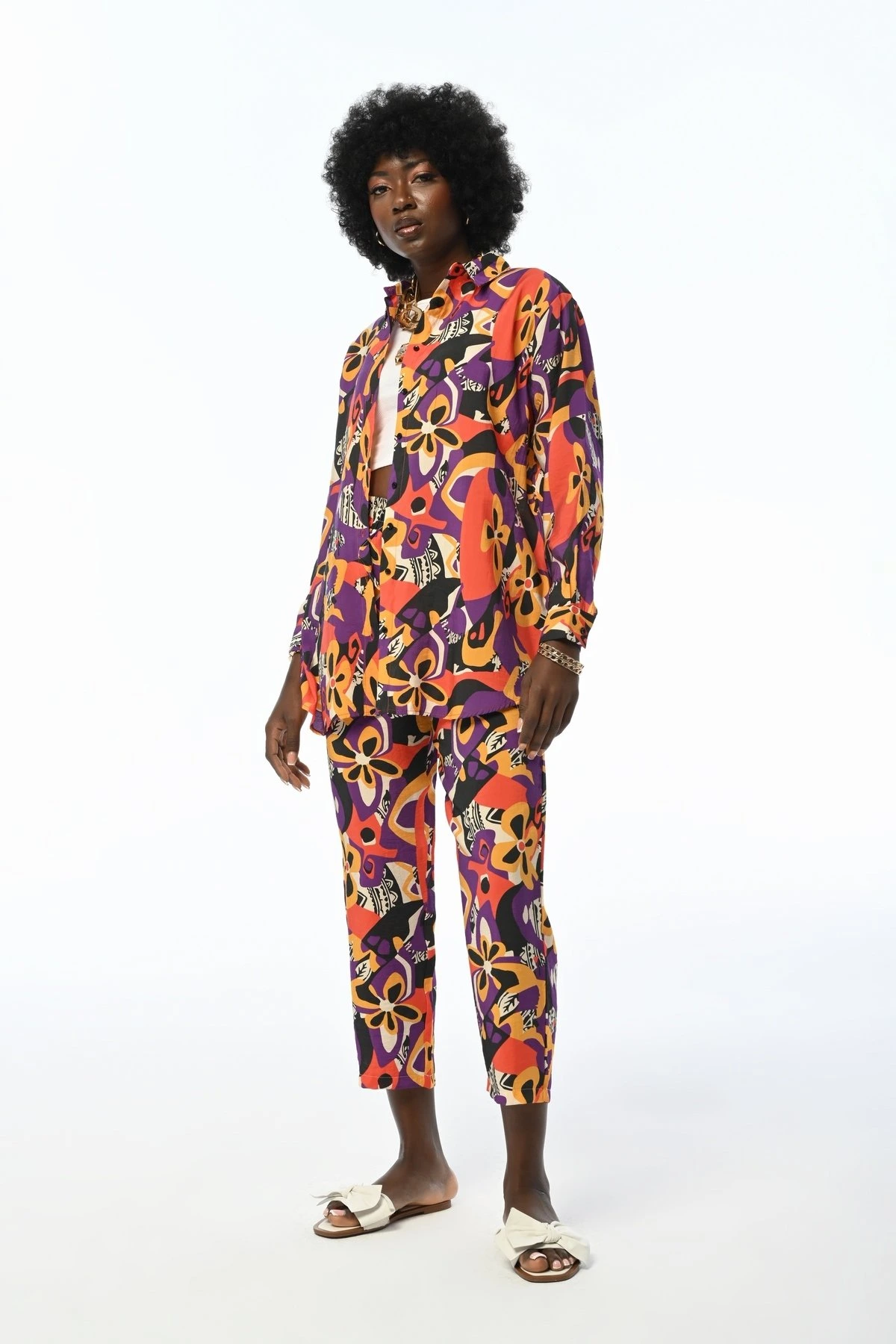 RENKLİ DESEN MODAL SALAŞ GÖMLEK – RENKLİ