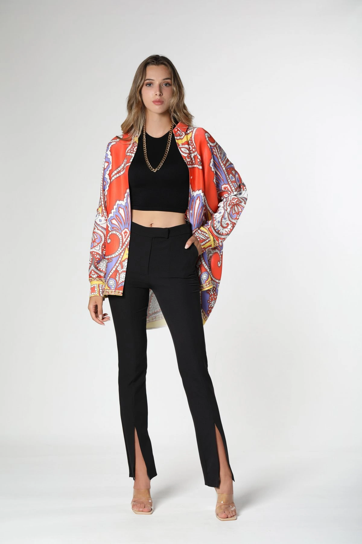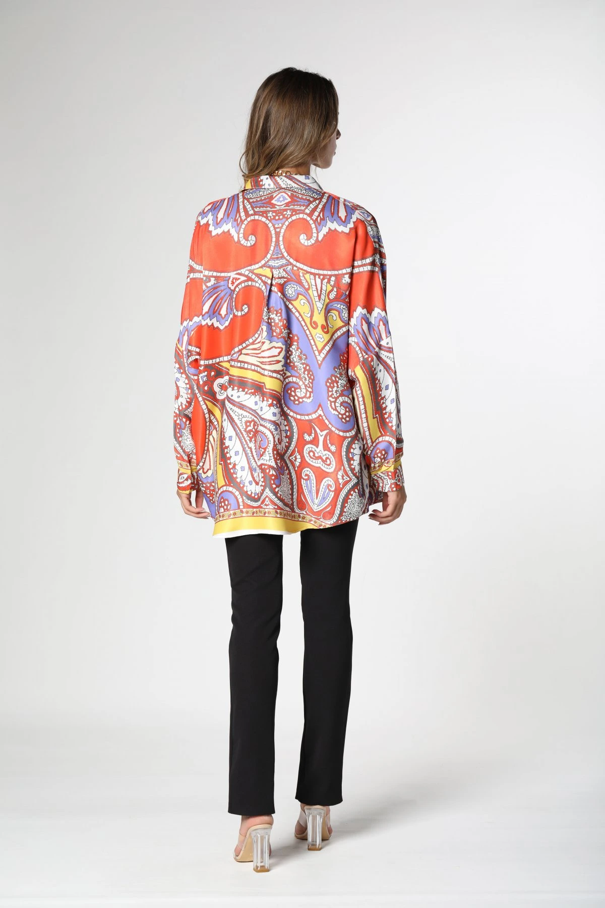 ŞAL DESEN RENKLİ SATEN GÖMLEK – RENKLİ COLOR-12