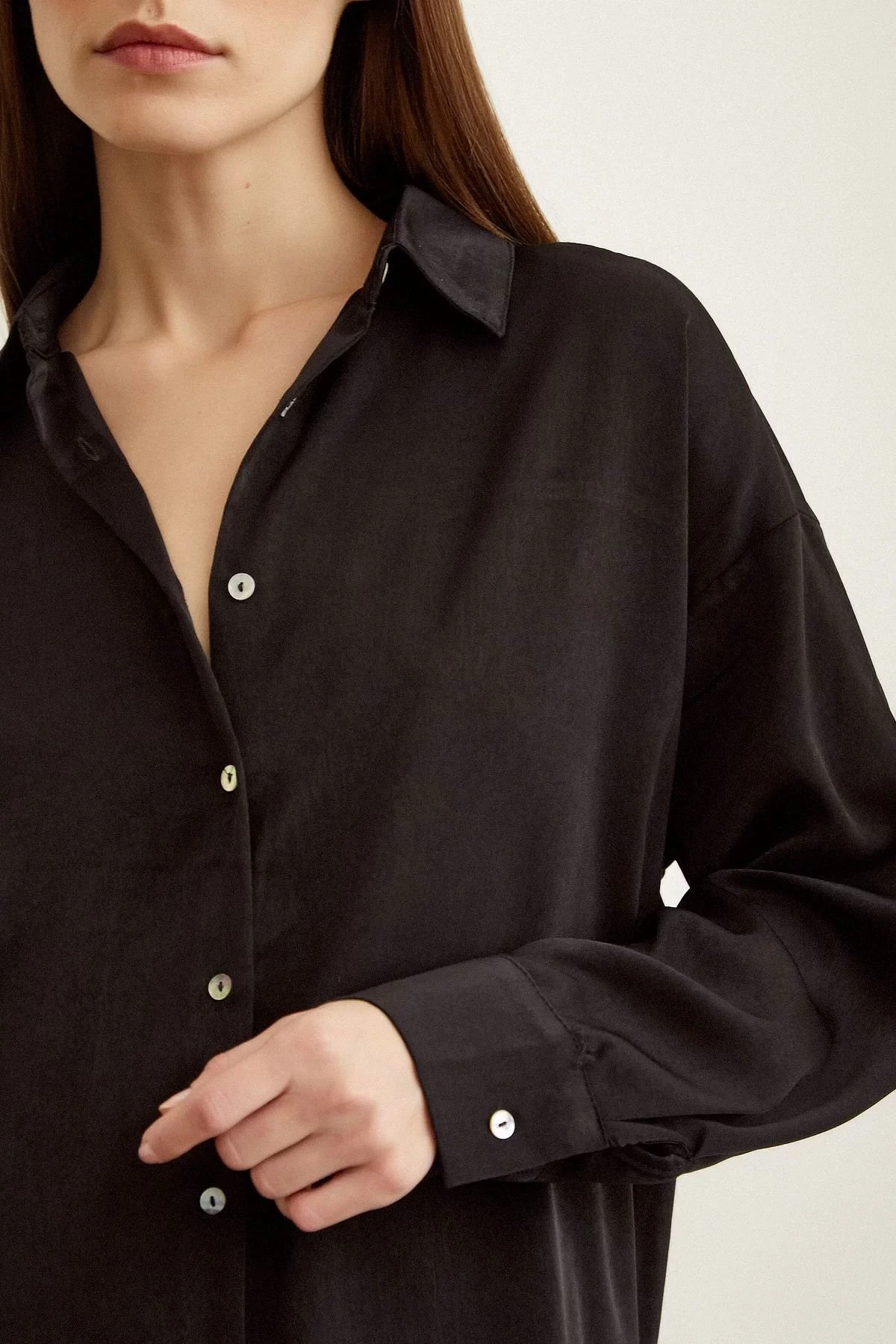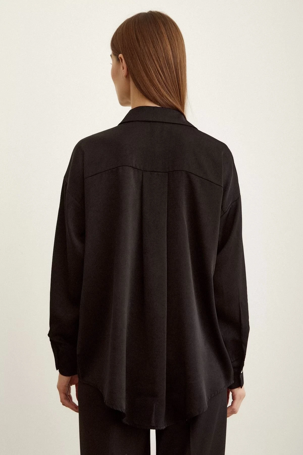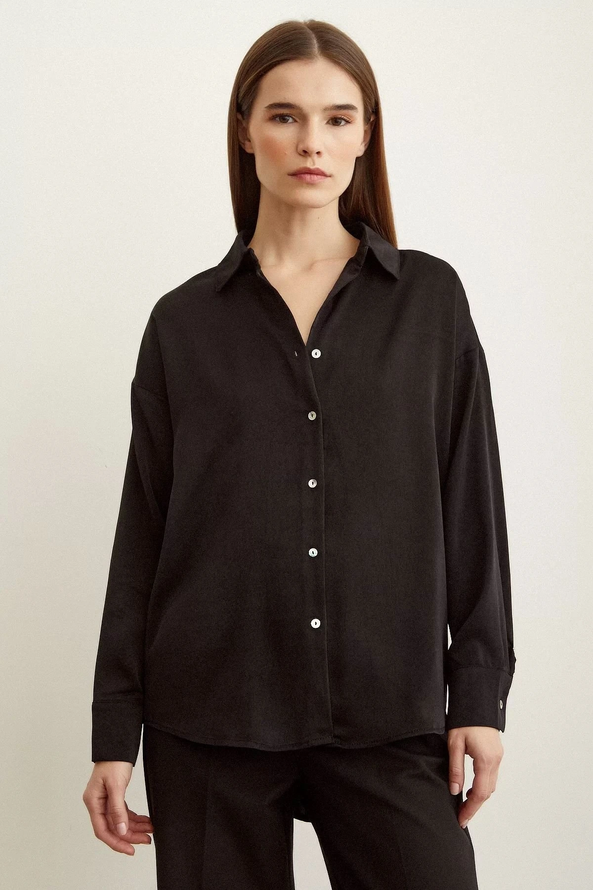 SEDEF DÜĞME BASİC SATEN GÖMLEK – SİYAH