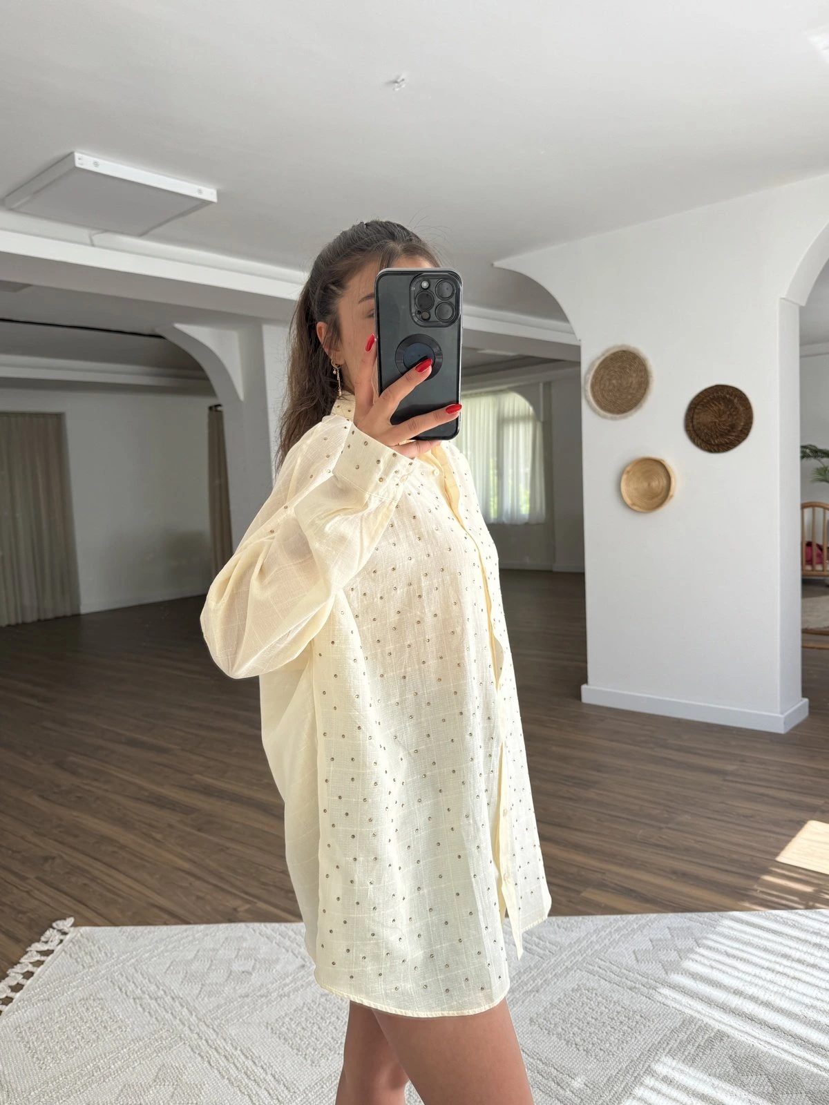 SERPME TAŞ İNCE PAMUK SALAŞ GÖMLEK – AÇIK SARI