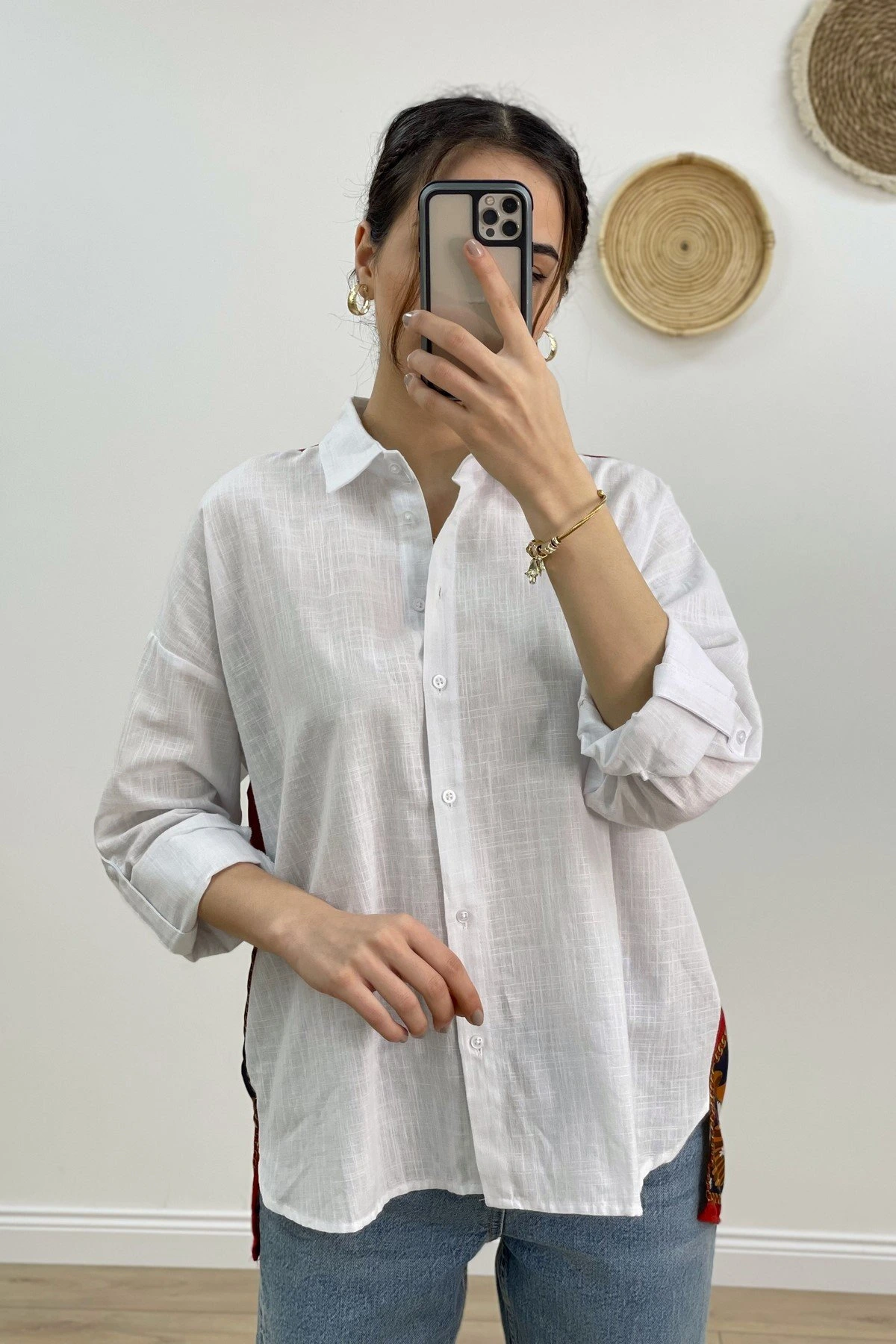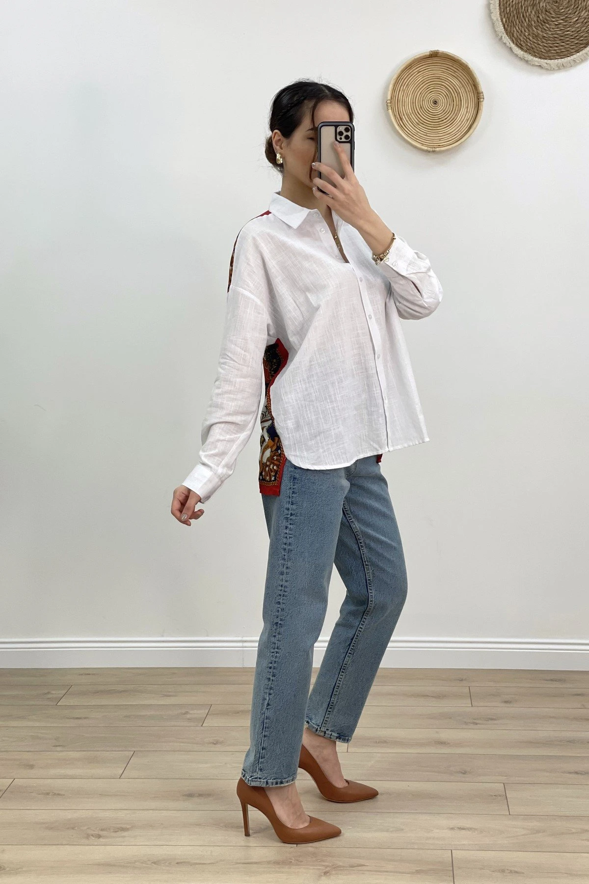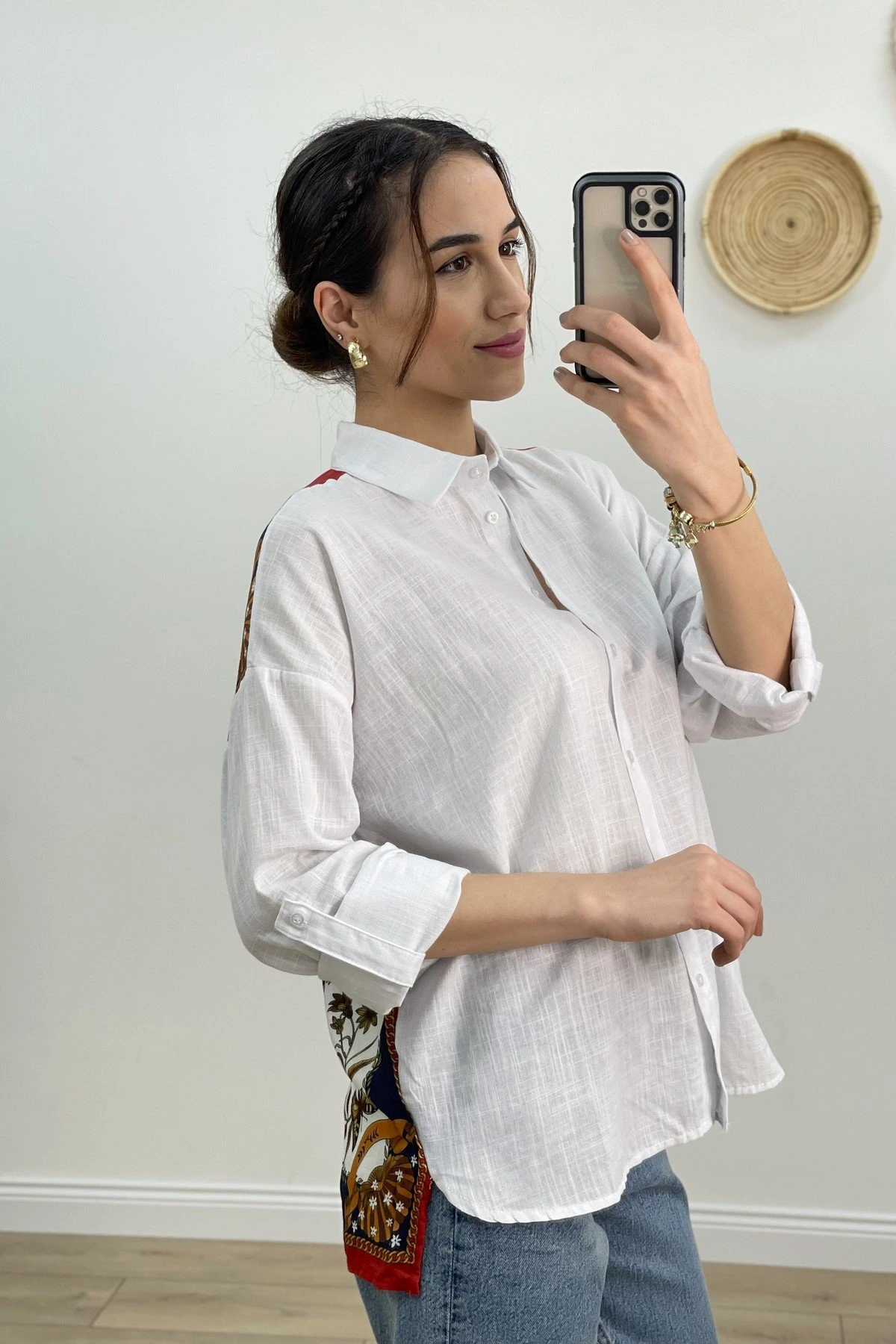 SIRT PANO ŞAL DESEN PAMUK GÖMLEK – BEYAZ