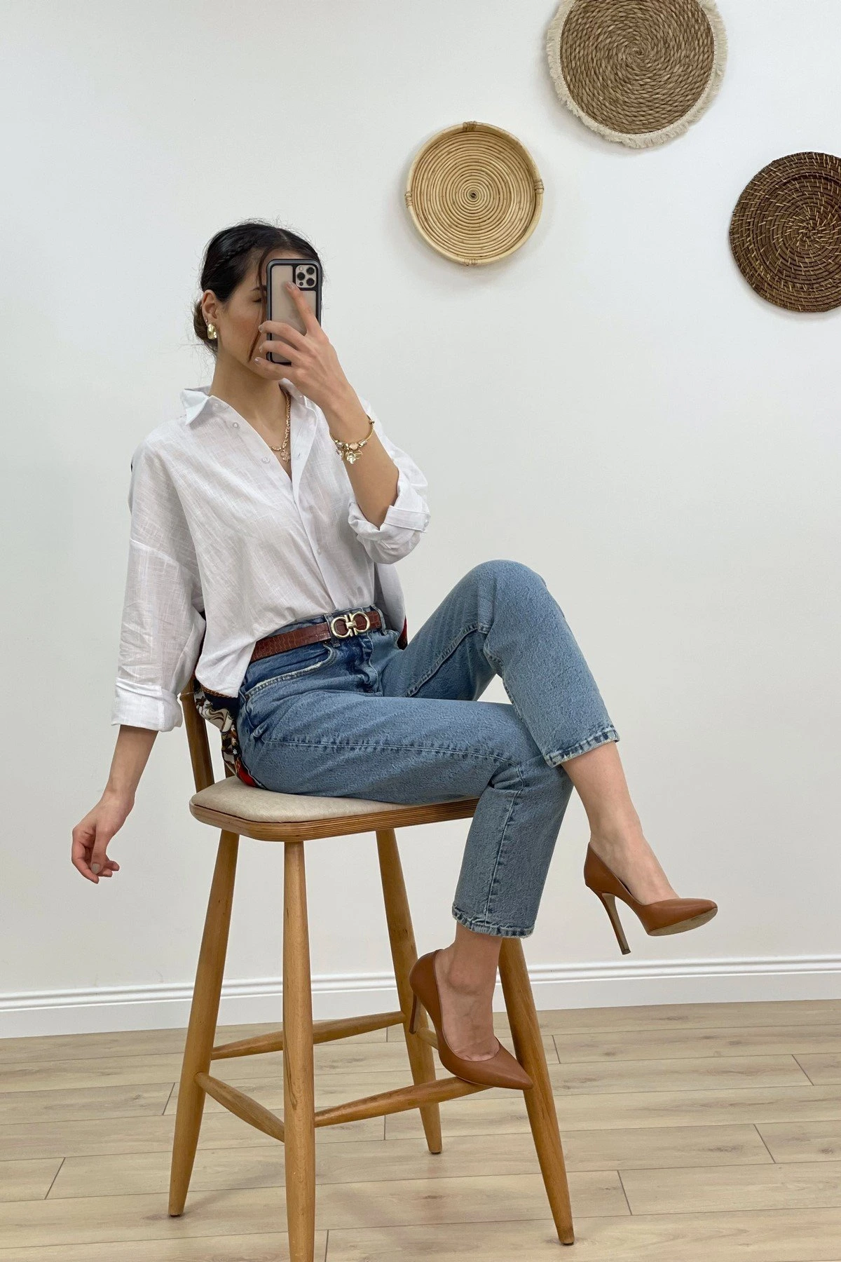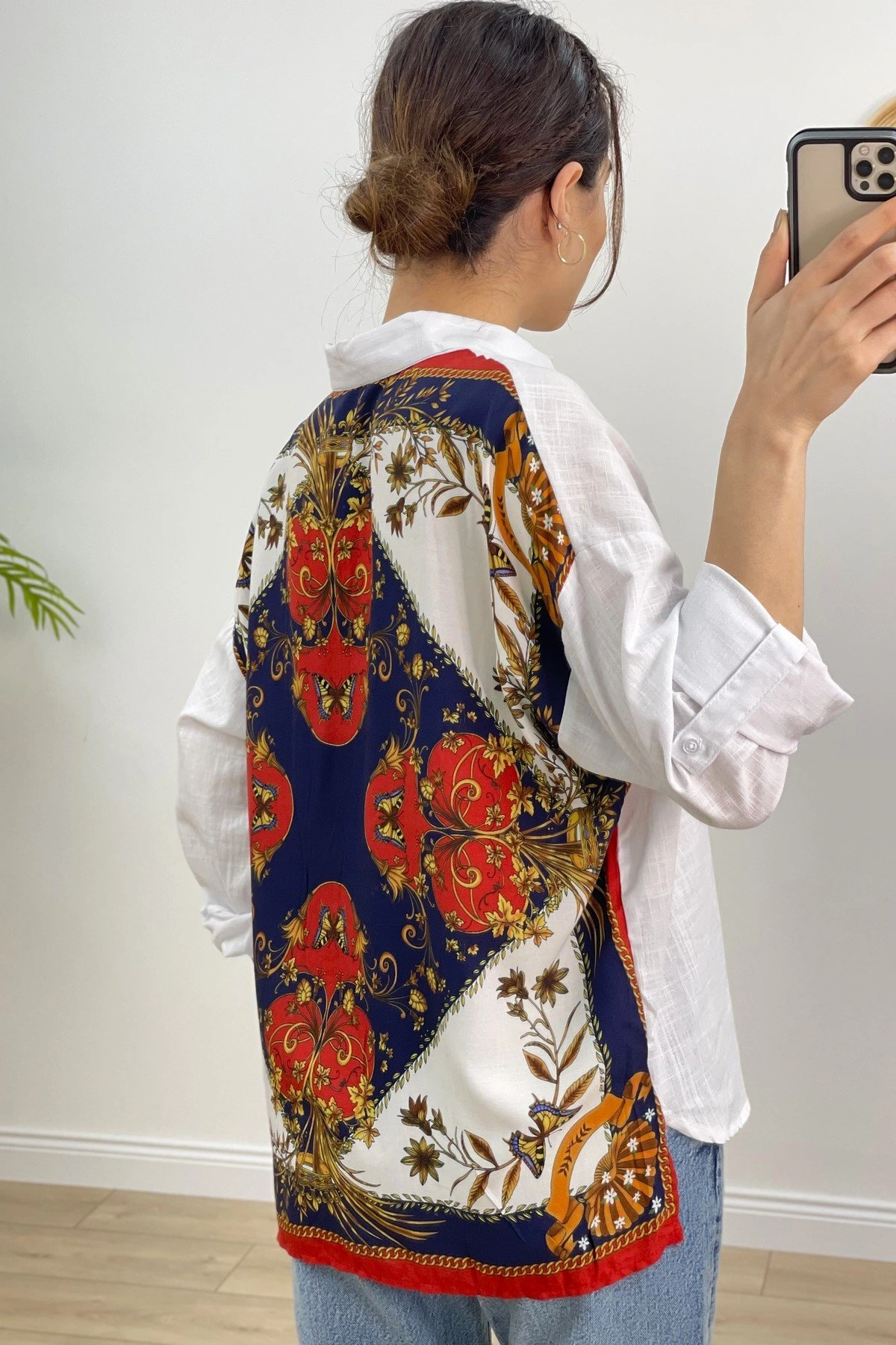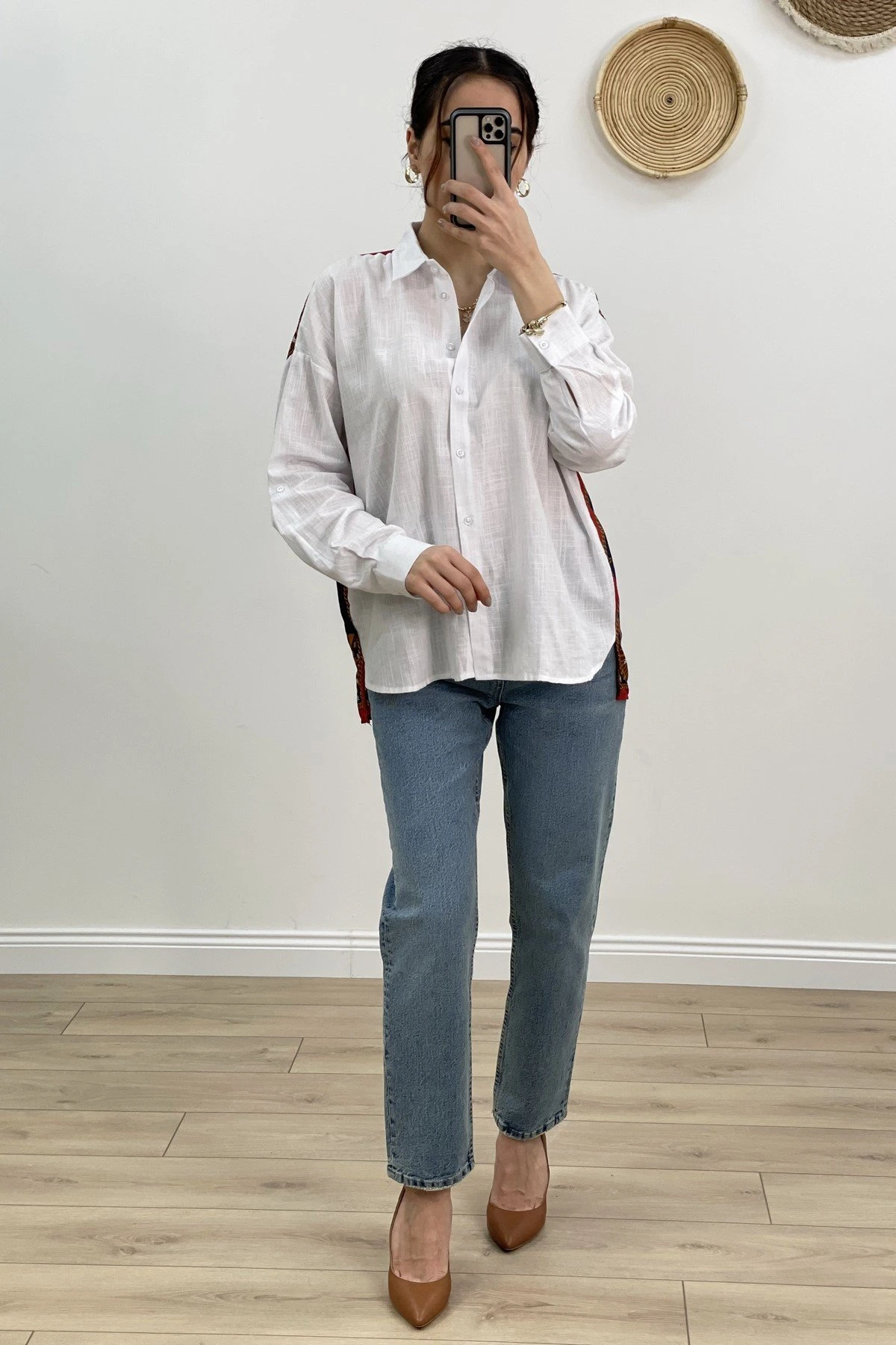 SIRT PANO ŞAL DESEN PAMUK GÖMLEK – BEYAZ