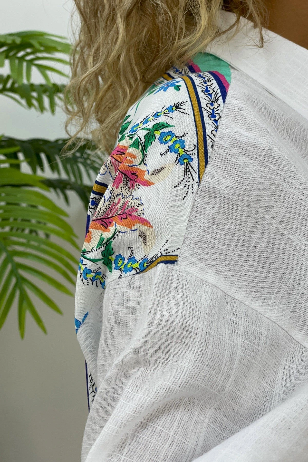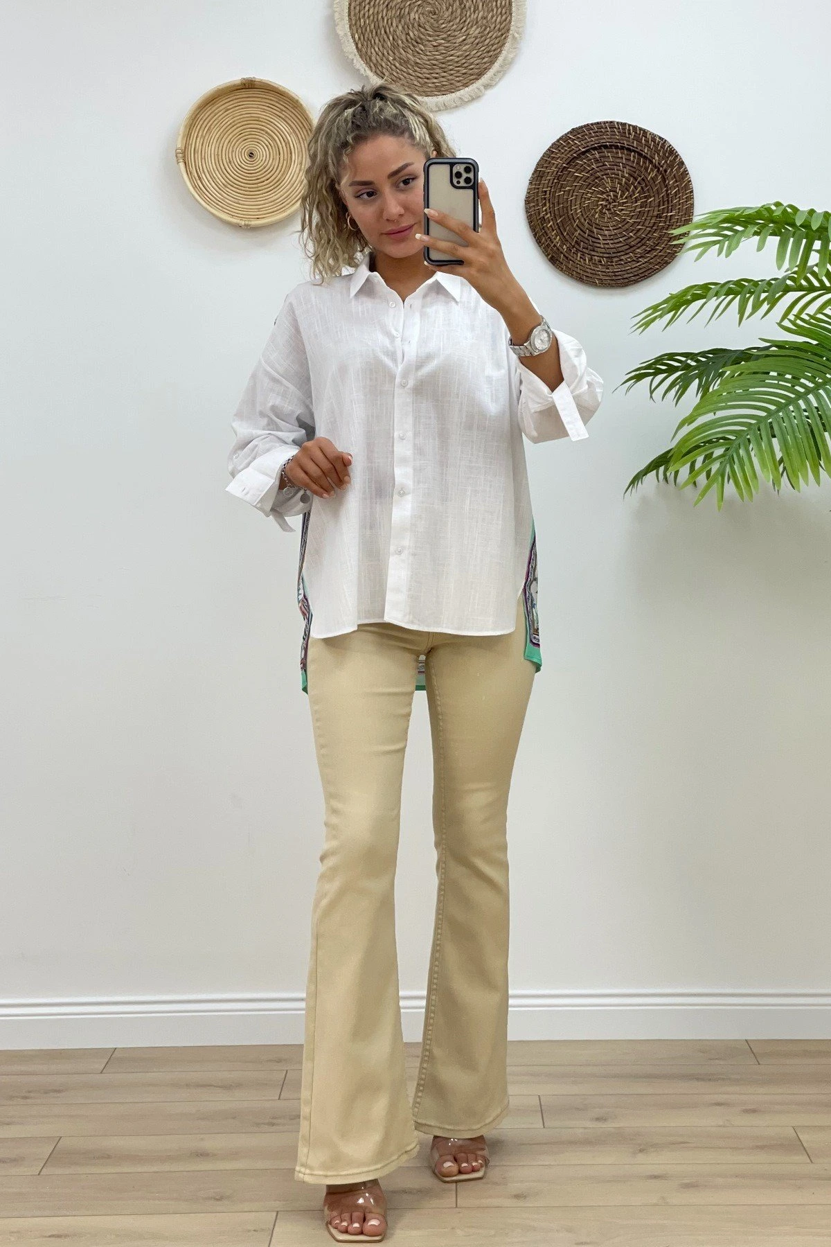SIRT RENKLİ PANO UZUN KOL PAMUK GÖMLEK – BEYAZ