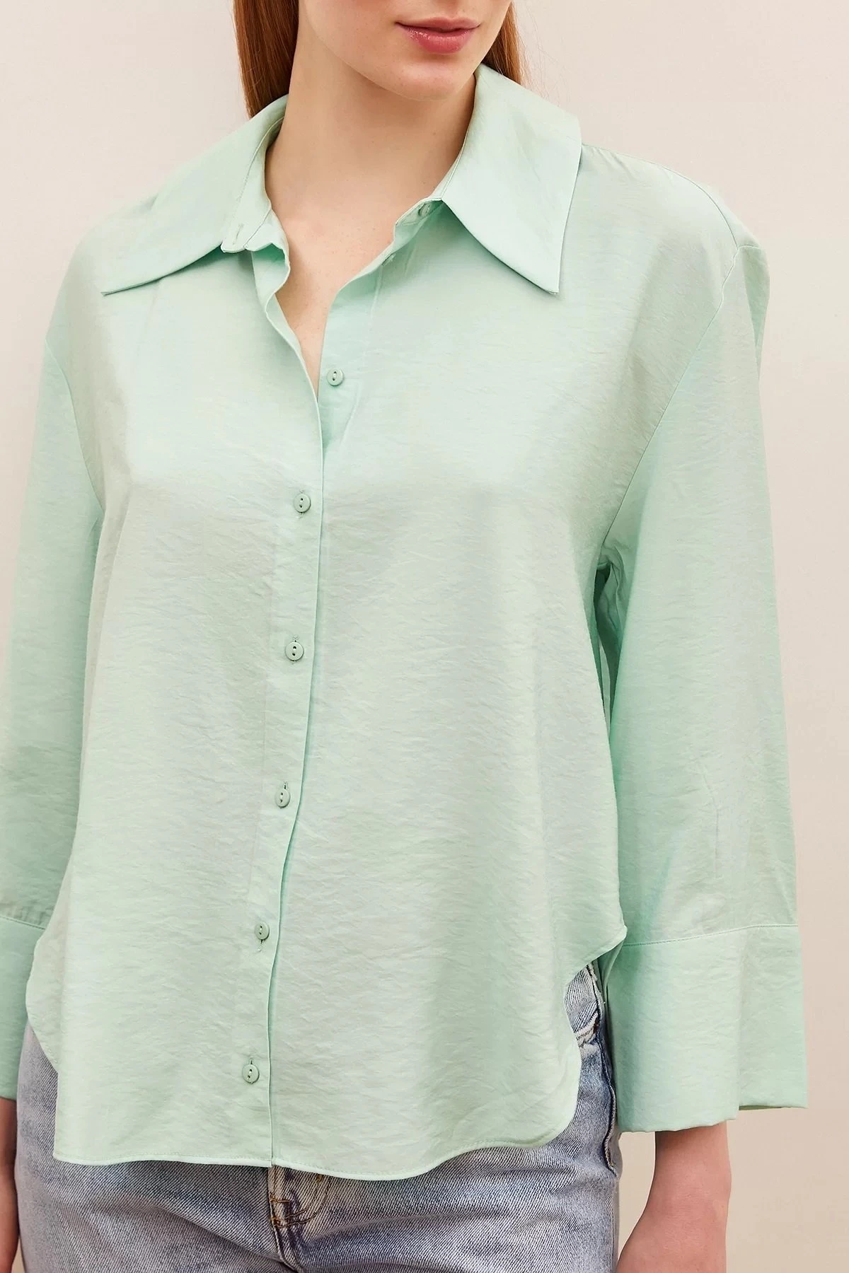 SOFİA SATEN GÖMLEK – AÇIK YEŞİL