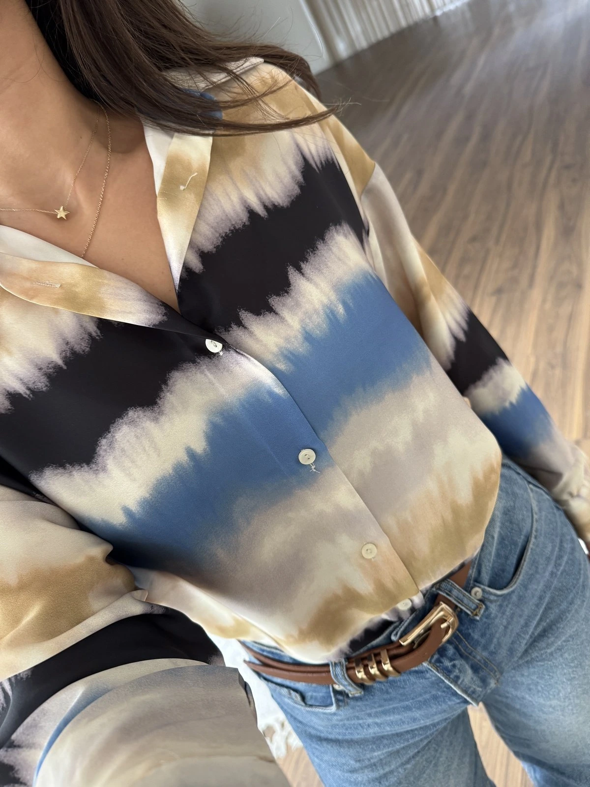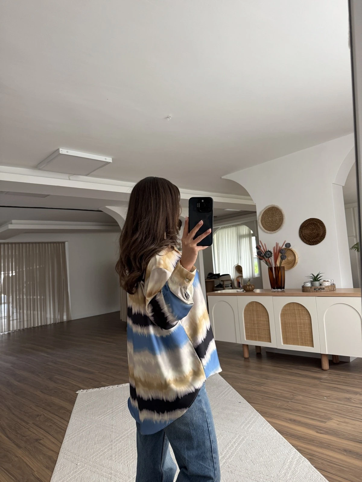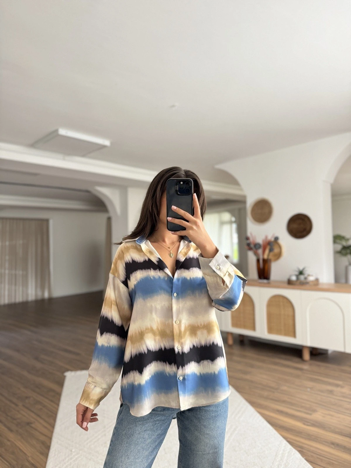 SULU BOYA DESEN SATEN SALAŞ GÖMLEK – MAVİ