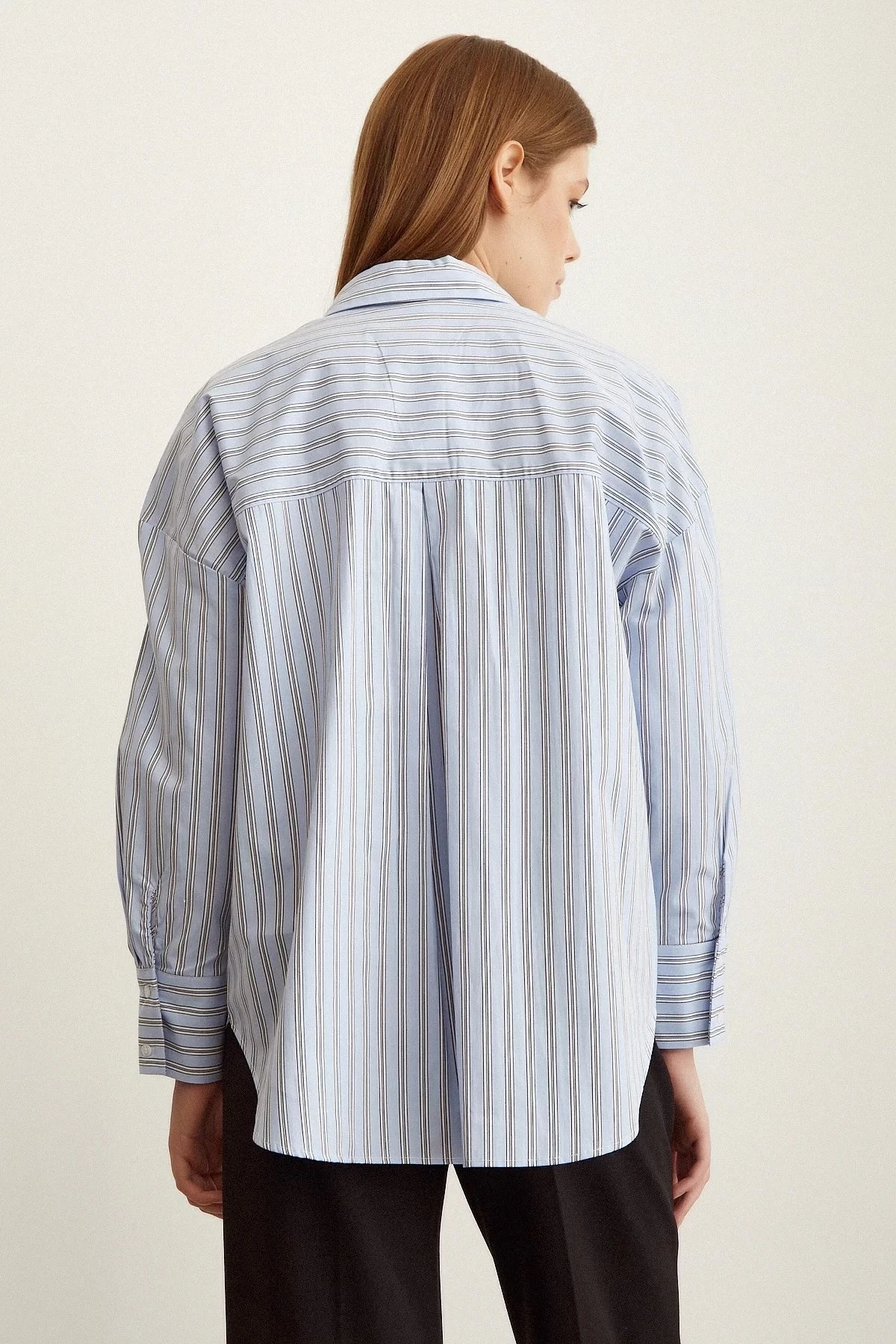 TEK CEP ÇİZGİLİ POPLİN GÖMLEK – MAVİ