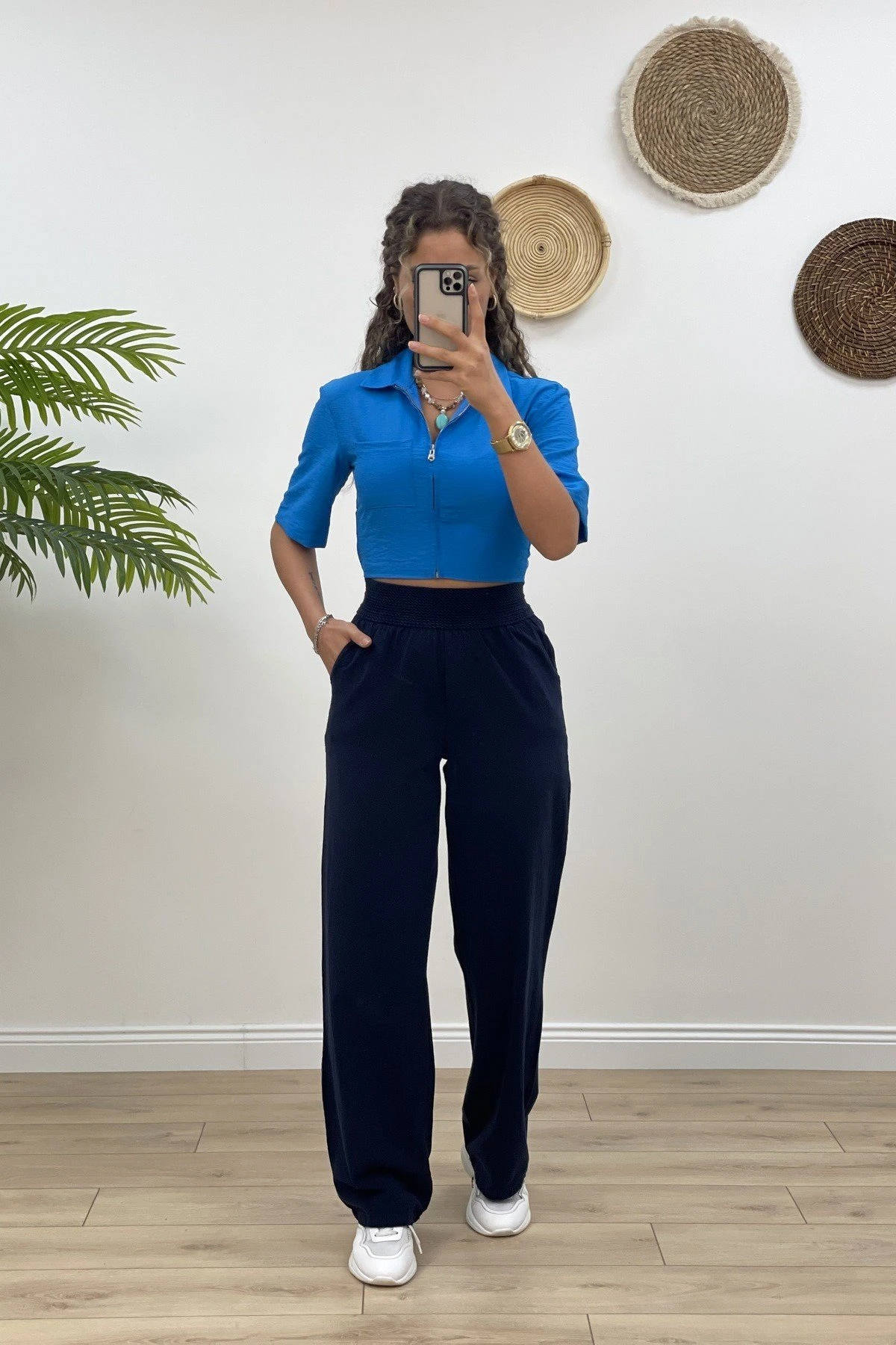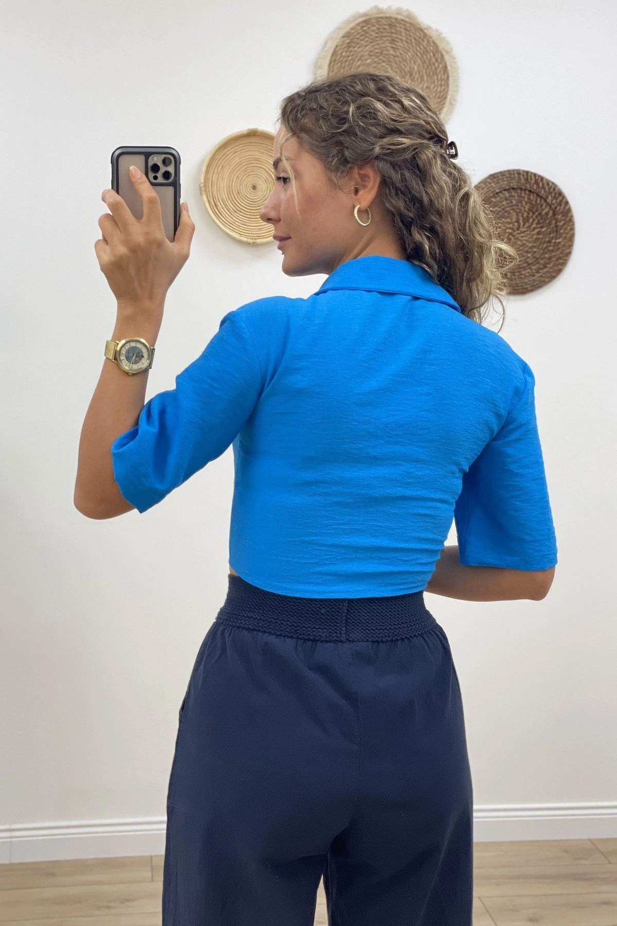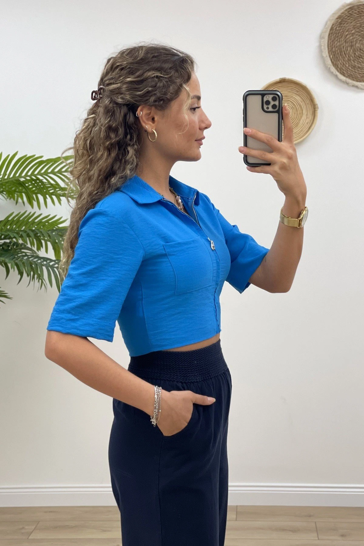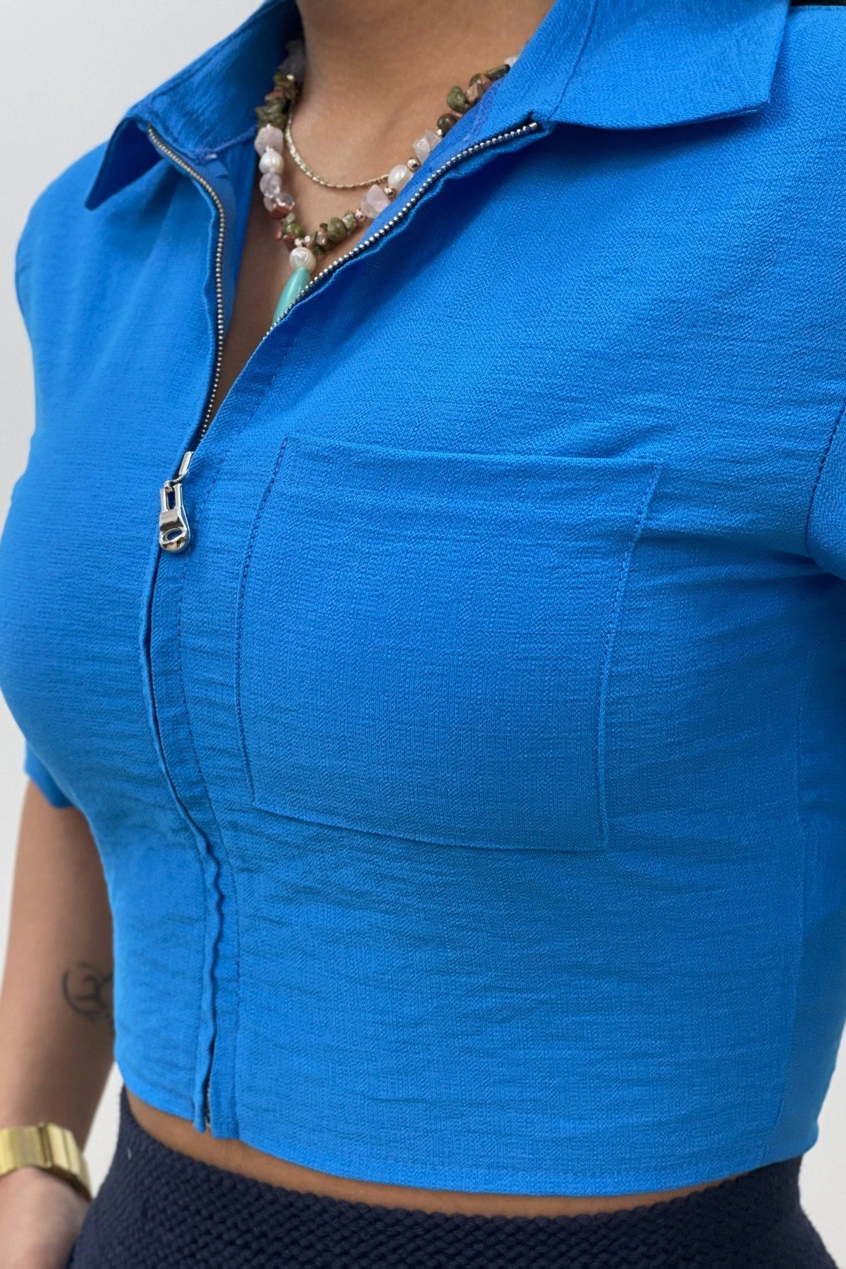 TEK CEP FERMUARLI CROP GÖMLEK – GÖK MAVİ
