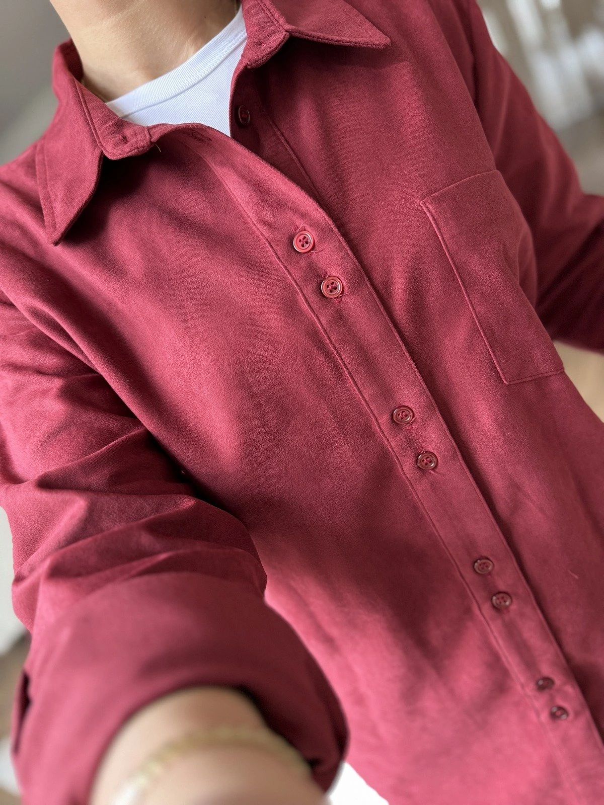 TEK CEP KUŞAKLI SÜET UZUN GÖMLEK – BORDO