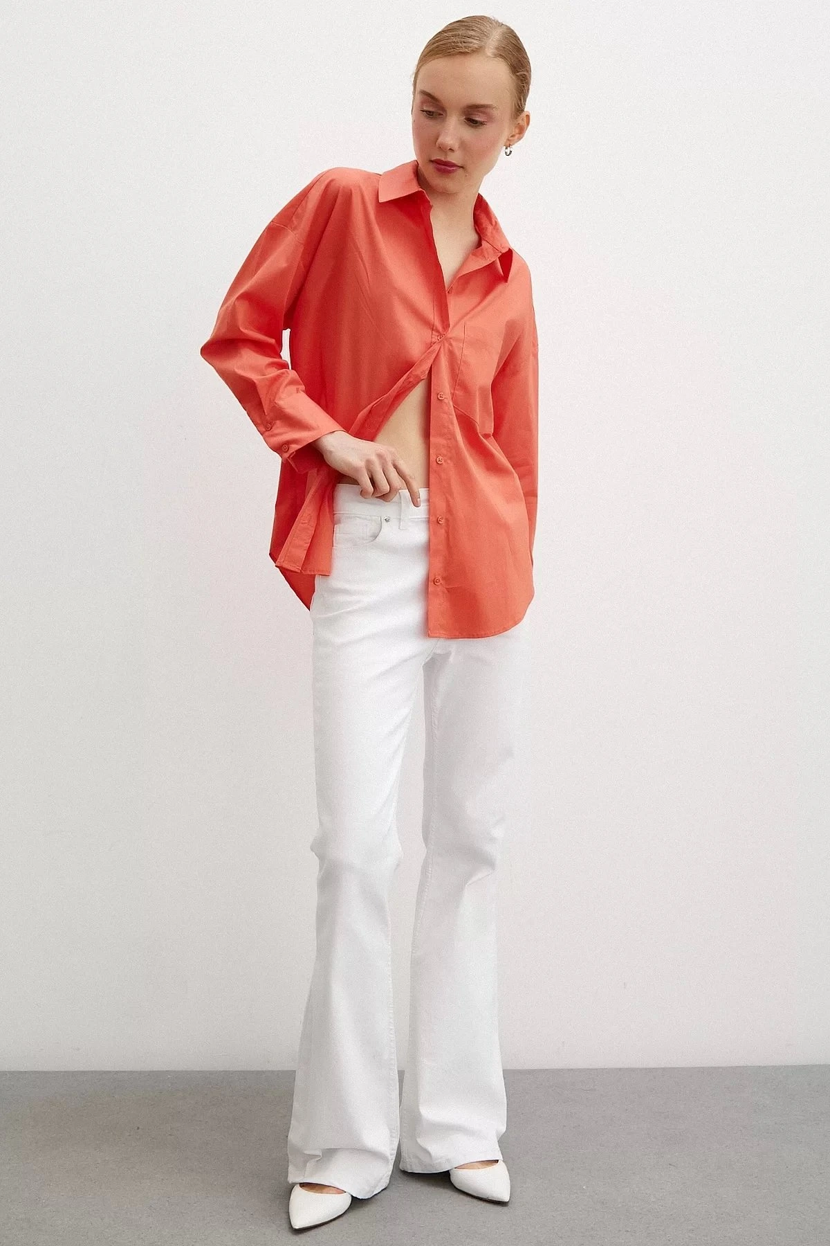 TEK CEP LİKRALI PAMUK BASİC GÖMLEK – ORANGE