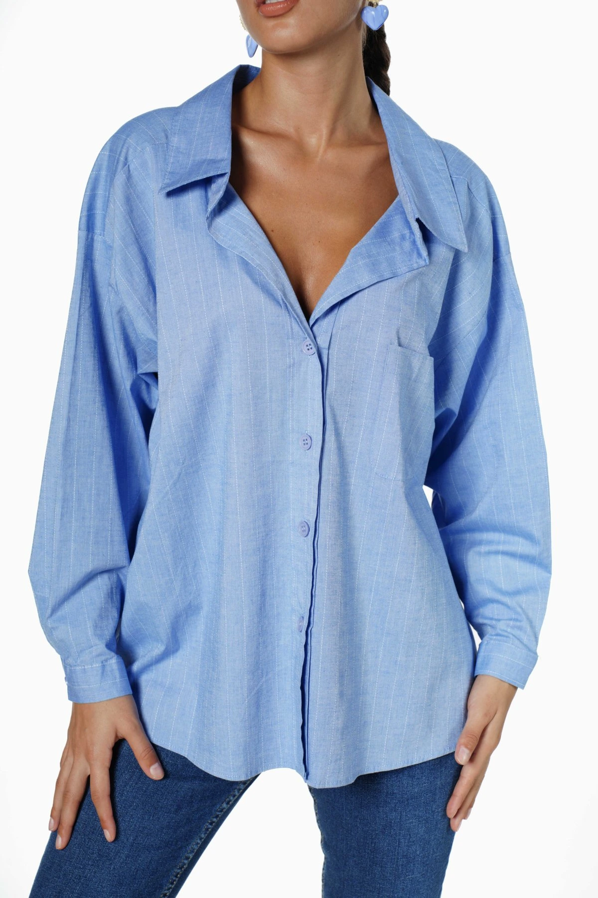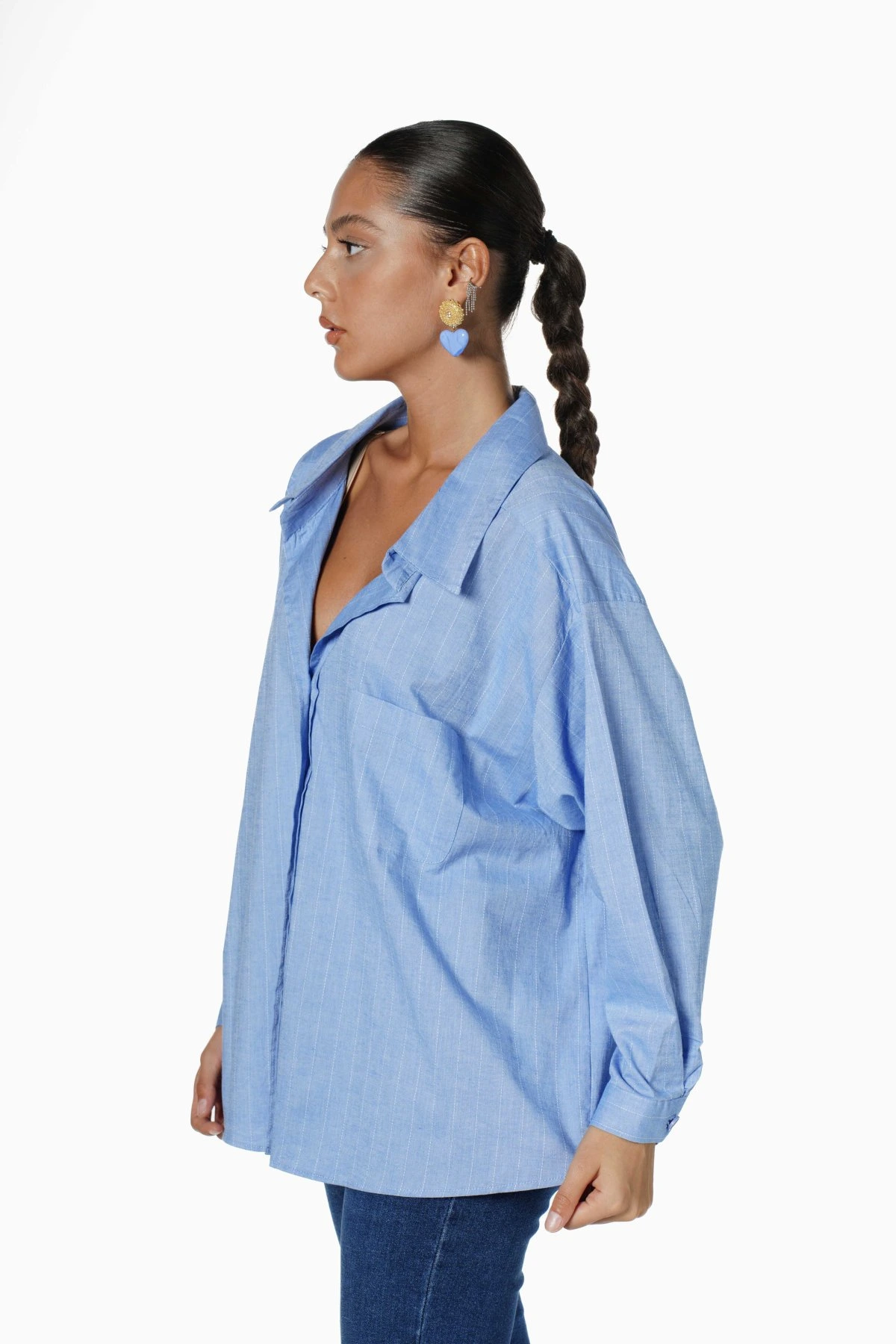 TEK CEP SALAŞ ARKA A PİLE PAMUK GÖMLEK – MAVİ BEYAZ