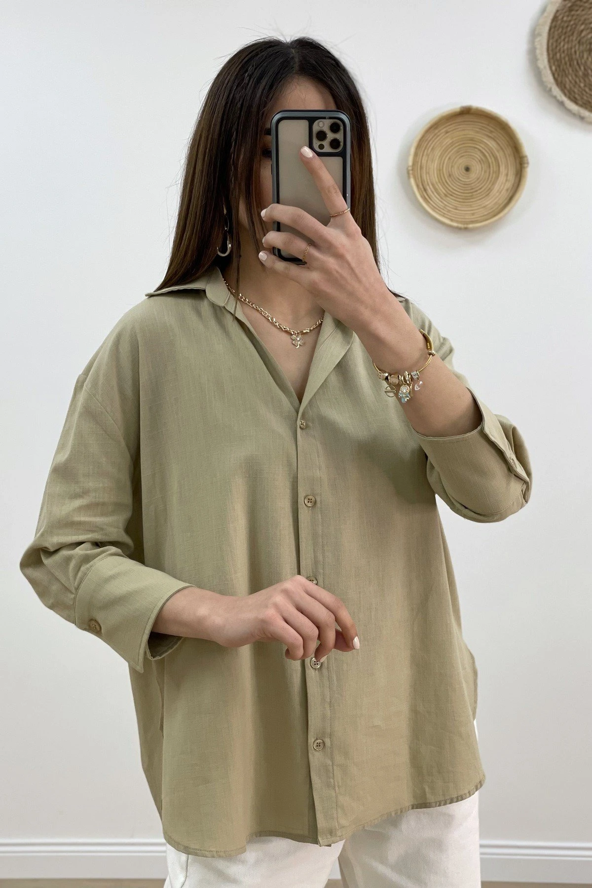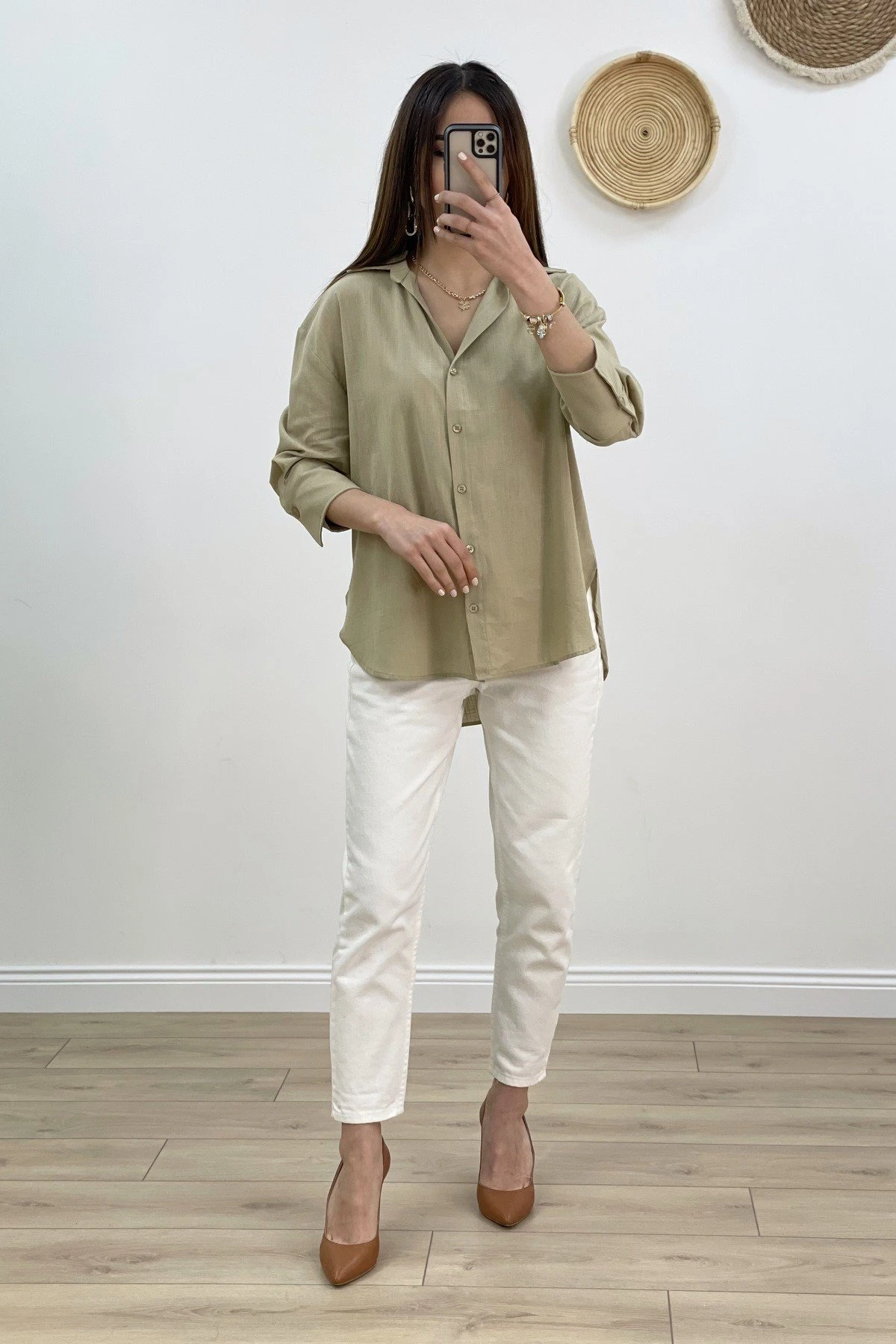 TRUVAKAR KOL KETEN ETEĞİ YIRTMAÇ GÖMLEK – KOYU BEJ