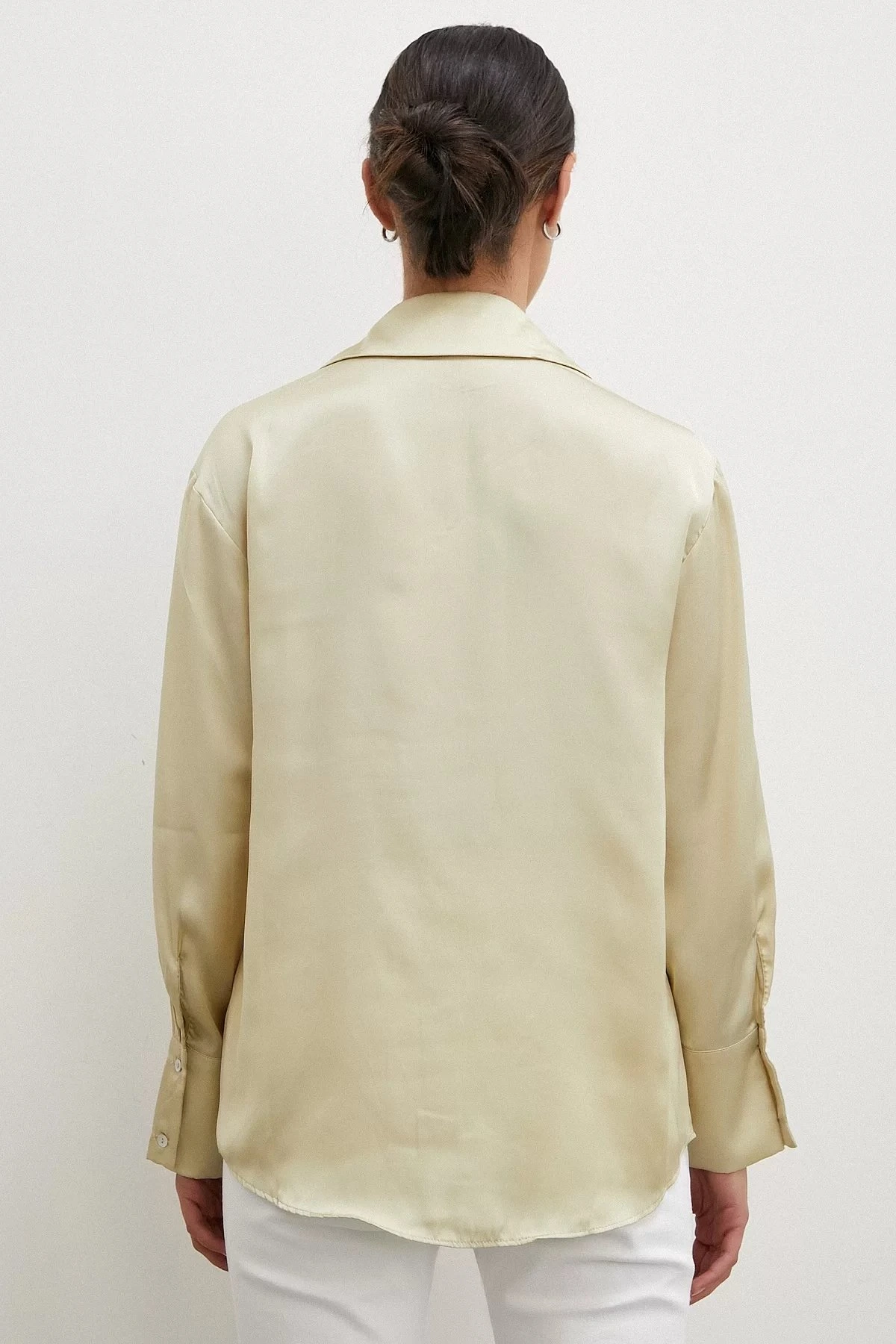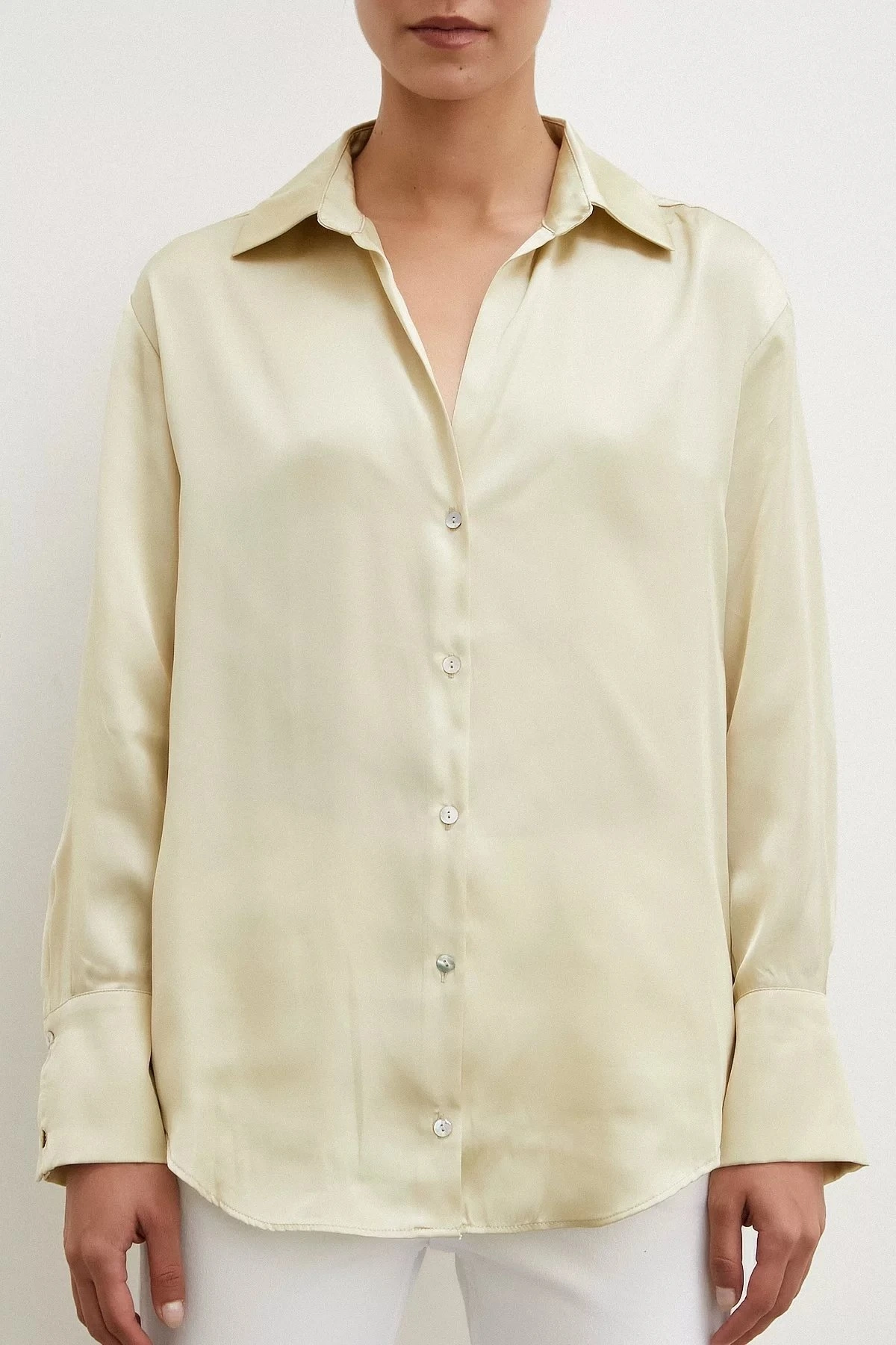 V YAKA BASİC SATEN GÖMLEK – AÇIK SARI