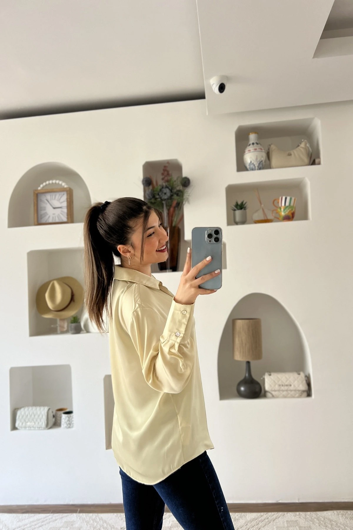 Modelin Üzerindeki Ürün bedeni instagramda story (hikayeler) de belirtilmektedir.