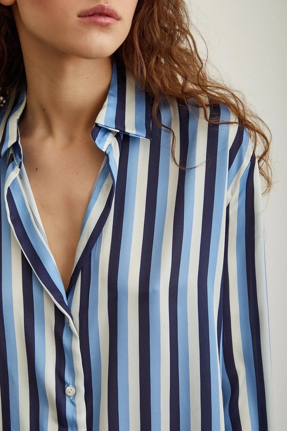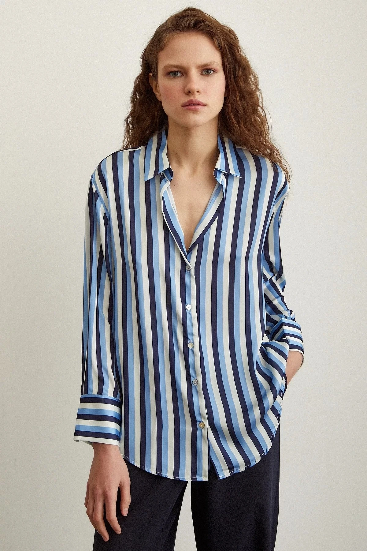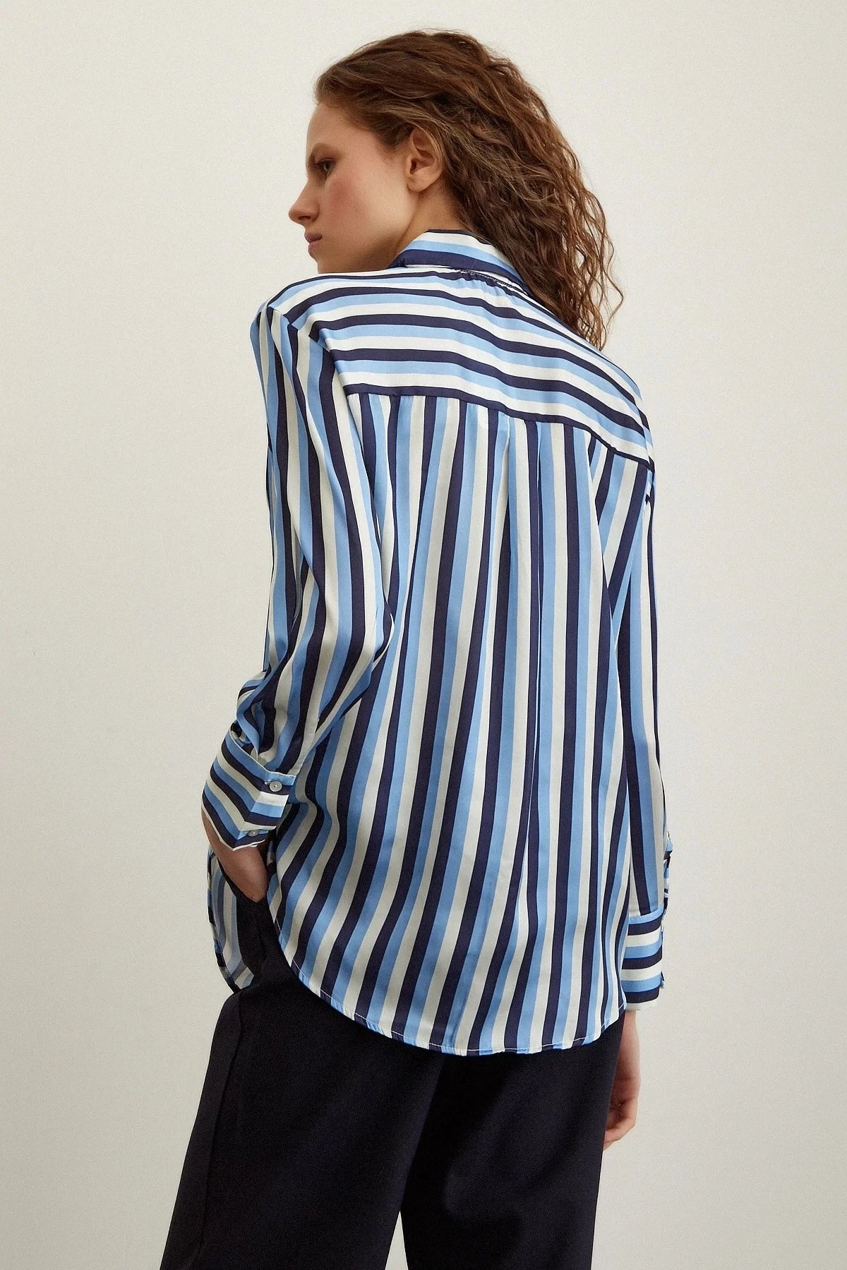V YAKA ÇİZGİLİ SATEN GÖMLEK – LACİVERT BEYAZ