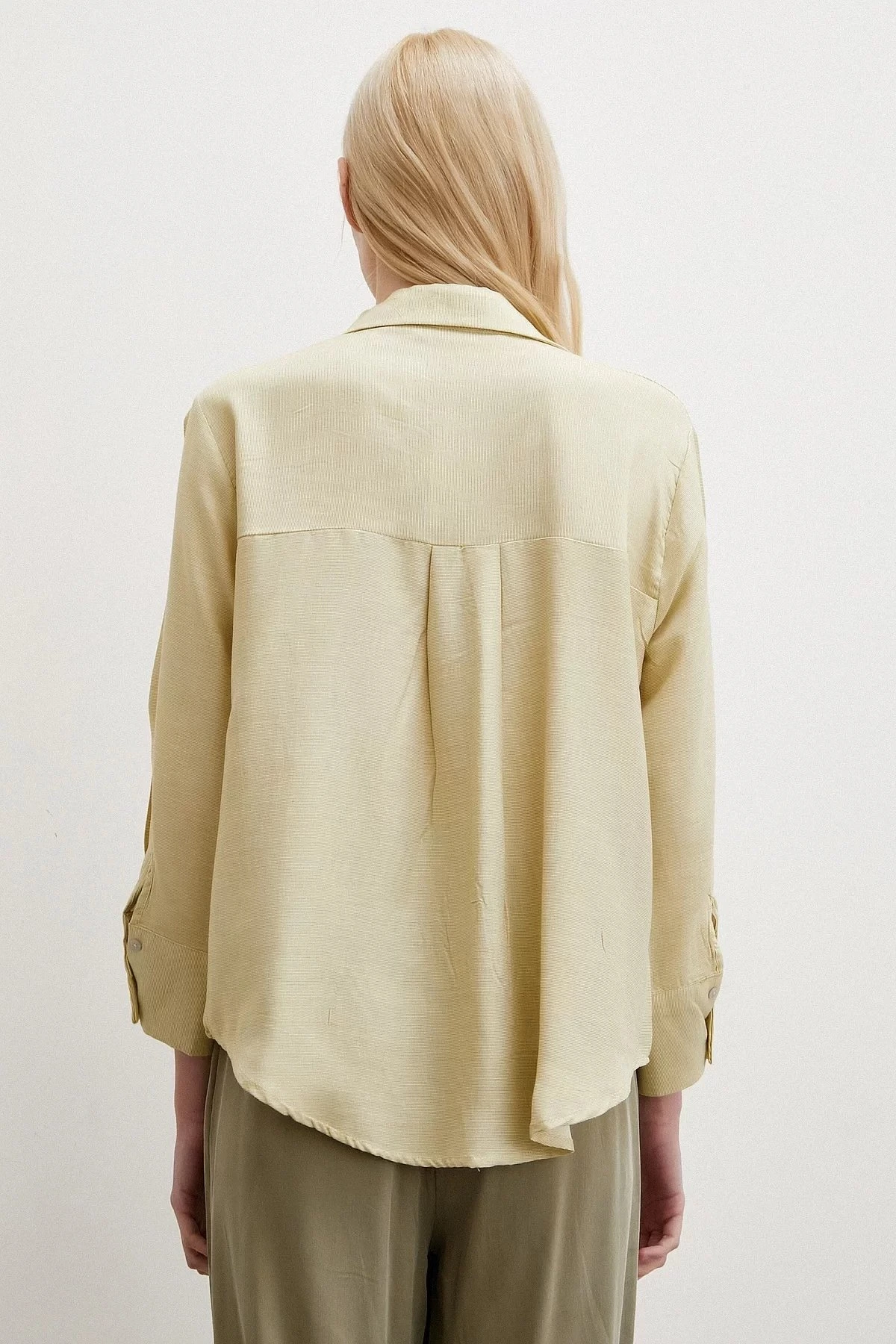 V YAKA DOKULU PAMUK GÖMLEK – SARI