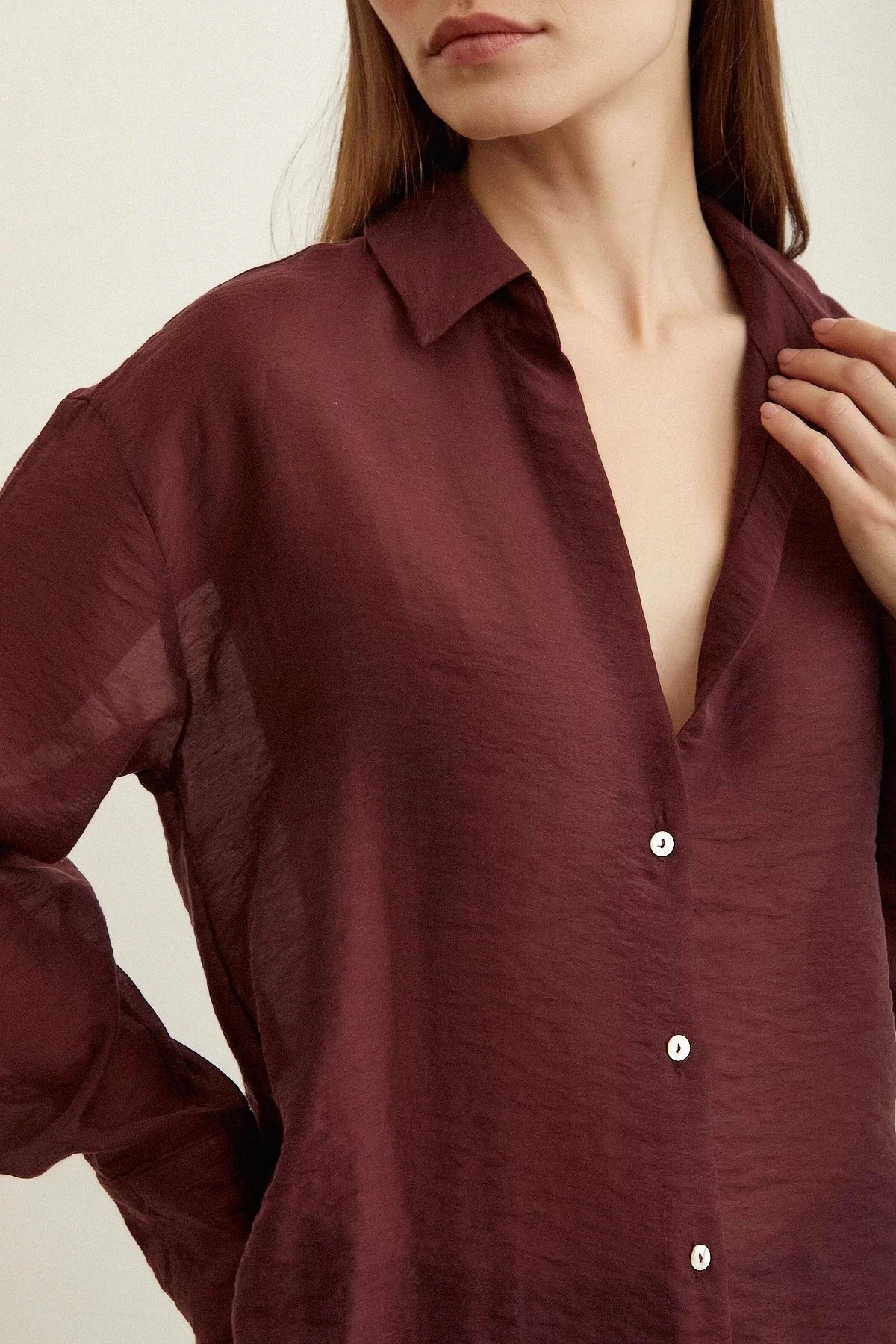 V YAKA İNCE MODAL GÖMLEK – BORDO