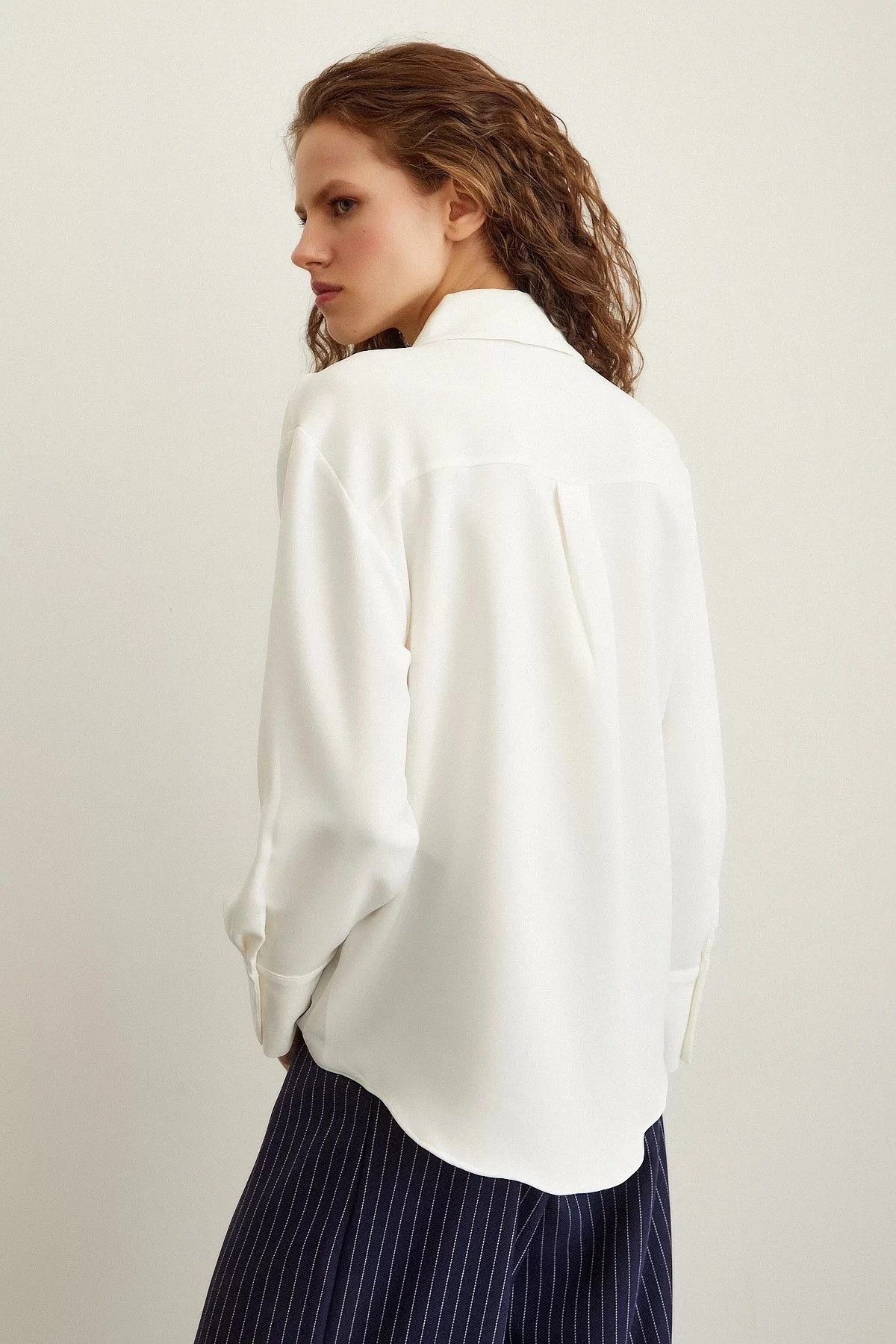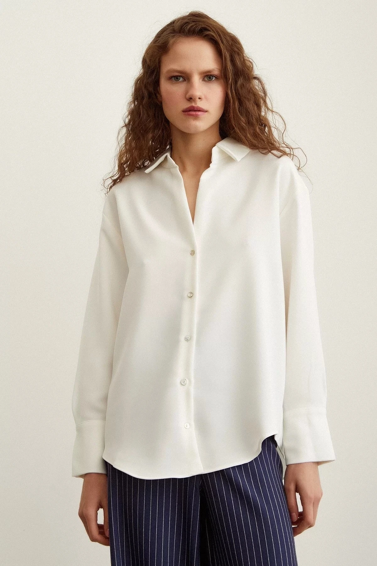 V YAKA KLASİK GÖMLEK – EKRU