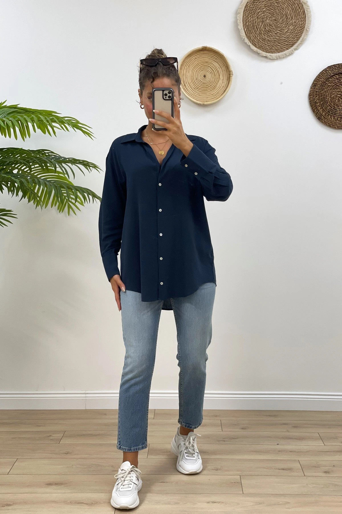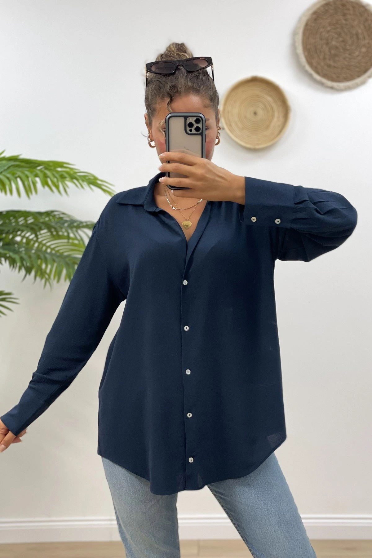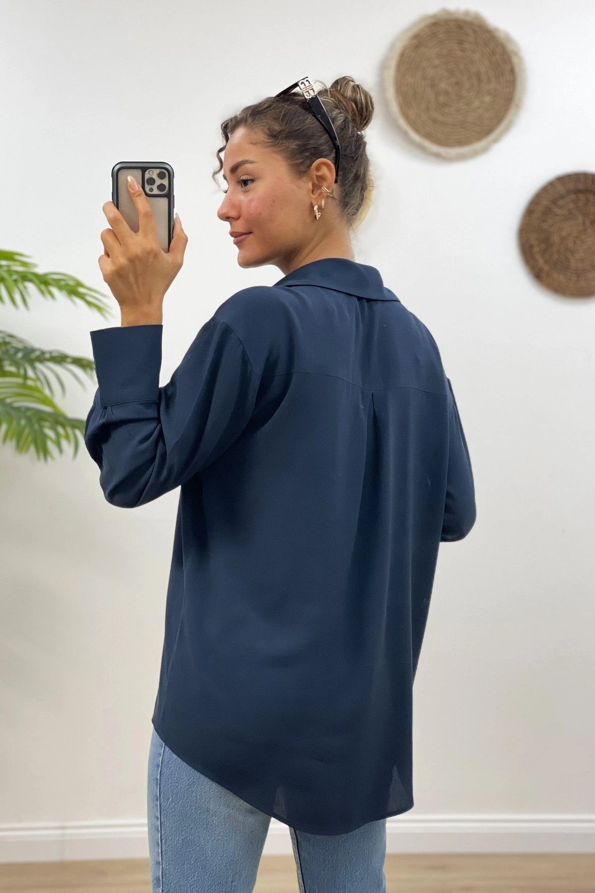 V YAKA VİSKON GÖMLEK – LACİVERT